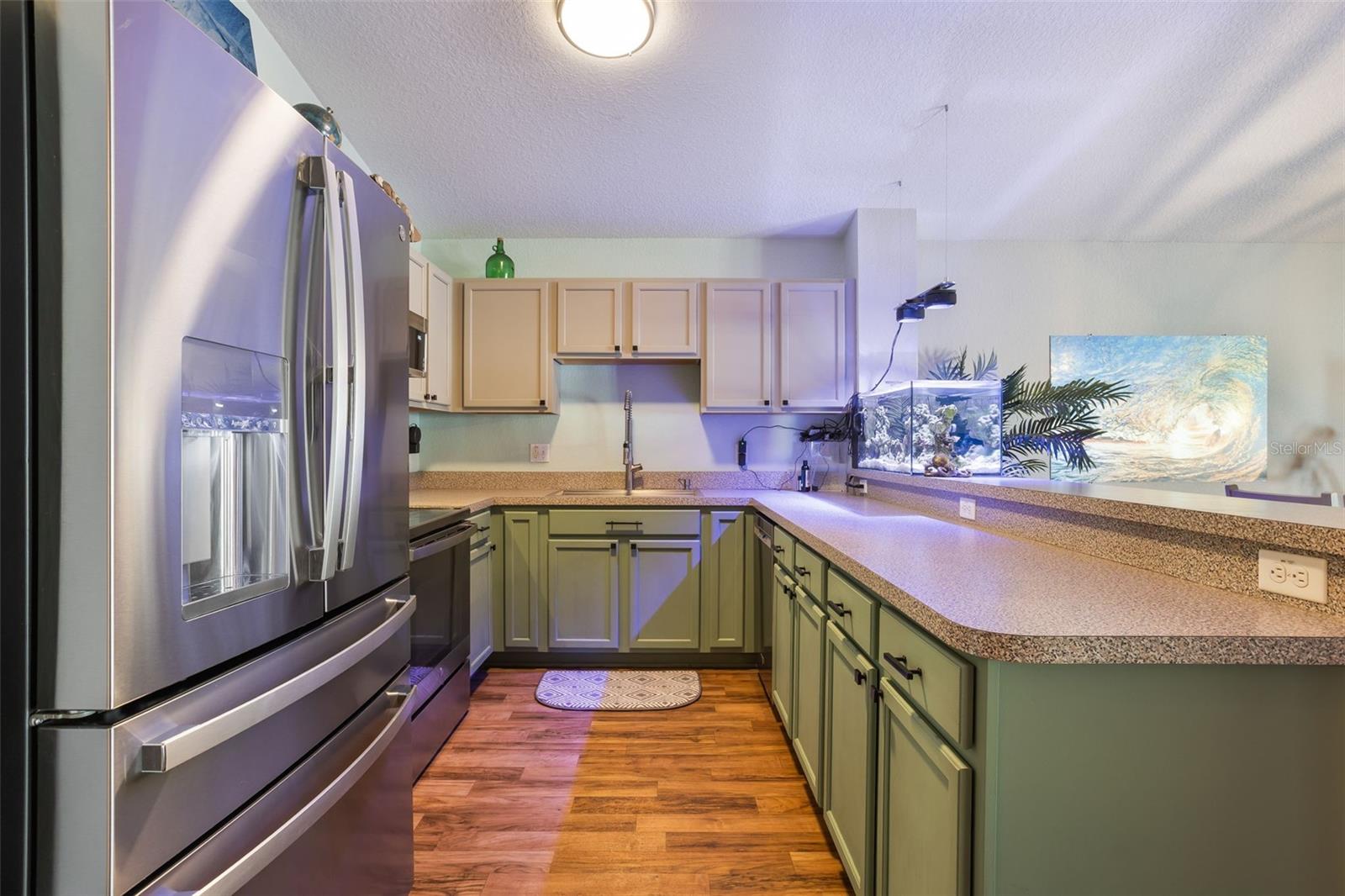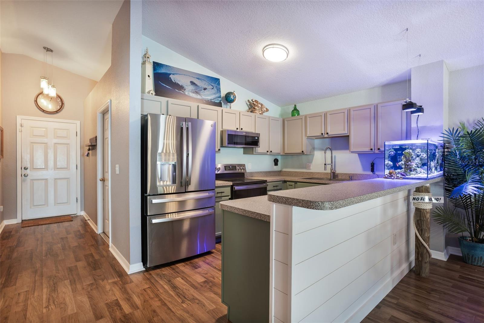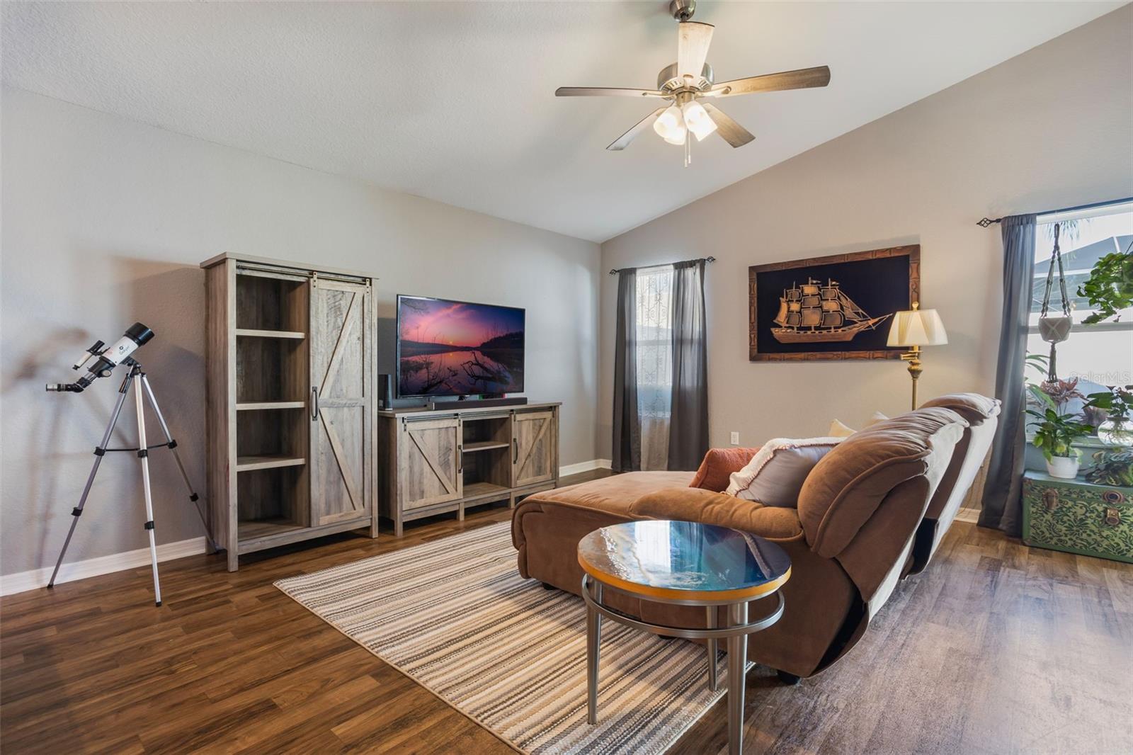 Bem-vindo a esta casa encantadora e lindamente mantida de 2 quartos e 2 banheiros, localizada na comunidade de carrinho de golfe para todas as idades da vila de Parkwood-apenas minutos de todas as compras, restaurantes e entretenimento que as aldeias têm a oferecer. Entre em uma planta baixa, bem projetada, com tetos abobadados, pisos de vinil por toda parte e uma cozinha brilhante com utensílios de aço inoxidável que flui perfeitamente para as áreas de jantar e de estar. Duas portas de vidro deslizantes - uma da sala de estar e uma da suíte primária - levam a um oásis de quintal totalmente cercado com paisagismo tropical, uma almofada de grelhar concreto e cercas de vinil branco para maior privacidade. As atualizações recentes incluem um sistema de filtragem de água em toda a casa, novas calhas com dreno francês, tinta externa fresca e um banheiro de hóspedes remodelado. Moradores de Parkwood desfrutam de comodidades no estilo resort, incluindo um clube, fitness center e brilho e spa. Esta casa é a mistura perfeita de conforto, conveniência e estilo de vida da Flórida - veja hoje!