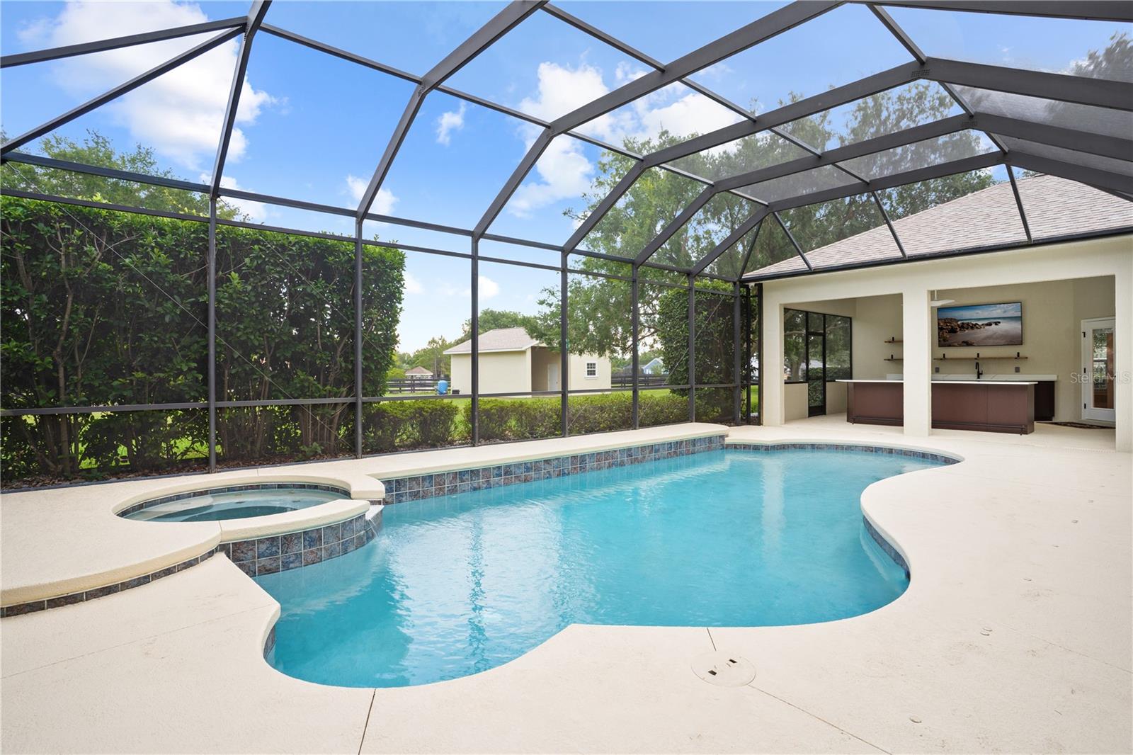 PREÇO ABAIXO DO VALOR AVALIADO! Situada em 2 hectares imaculados totalmente cercados e fechados, esta casa remodelada de 5 quartos e 3 banheiros já está disponível! Ao caminhar em direção à porta dupla de entrada, você percebe imediatamente o meticuloso paisagismo. A partir do momento em que você entrar por essas portas, você se apaixonará pela planta aberta e iluminada e pelo lindo novo piso laminado. À sua esquerda você tem seu 5º quarto/escritório/arrumos e à direita sua área de jantar formal. A ampla sala de estar tem vista para a deslumbrante área da piscina. Ao entrar na cozinha, esteja preparado para dizer UAU! Todos os novos armários com impressionantes novas bancadas de quartzo, eletrodomésticos de última geração e área de café da manhã são atraentes. Enquanto você gosta de cozinhar em sua nova cozinha, você também pode desfrutar de toda a sua companhia na ampla sala de estar adjacente à cozinha, que tem portas francesas que dão para a área da piscina. A suíte principal muito grande tem espaço para área de estar, armários duplos, pias duplas, banheiro de jardim e área de chuveiro separada. Planta de quartos divididos com todos os quartos grandes de 2 a 4. O banheiro nº 2 possui uma combinação de banheira/chuveiro e pias duplas. Banheiro nº 3 com chuveiro grande, também funciona muito bem como banheira de piscina. Grande despensa interna com pia também que leva a uma garagem ampla para 2 carros com piso em epóxi. ACs novos também! Você adora entreter? Esta casa foi feita para isso! Você vai adorar aproveitar os dias quentes de verão em sua varanda totalmente protegida com bela piscina e spa, além de uma enorme área de cozinha de verão. Traga seu trailer/barco para estacionar na garagem individual. Outra vantagem maravilhosa desta casa é que esta subdivisão permite a criação de algum gado. Localizado a poucos minutos de todas as comodidades do The Villages, como restaurantes, lojas, escolas e muito mais! Casas neste bairro incrível são difíceis de encontrar... Não espere para ver esta basicamente nova!