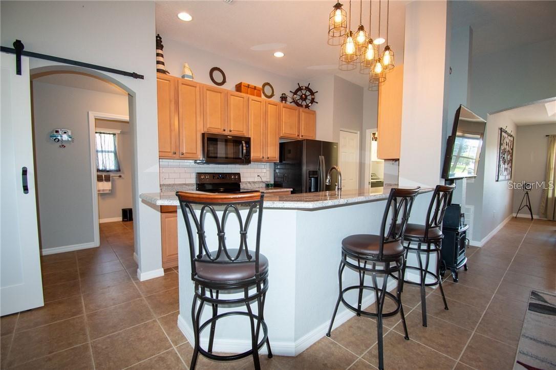 Casa unifamiliar mais próxima do clube, com piscina e academia. Experimente um estilo de vida descomplicado e de baixa manutenção na seção 55+ de Lakeside Landings, onde apenas 19 casas na seção Edgewater estão disponíveis para proprietários com 55 anos ou mais. A taxa HOA cobre cuidados com gramados e arbustos, controle de pragas externas e acesso às comodidades deslumbrantes oferecidas pela Lakeside Landings. Este lote de esquina oferece uma bela vista da cachoeira da piscina comunitária. A casa possui uma planta dividida com 3 quartos e 2 banheiros, todos aprimorados com inúmeras atualizações. Desfrute de ventiladores e iluminação personalizados, porta frontal de vidro ou tela e piso de cerâmica em toda a casa, além de piso de garagem revestido com epóxi. A calçada estendida de tijolos e o pátio frontal aumentam o charme. No interior, você encontrará lindos armários de madeira e bancadas de superfície sólida na cozinha. O quarto principal inclui dois armários, sendo um deles um walk-in, enquanto o banheiro principal possui um aquecedor elétrico de toalhas, e ambos os banheiros estão equipados com vasos sanitários de altura confortável e bidês embutidos. A espaçosa varanda com tela apresenta azulejos deslumbrantes que imitam a pedra natural. Não perca esta oportunidade de residir perto de The Villages sem o peso de CDD ou taxas de títulos, tudo dentro de uma comunidade maravilhosa.