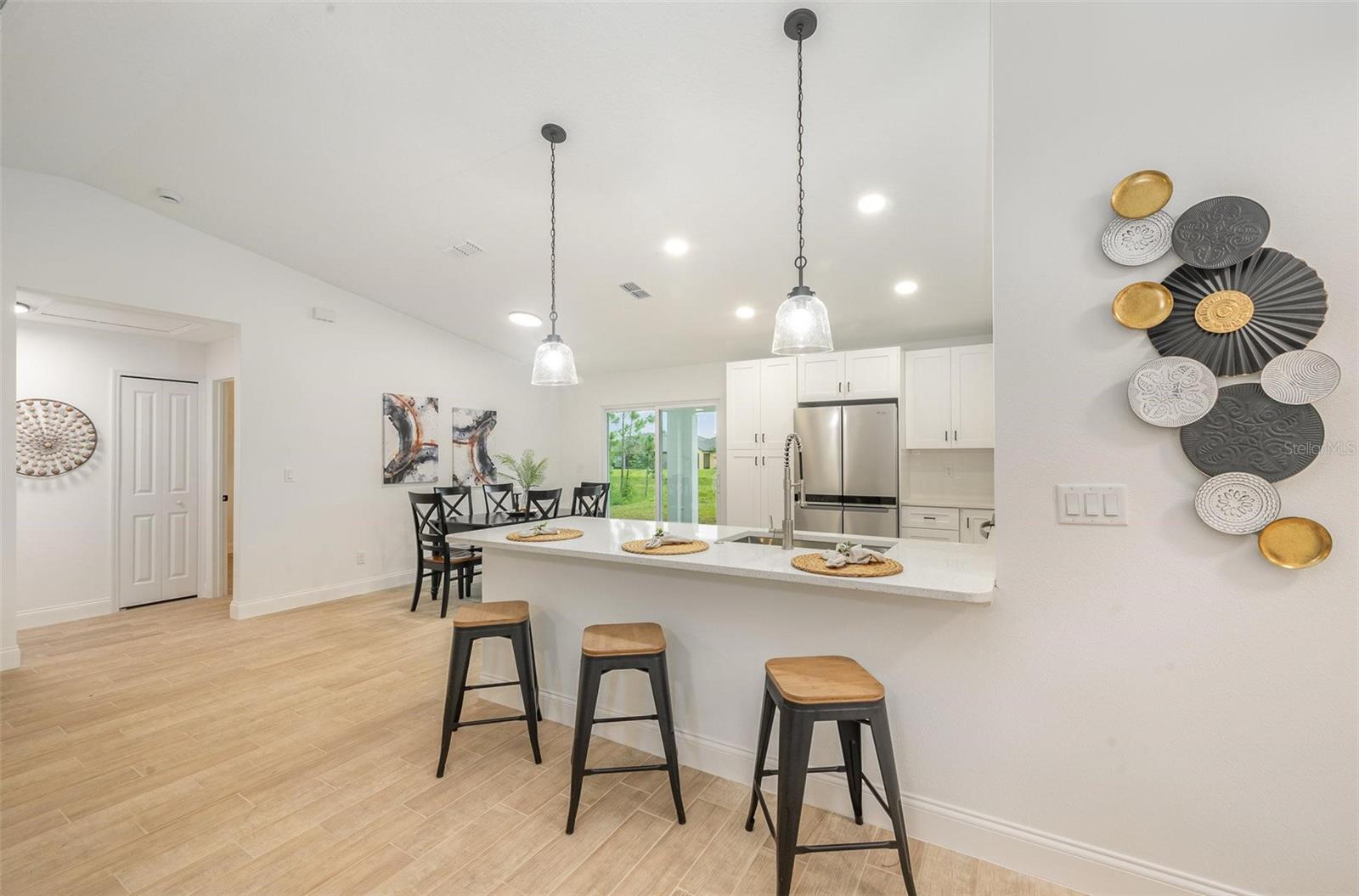 Esta bela casa possui bancadas de quartzo e armários com fechamento suave em toda a cozinha e banheiros. A planta baixa de conceito aberto conecta perfeitamente as áreas de estar, jantar e cozinha, perfeita para a vida moderna. A planta dividida garante privacidade, com a suíte principal separada dos 2 quartos. A casa é totalmente revestida de azulejos, tem banheiros luxuosos e está equipada com janelas e portas contra impacto de furacão para maior segurança. Saia para uma varanda coberta e aproveite a conveniência de uma garagem para 2 carros e um sistema de filtragem de água para toda a casa.