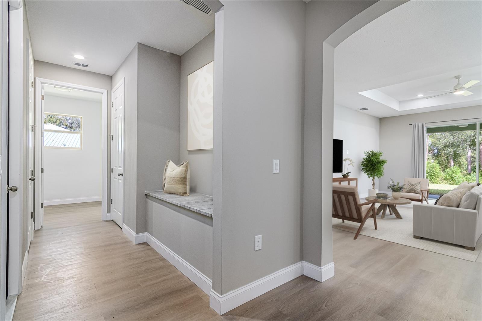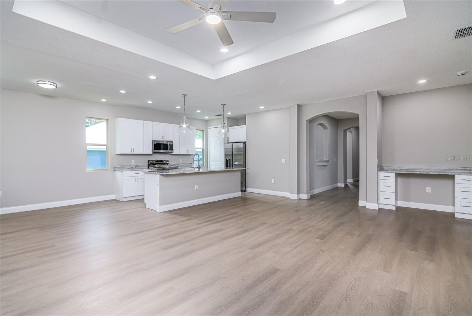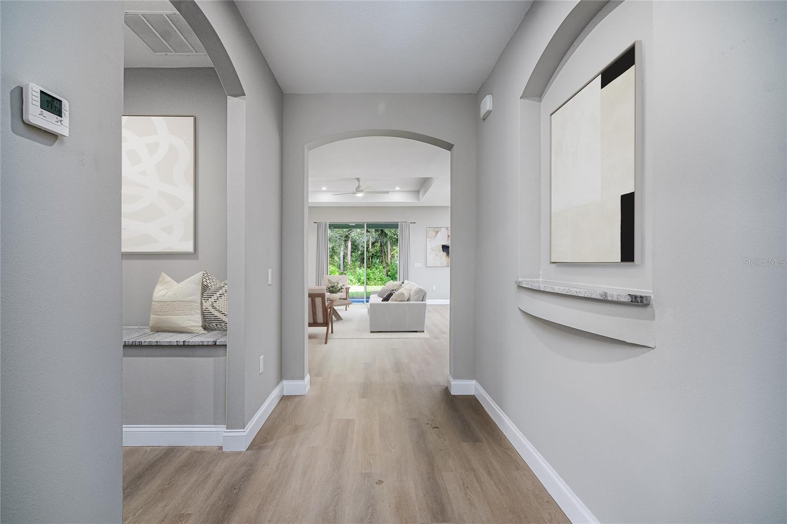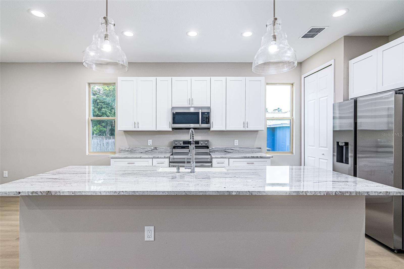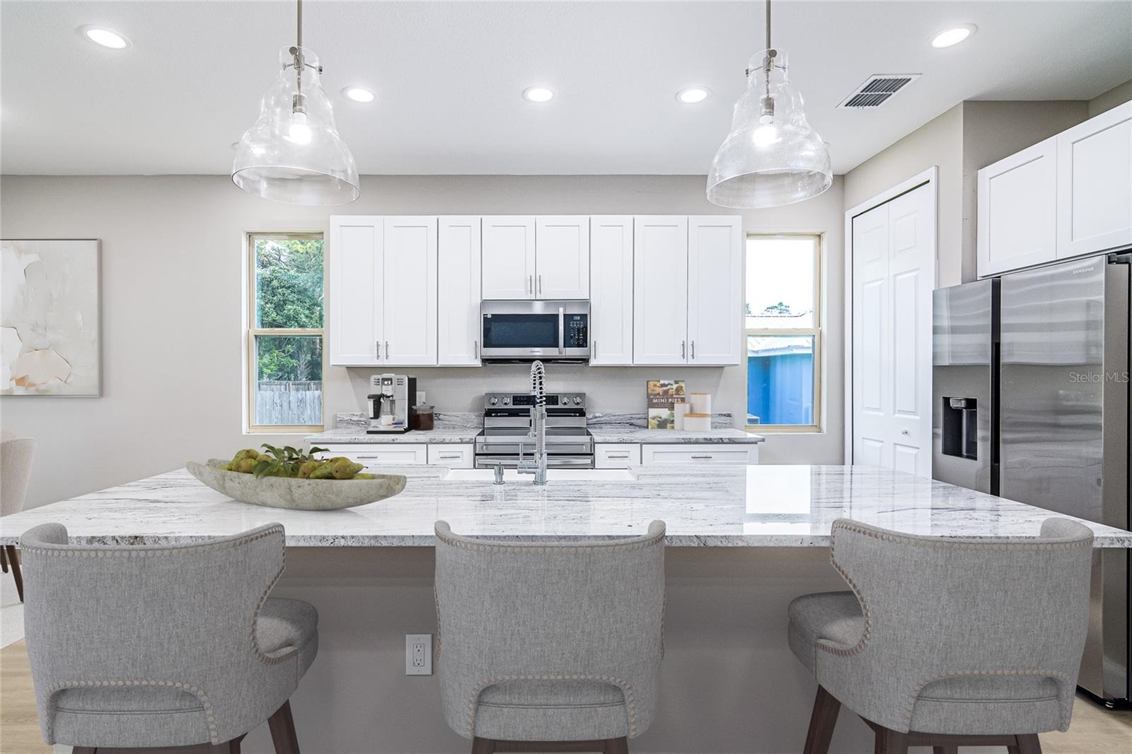 2025 embutido! Novo e pronto para se mudar, esta impressionante nova casa de construção na 563 Holmes Ave NW está situada em um grande lote de canto no coração de Palm Bay. Projetado para quem aprecia estilo, espaço e conveniência moderna, esta casa oferece 3 quartos espaçosos e 2,5 banheiros lindamente projetados, misturando elegância e funcionalidade em todos os detalhes. Entre e experimente a diferença. Tetos altos e portas de 8 pés criam uma atmosfera convidativa e aberta, enchendo a casa com luz natural e uma sensação de grandeza. A planta cuidadosamente projetada conecta perfeitamente as áreas de estar e jantar, tornando -a perfeita para entretenimento ou relaxar em conforto. No coração da casa, a cozinha do chef é uma verdadeira peça. Equipado com bancadas em granito, uma ilha de cascata impressionante, utensílios de aço inoxidável premium e um elegante backsplash de azulejos, esse espaço é construído para criatividade culinária e conveniência cotidiana. Em toda a casa, o piso de tábua de vinil de luxo ao longo da vida aprimora todos os espaços com elegância e durabilidade modernas, fluindo sem esforço para cada sala para criar um design coesivo e polido. A suíte primária é um retiro próprio, com um grande armário e um banheiro inspirado em spa com um chuveiro de ladrilhos de chão ao teto, gabinete de vidro e vaidades duplas, criando um espaço perfeito para relaxar e recarregar. Até os banheiros de hóspedes refletem o artesanato excepcional desta casa, com paredes totalmente ladrilhos e acabamentos modernos. Saia e abraça a vida da Flórida. O Lanai coberto é o lugar perfeito para saborear seu café da manhã, hospedar churrascos de fim de semana ou relaxar sob as estrelas, misturando perfeitamente espaços internos e externos para prazer durante todo o ano. Esta casa é construída com qualidade excepcional e atenção aos detalhes, oferecendo atualizações modernas, estilo atemporal e uma localização privilegiada. Situado a poucos minutos das compras, jantares, parques e escolas de melhor classificação, essa propriedade coloca tudo de fácil alcance. A casa dos seus sonhos está esperando. Programe sua turnê privada hoje.