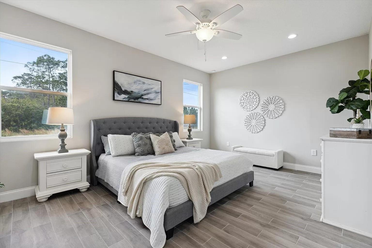Em construção. Nova construção. As fotos são de modelo semelhante e são usadas apenas para fins de exibição. Esta luxuosa propriedade de 3 quartos e 2 banheiros é requintadamente construída com todas as atualizações aninhadas no coração de Palm Bay. Lá dentro, você encontrará uma planta piso bem aberta, perfeita para reuniões de família e entretenimento. A espaçosa cozinha do chef está elegantemente equipada com uma ilha preparatória, armários de madeira maciça, utensílios de aço inoxidável e amplo armazenamento. O espaço contemporâneo está repleto de luz natural e um layout que é convidativo e relaxante. Luxuriado na vasta suíte primária que oferece uma coleção de conveniências modernas. Esta bela casa está cheia de atualizações incluídas: armários de madeira macia e macia na cozinha e nos banheiros, piso de tábua de vinil de luxo (sem carpete), pisos de azulejos e azulejos do chão ao teto nos chuveiros, nichos de banheiro, bancadas de granito na cozinha e banheiros, brear 9'4 '' ', 8 poços, peixes de luxuosos, lã de luxuosos e banheiros de 9'4' ', 8 poços, peças de luxo.