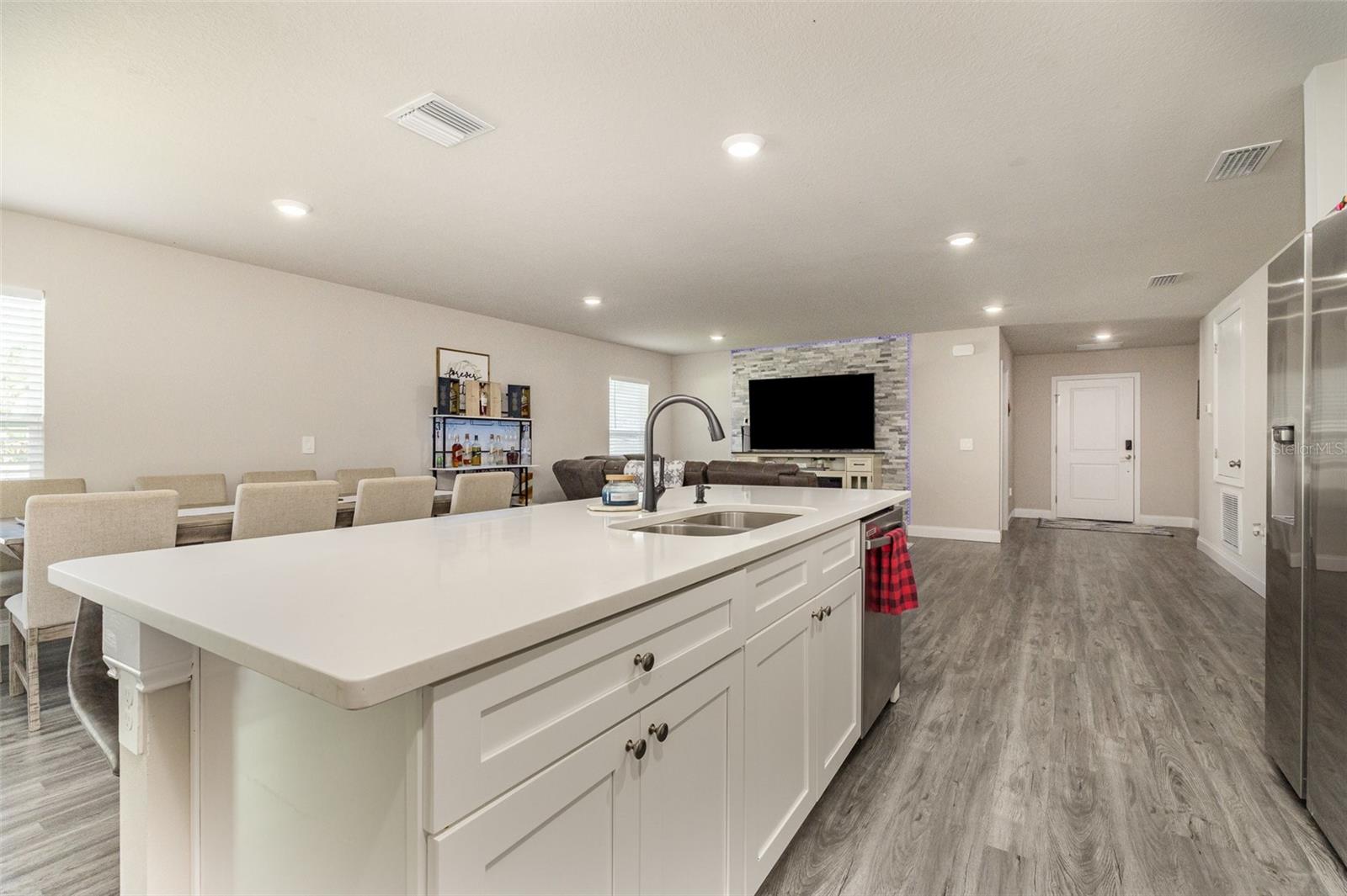 Bem -vindo a esta bela nova construção de 2023! Pronto agora! Esta casa tem água da cidade e é conveniente para compras, escolas, restaurantes e parques. Esta casa tem um piso aberto com vista para a frente da casa, através da grande sala, até a sala de jantar, cozinha e para a varanda coberta. A espaçosa sala de estar apresenta uma bela parede de destaque, traz mais sofisticação para a casa. A cozinha possui uma ilha central com lindos balcões de quartzo e armários suaves para fornecer uma área de alimentação casual. Você vai adorar o piso de tábua de vinil de luxo em toda a casa com acessórios de encanamento Moen e iluminação LED para oferecer o luxo que você está procurando em uma nova casa. A suíte do proprietário é espaçosa, com dois armários grandes, um chuveiro grande e uma vaidade dupla com balcões de quartzo e armários de fechamento suaves. Pacote completo de banheiros atualizados incluídos. Eu mencionei persianas de furacões e quintal com completo cercado? Muitos recursos para mencionar.