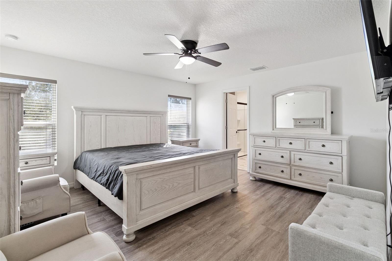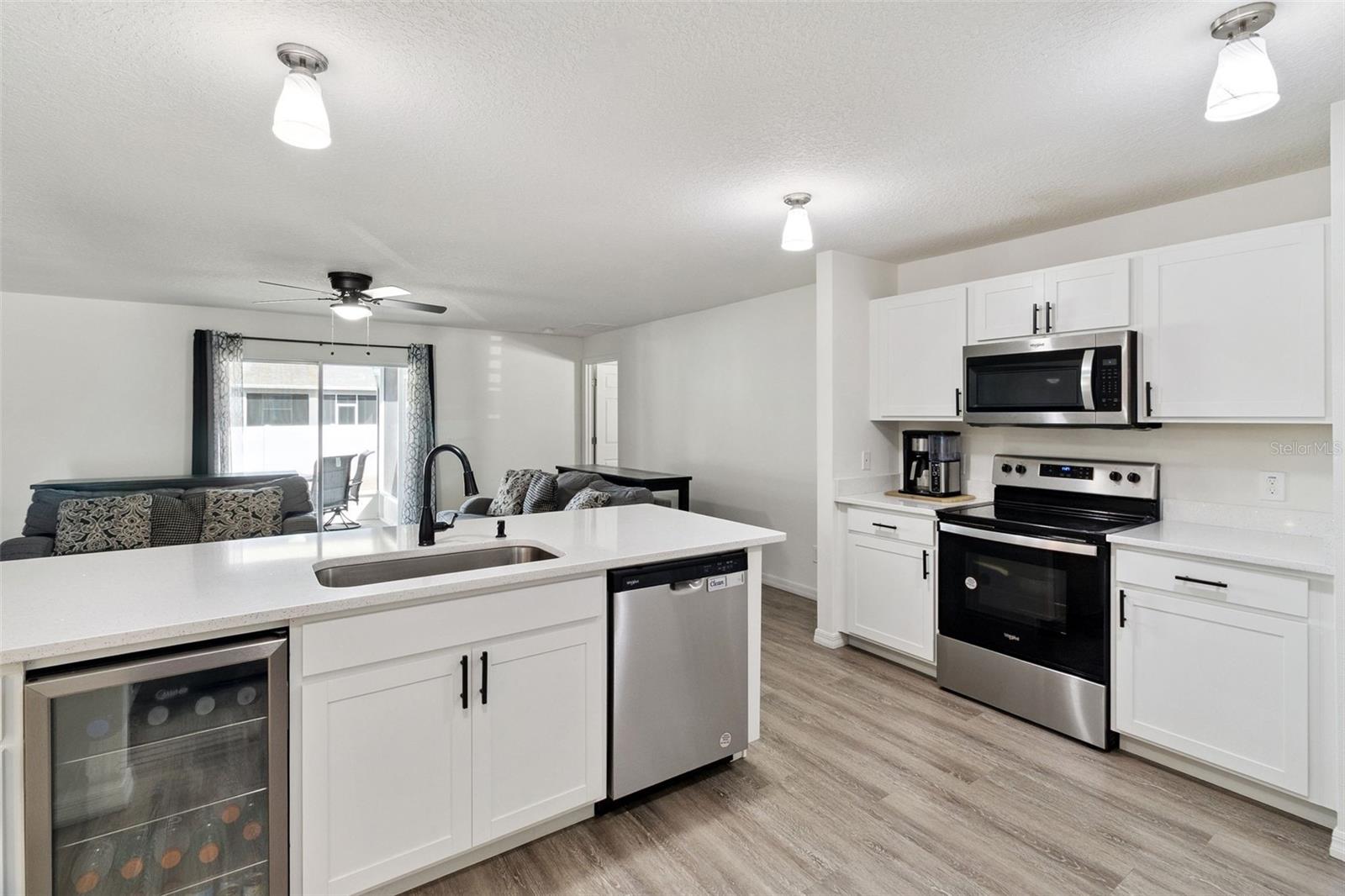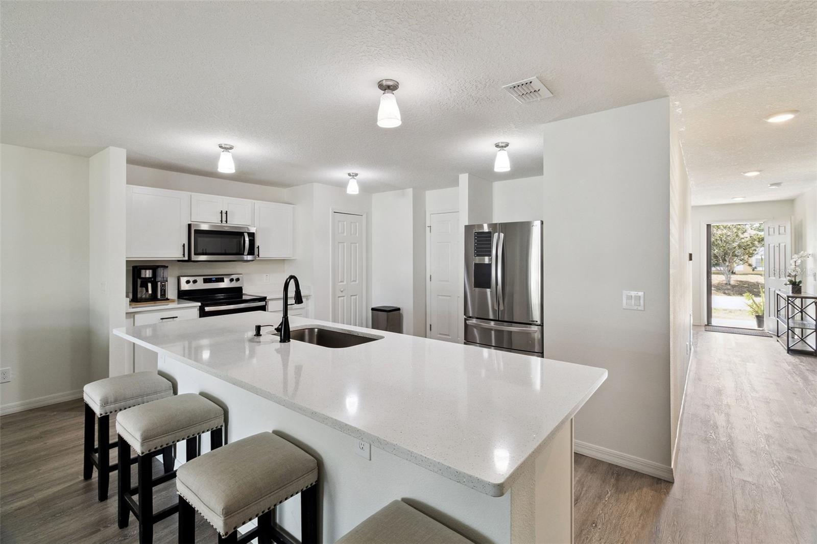 Não espere para construir, vá direto para esta deslumbrante e totalmente atualizada casa de 4 quartos, 2 banheiros e uma espaçosa garagem para 3 carros! Projetada pensando na vida moderna, a cozinha de conceito aberto e a sala familiar são perfeitas para noites divertidas ou aconchegantes em família. A cozinha possui bancadas de quartzo, armários brancos, eletrodomésticos de aço inoxidável, uma bancada lisa e micro-ondas, tornando-a elegante e funcional. A suíte master oferece um retiro privado, cuidadosamente separado dos outros quartos para proporcionar paz e tranquilidade. Saia para o seu quintal totalmente cercado com uma cerca de privacidade de vinil branco de 6 pés e portões duplos. Relaxe sob a varanda coberta e protegida ou aproveite ao máximo a vida na Flórida com a tomada pronta para gerador e o circuito de garagem de 50 A. Atualizações adicionais incluem calhas, câmeras circulares, termostato Honeywell sem fio, controle remoto de porta de garagem LiftMaster, entrada sem chave Kwikset, detectores de fumaça e monóxido de carbono Kidde e interiores recém-pintados. Cada detalhe foi cuidadosamente considerado, combinando conveniência moderna com design inteligente. Pronta para morar e perfeita para famílias ou investidores, esta casa pronta para uso oferece atualizações premium e conforto sem esforço. Não perca a oportunidade, agende hoje mesmo a sua visita e experimente tudo o que esta casa tem para oferecer!