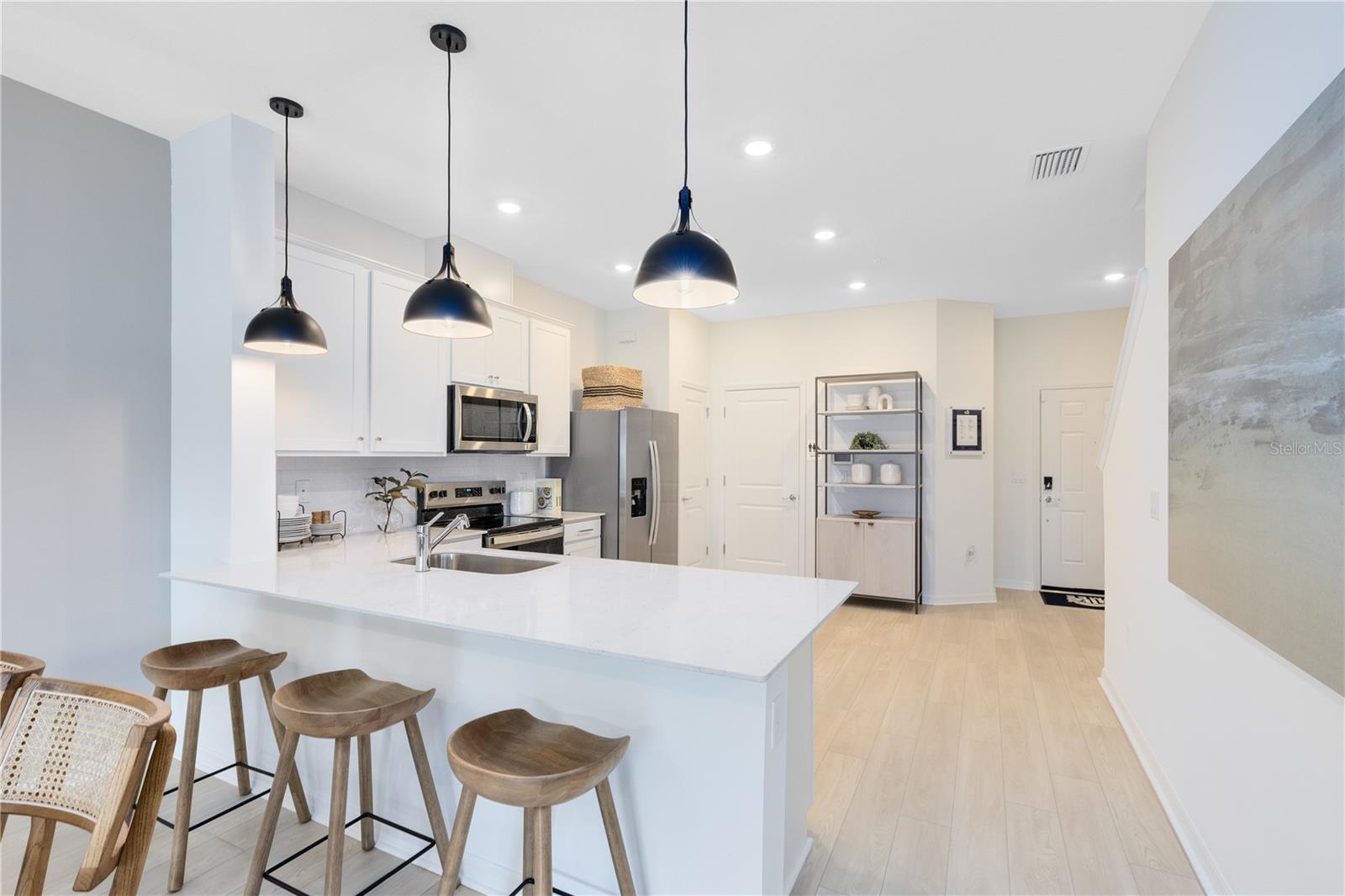 Bem-vindo à Praça do Porto! Este charmoso bairro apresenta espaçosas residências novas em construção situadas no coração de Palm Bay, em Melbourne, Flórida. Com acabamentos de luxo, tecnologia de casa inteligente integrada e comodidades no local. Além disso, eles estão convenientemente localizados com fácil acesso da I-95 e a poucos minutos das belas praias do Atlântico. Na Pulte, construímos as nossas casas a pensar em si. Cada centímetro foi cuidadosamente projetado para melhor atender às suas necessidades, tornando sua vida melhor, mais feliz e mais fácil. Esta linda unidade interna Springdale de dois andares, pronta para morar, apresenta nosso exterior Craftsman, pacote de design Premier Fresh, 3 quartos, 2 banheiros completos, toalete, garagem para um carro, varanda coberta, lavadora, secadora, geladeira e persianas. O espaçoso primeiro andar é ideal para entretenimento, com lavabo, sala de reuniões em conceito aberto, cafeteria e cozinha e uma varanda coberta. A cozinha está equipada com despensa, armários brancos brilhantes, bancadas de quartzo Lagoon, backsplash de cerâmica Eden Bianco e lindo piso de cerâmica Positano Blanco. Depois de um longo dia, suba as escadas para o seu oásis privado. A Suíte do Proprietário possui um espaçoso closet e banheiro privativo com pia dupla com pia branca com tampo de quartzo, armário para roupa de cama, vaso sanitário privativo e box amplo. Dois quartos adicionais, o banheiro secundário e a lavanderia também ficam no segundo andar, oferecendo privacidade e espaço para todos. As seleções de design com curadoria profissional para esta popular residência urbana de Springdale incluem uma lavadora, secadora, geladeira, persianas, armários Elkins atualizados com bancadas de quartzo, detalhes em azulejos de designer na cozinha e chuveiros, piso de porcelanato Positano Blanco nas áreas de estar, banheiros e lavanderia, carpete Ornamental Gate macio e resistente a manchas nos quartos e áreas de estar do segundo andar e muito mais!
