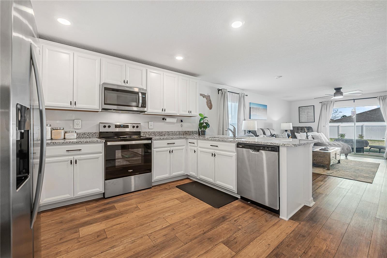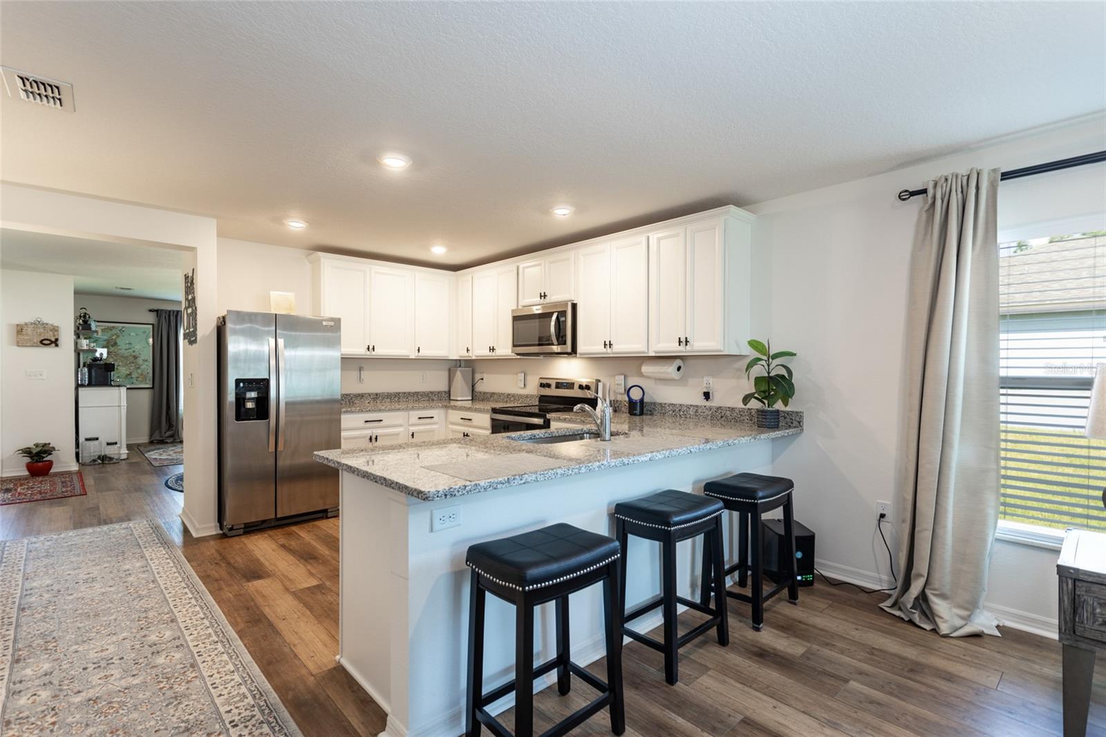 Construída em 2023, esta imaculada casa de 4 quartos e 2 banheiros parece nova - habitada por apenas alguns meses. O exterior imaculado possui grama Zoysia atualizada, paisagismo exuberante, um quintal cercado com dois portões, um galpão espaçoso com loft e um mastro de bandeira para maior apelo do meio-fio. No interior, desfrute de luxuosos pisos de pranchas de vinil, uma cozinha aberta com bancadas de granito, eletrodomésticos de aço inoxidável e elegantes armários brancos. A luminosa sala familiar se abre para uma varanda com vista para um oásis privado no quintal. A suíte principal possui closet e banheiro privativo amplo com pia dupla, banheira de jardim e chuveiro separado. Três quartos adicionais oferecem flexibilidade para hóspedes ou home office. Os destaques adicionais incluem uma lavanderia acabada com ladrilhos de metrô, uma garagem meticulosamente atualizada com piso de ladrilho comercial, um gerador com tanque de propano de 100 libras, sistema de irrigação, alarme e câmera de segurança, entrada sem chave, cortinas blackout, iluminação e tomadas atualizadas e recursos de casa inteligente por toda parte. Estação de comutação de transferência de energia de emergência na garagem. Mobiliário disponível e negociável com venda.