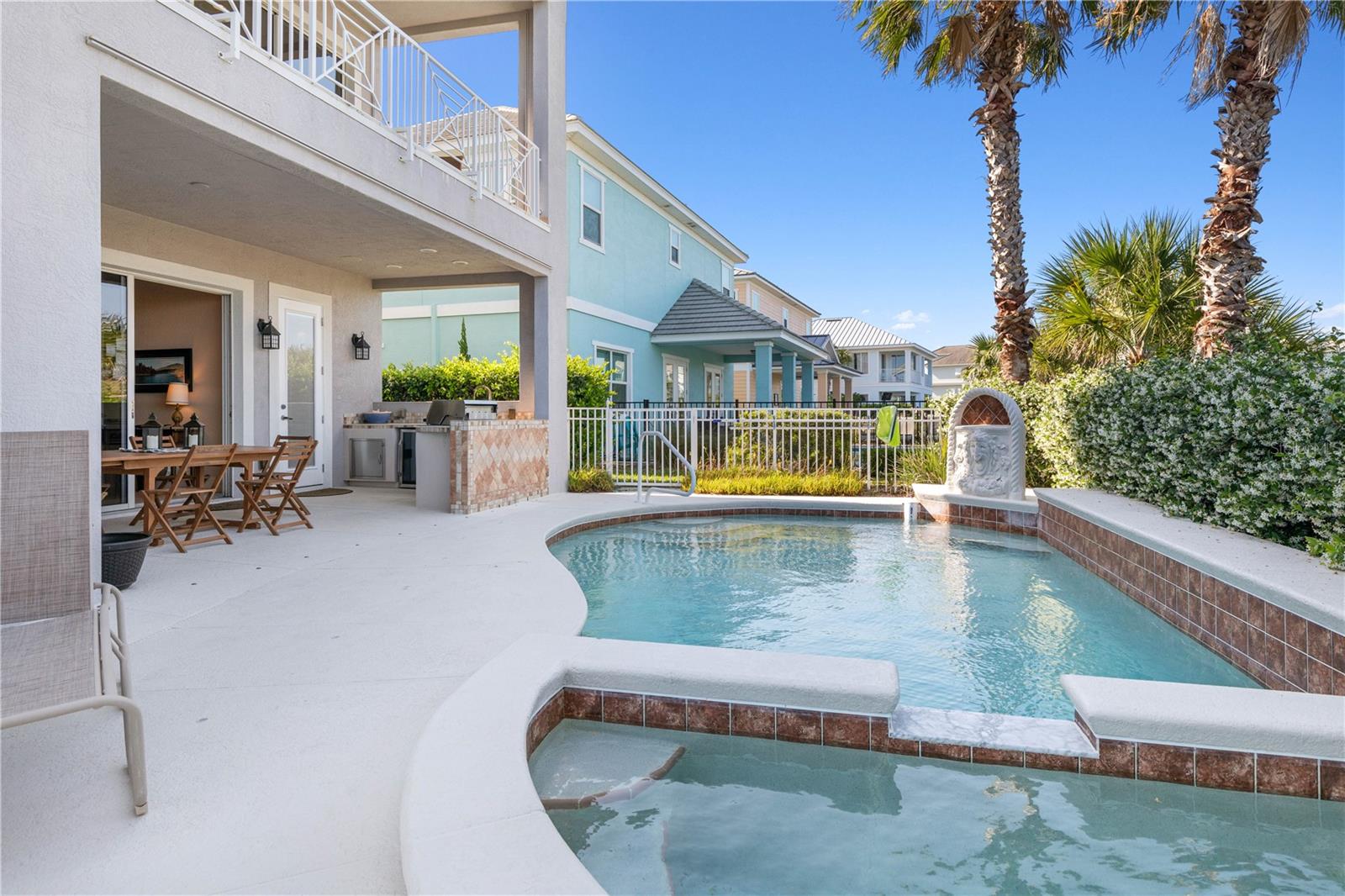 Incredible Totalmente mobiliado Cinnamon Beach Pool Home Configure para a vida ao ar livre no seu melhor! Este banheiro de 4 quartos e 4/2 mostra as melhores vistas do lago e fica a uma curta caminhada da praia. O 1º nível é ideal para entreter toda a família com um espaço de estar e portas de vidro deslizantes para o pátio, piscina e spa para relaxar. Você também pode grelhar suas refeições favoritas na cozinha ao ar livre. Leve o elevador para o 2º andar, que possui uma ampla vida de conceito aberto, jantar e cozinha com utensílios de aço inoxidável. Mas o verdadeiro show-stopper é uma parede de tirar o fôlego de portas de vidro deslizantes e janelas voltadas para o lago. Este é um local ideal para toda a família reunir e recarregar. A varanda do 3º andar é como nenhum outro na comunidade. Esse espaço expansivo tem espaço para todos, se você deseja relaxar ao sol ou ler um livro à sombra. Mantenha -se revigorado com o conveniente bar e chiller de vinho neste convés superior. Espaço para todos na família ou uma ótima propriedade de investimento. Esta casa já está em um programa de aluguel de curto prazo com reservas. Totalmente mobiliado Turnkey ou Rental Ready! AC tem 1 ano de idade. A Cinnamon Beach HOA inclui gramado, clube, piscinas, banheiras de hidromassagem, academia, acesso à praia e muito mais.