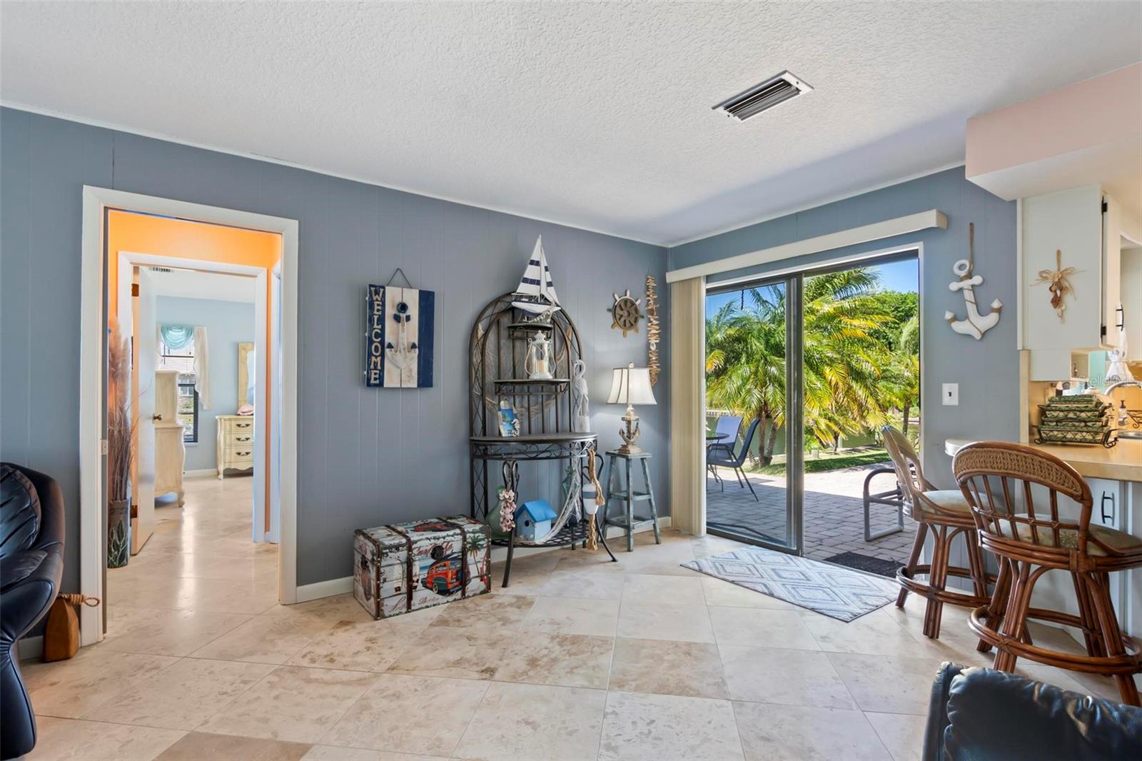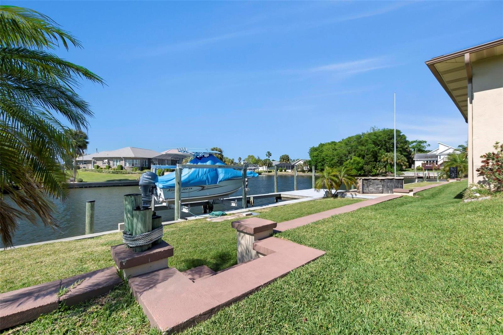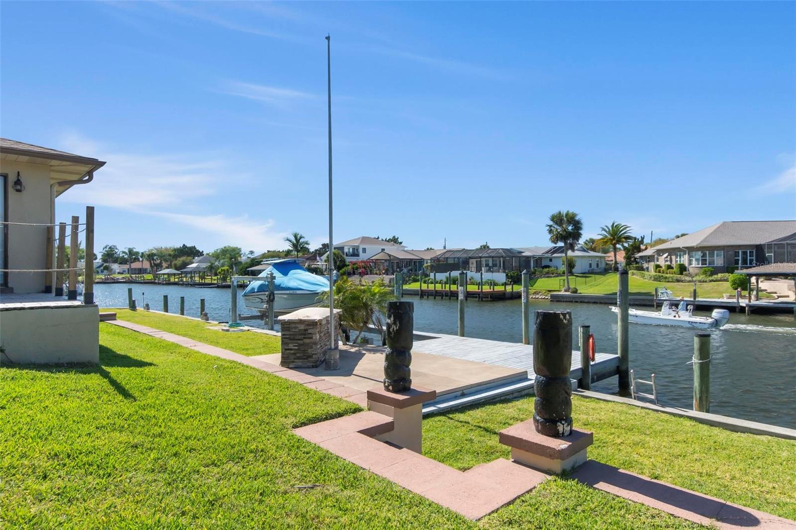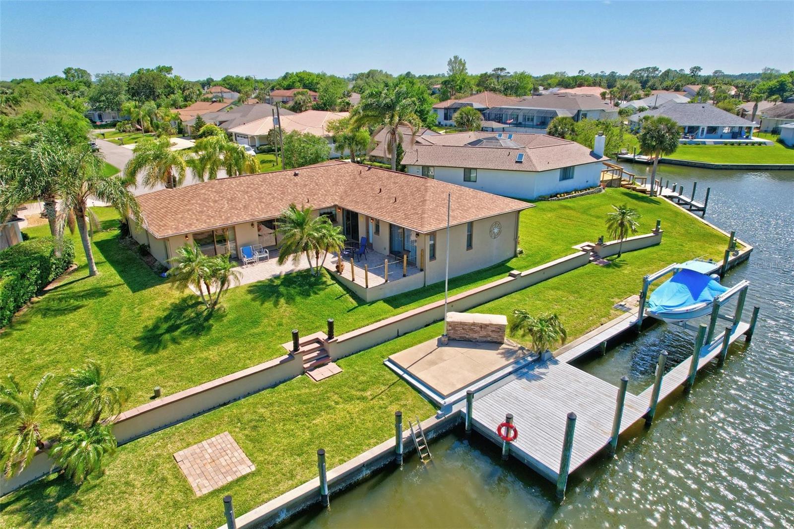 Um achado raro! Todos os velejadores, aqui está o lugar para você, um canal extra largo, localizado em um verdadeiro lote de dicas com canais que se cruzam no país veleiro. O lar está localizado em um beco sem saída, o lote possui 180 pés de antepara! Lift de barco para acomodar um navio de 33 pés, energia da costa e água na doca. Área de barra personalizada no pátio mais baixo conectado ao cais. Acesso fácil e rápido à hidrovia intracoastal. O interior da casa é atualizado com pisos de travertino em áreas de estar e quartos, cozinha, hall de entrada e lavanderia têm um novo laminado. Tetos de pipoca removidos, novo aquecedor de água quente 2025, AC 2022, telhado 2021, recentemente repintado exterior e interior, bela calçada de pavimentadora. Atualmente, o terceiro quarto é usado para a área de armazenamento do proprietário, a propriedade foi alugada a curto prazo, buscando o número da renda. O banho de hóspedes se abre para o pátio e pode ser um futuro banho de bilhar, muito espaço para uma piscina a ser adicionada. Existem muito poucos lotes com essa quantidade de fachada e vistas no país de veleiro. Esta área ainda mantém remanescentes da antiga Flórida, redes de carvalho próximo, praias tranquilas. Muitas trilhas, parques e áreas locais para lançamento de caiaque. Ligue hoje para sua consulta, os móveis negociáveis.