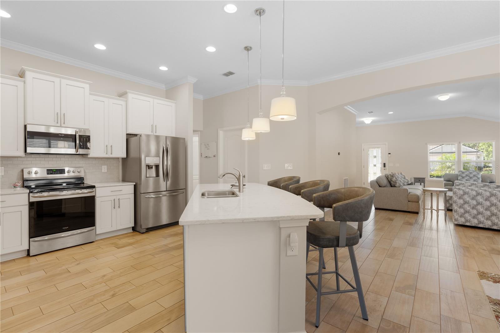 Delicie -se com a essência do luxo moderno que vive dentro dos estimados limites da comunidade fechada exclusiva do Country Club Harbor, com 54 casas premium. Após a chegada, seja recebido por uma encantadora garagem de pedra de pavimentadora que leva a uma entrada convidativa que o recebe com a planta de piso conceitual aberta. Admire o pôr do sol da Lanai exibida, oferecendo um cenário perfeito para relaxar. Entre e você encontrará uma mistura perfeita de beleza e funcionalidade. Este plano de piso dividido em três quartos oferece pisos de porcelana, quartos com carpete, molduras para coroas e tetos altos. A cozinha é como o paraíso de um chef, com armários de 42 ", bancadas de quartzo suaves, uma geladeira de porta francesa de 28cu e uma ilha de trabalho generosamente de tamanho. Opções de armazenamento abundantes incluem uma despensa, armário de linho, uma sala de utilitários com arruela, secadora e uma tabela dobrável. A Via Hidrográfica.