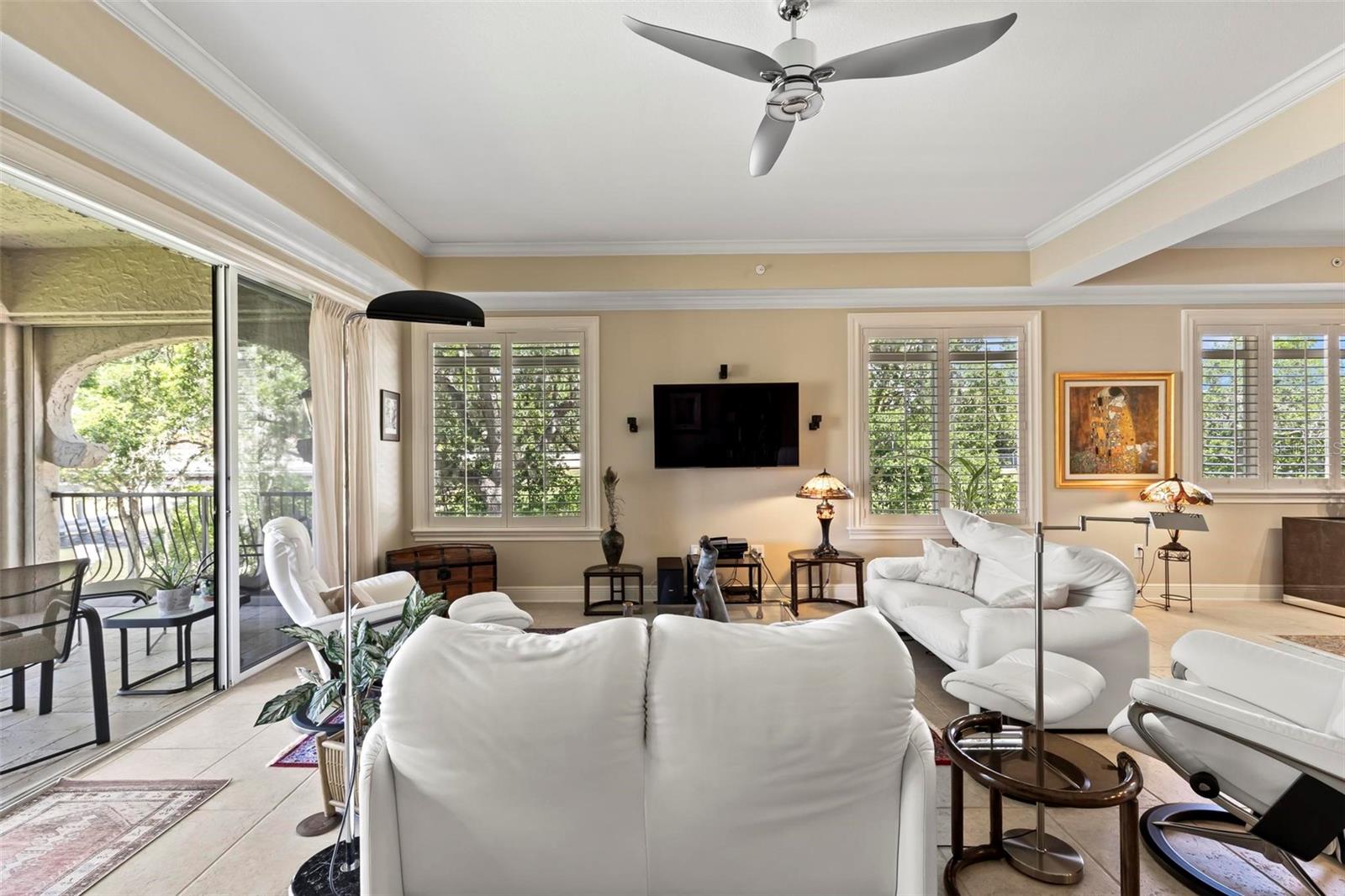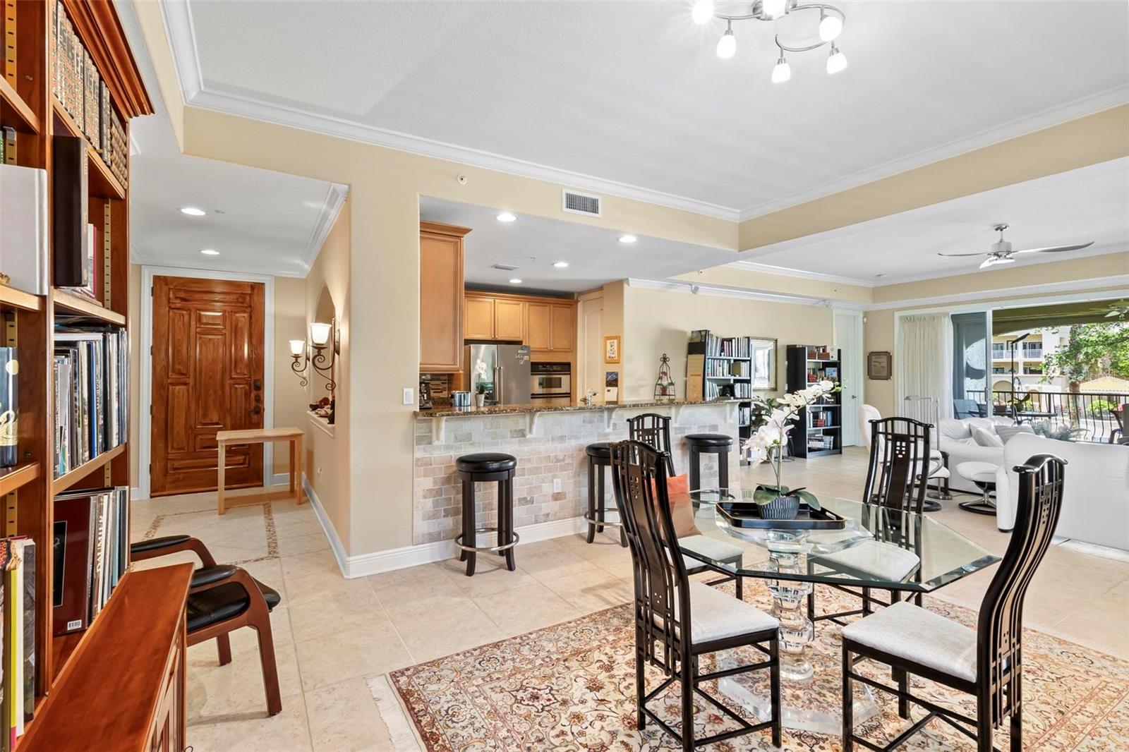 Bem-vindo à casa dos seus sonhos no Waterside Condominiums, um condomínio fechado sereno e impecavelmente mantido. Este requintado condomínio de 3 quartos e 3 banheiros se estende por 2.414 pés quadrados e está localizado no segundo andar, ostentando um encantador design mediterrâneo espanhol. Ao entrar na casa, você é saudado por um deslumbrante hall de entrada e piso de cerâmica que se estende por toda a unidade, complementado por luxuosas pranchas de vinil nos quartos. A elegância das sancas, dos tetos em forma de bandeja e das venezianas em todas as janelas realça a atmosfera refinada. A cozinha possui bancadas de granito, armários de madeira maciça, eletrodomésticos de aço inoxidável, backsplash de azulejos e forno e micro-ondas embutidos. Uma despensa considerável oferece amplo espaço de armazenamento. A ampla área de estar é inundada de luz natural, oferecendo um cenário perfeito para relaxamento e entretenimento. A suíte master é um verdadeiro retiro, com um amplo closet com estantes embutidas personalizadas. O luxuoso banheiro principal inclui uma espaçosa área de estar/flexível, armazenamento abundante e um box amplo de azulejos do chão ao teto. Tanto o quarto principal como a sala dão acesso ao pátio coberto com piso de cerâmica, com vista para o tranquilo canal de água salgada. Este pátio está equipado com persianas anti-furacão com controle remoto para sua tranquilidade. Os quartos adicionais são igualmente impressionantes, cada um com closets. Um quarto tem banheiro privativo, enquanto o outro possui uma porta Jack e Jill para o terceiro banheiro, ambos com box amplo de azulejos do chão ao teto. Convenientemente localizada do outro lado do corredor, a lavanderia com pia e amplo armazenamento. Os moradores dos Condomínios Waterside têm acesso a uma piscina e banheira de hidromassagem, perfeitamente situadas para relaxar e apreciar as vistas panorâmicas do canal de água salgada. Esta comunidade realmente incorpora paz e perfeição. Não perca a oportunidade de possuir este condomínio espetacular em uma comunidade íntima e tranquila. Agende sua exibição privada hoje mesmo!