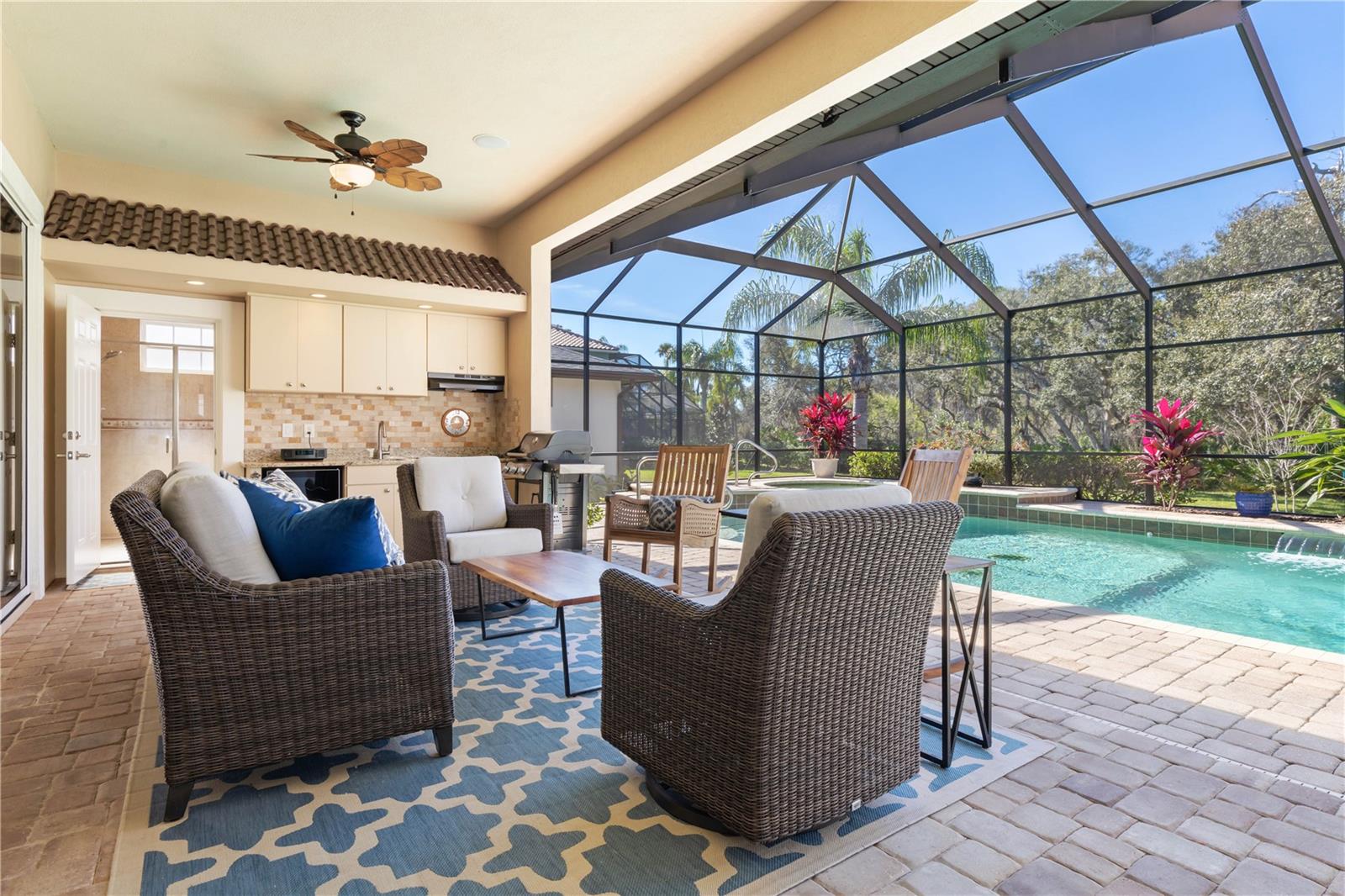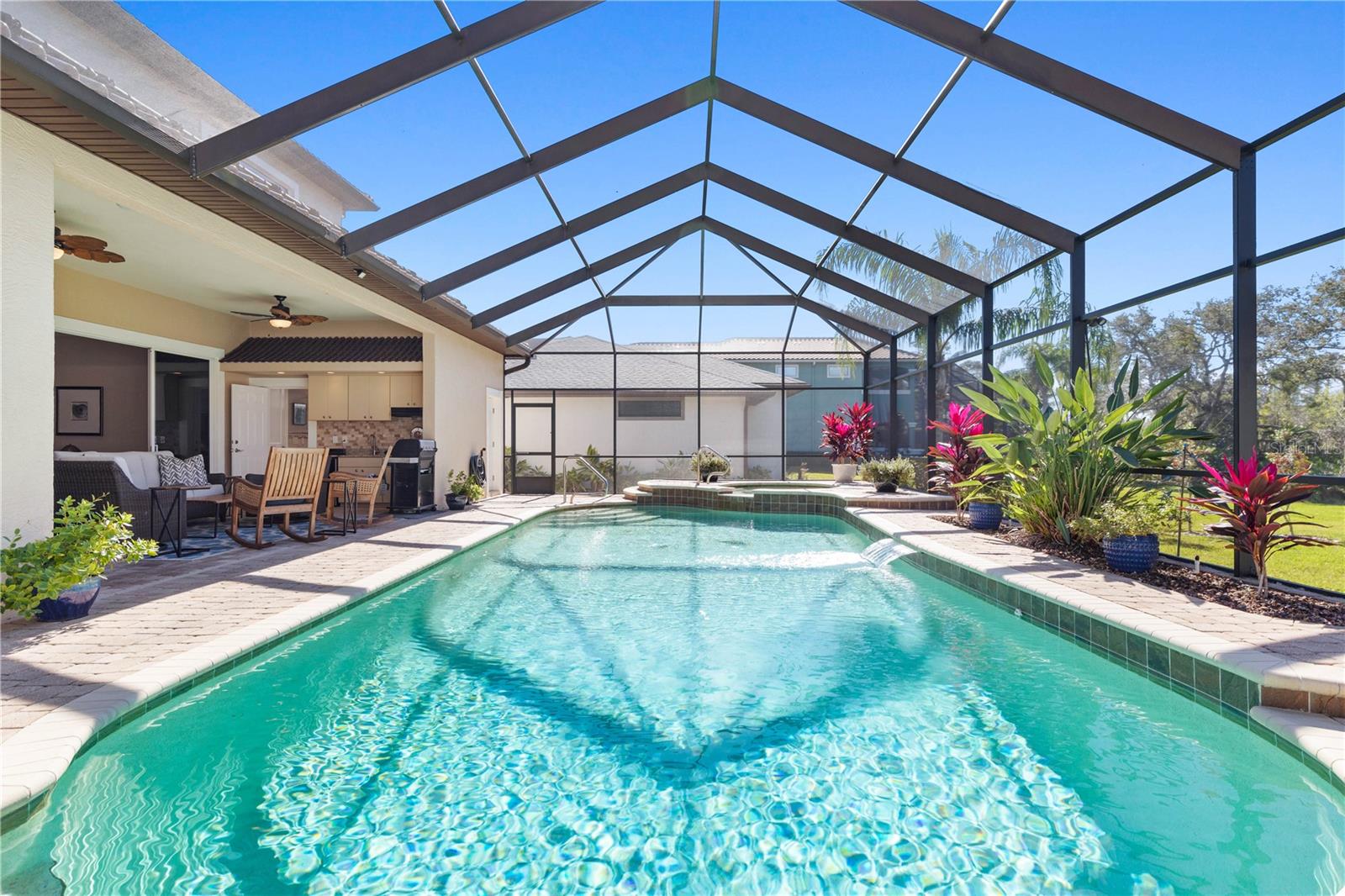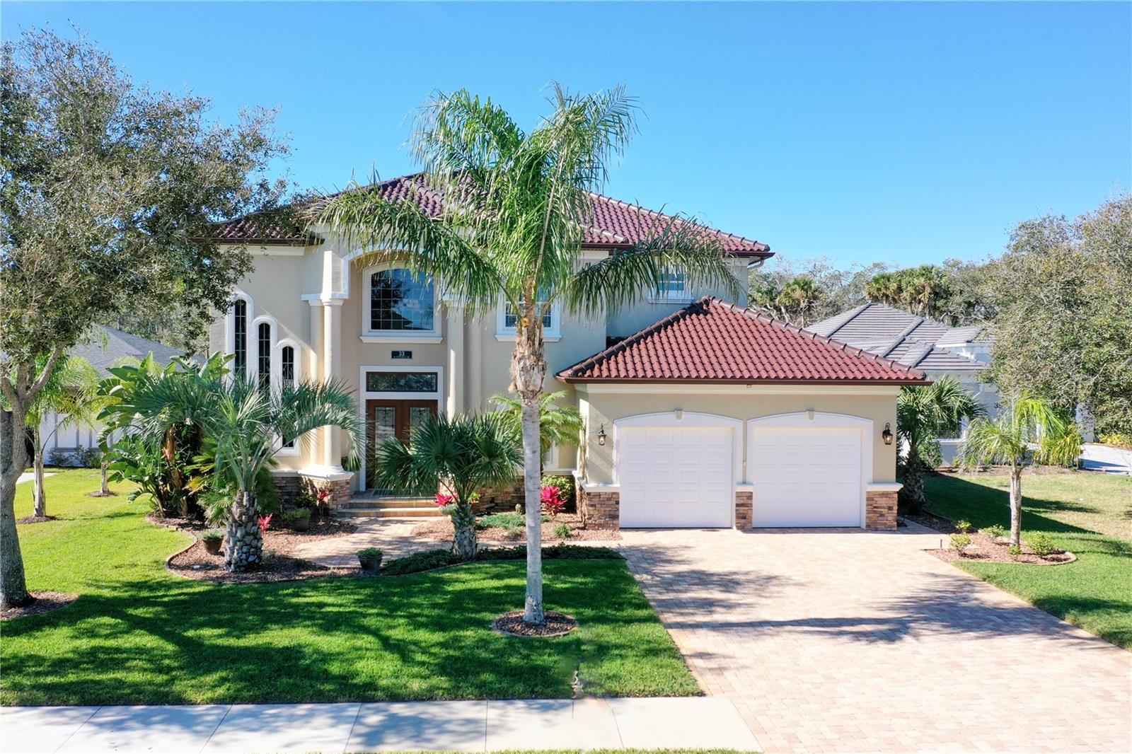 Experimente uma vida luxuosa nesta deslumbrante casa personalizada de inspiração mediterrânea, construída em um terreno espaçoso de um terceiro acre com belas vistas da área de conservação no cobiçado condomínio fechado de Palm Coast Plantation. Com uma grande entrada com tetos de 6 metros de altura no hall de entrada, esta residência oferece uma combinação perfeita de elegância e conforto. Com 4 quartos, 3,5 banheiros, um escritório e uma piscina/spa aquecida de água salgada, todos os aspectos desta casa foram meticulosamente projetados para atender às suas necessidades. O primeiro andar apresenta detalhes arquitetônicos requintados, incluindo tetos em forma de bandeja e sancas. Possui um quarto privativo com banheiro anexo que convenientemente funciona como banheira de piscina, uma área de jantar formal e uma sala familiar com controles deslizantes de 3,6 metros que levam à área da piscina. A cozinha gourmet é um paraíso gastronômico, equipada com bancada em granito, backsplash de azulejos, novos eletrodomésticos em aço inox incluindo fogão de indução, grande ilha central e bar completo, tornando-a um espaço ideal para entretenimento. No andar de cima, uma escada personalizada leva a um loft bônus e uma luxuosa suíte principal com banheira de travertino, pias duplas de mármore, chuveiro personalizado com múltiplas cabeças, banheira de hidromassagem e closets duplos com prateleiras de madeira personalizadas. Dois quartos de hóspedes adicionais de tamanho generoso com closets compartilham um banheiro Jack e Jill com pias separadas para maior comodidade. Do lado de fora, o oásis ao ar livre meticulosamente paisagístico apresenta belos pavimentos, uma cozinha de verão e um grande spa com aquecimento solar e propano e uma piscina com uma cascata relaxante. As características adicionais incluem uma espaçosa garagem para dois carros com portas isoladas e piso de cerâmica, perfeita para um carrinho de golfe, ferramentas, brinquedos ou uma academia doméstica. O sótão com pavimento em contraplacado proporciona espaço de arrumação adicional. O interior e o exterior foram recentemente pintados, e a casa está equipada com um novo gerador de 14 kW para toda a casa, telhado de telha vitrificada importada para durabilidade e vida livre de manutenção, novas bombas de piscina, nova célula de sal, novo soprador de spa, cobertura de piscina recém-recondicionada e pintados, novos banheiros altos e alongados, calçadas e passarelas pavimentadas e belo paisagismo com irrigação em poço artesiano, sistema de segurança, portas de núcleo sólido, venezianas e novas unidades de ar condicionado e aquecedores de água. Aproveite as comodidades desta comunidade procurada, incluindo tênis, pickleball, basquete, academia, clube, trilhas para bicicleta e caminhada, píer de pesca e armazenamento para trailers e barcos. A apenas 8 km da praia, lojas, restaurantes, instalações médicas e locais de culto, esta é uma oportunidade para abraçar um estilo de vida de luxo e conveniência. Não deixe de conferir o tour virtual, que é um vídeo passo a passo, e agende uma exibição hoje mesmo!