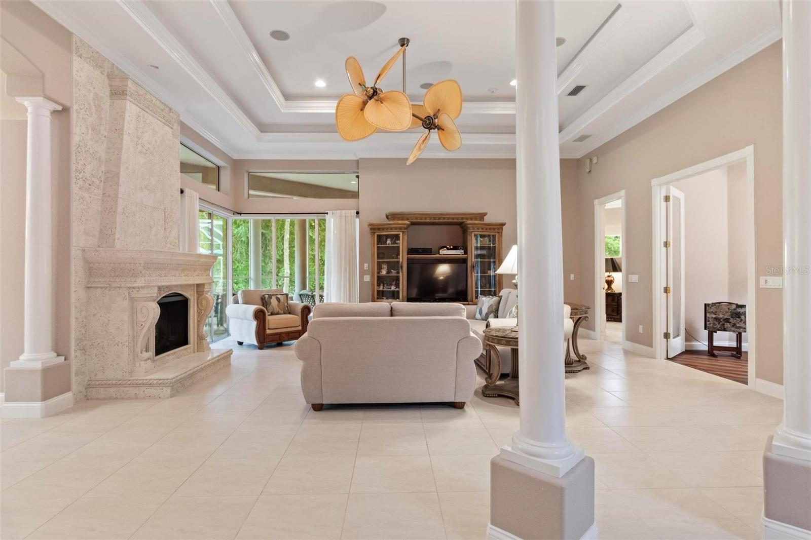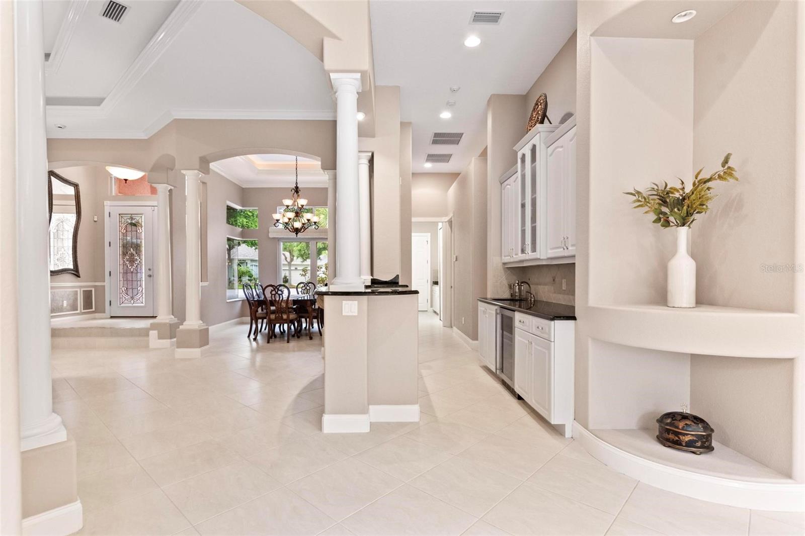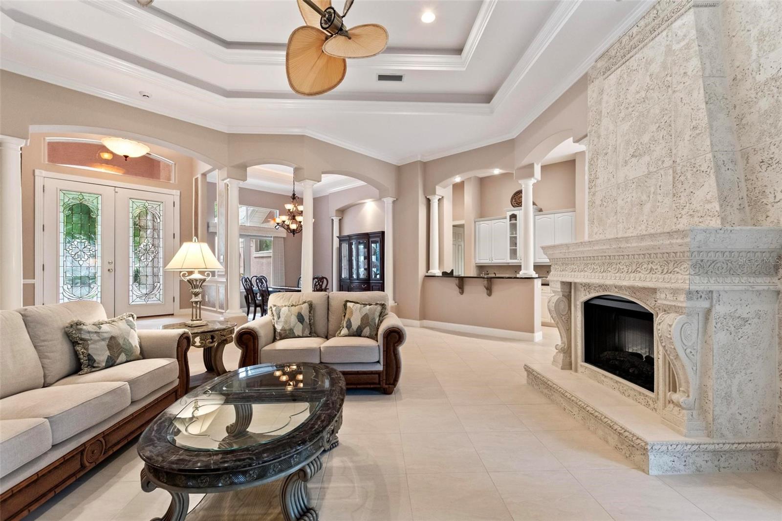 Bem -vindo ao 55 Riverbend, um imponente 4 quartos, 2,5 Bath Custom Built Red Carpet Home localizado em um beco sem saco em Grand Haven. Ande pelas portas duplas e entre a elegante sala da família com uma lareira embutida, moldagem por coroa e tetos de bandeja dupla. Há uma sala de jantar formal na sala de estar. O Eat in Kitchen tem uma despensa de mordomo com uma pia e geladeira de vinho e muito armazenamento! O quarto principal tem vista para o grande pátio e possui armários da Califórnia e uma área de leitura. O banheiro principal tem vaidades duplas, caminhe no chuveiro e banheira de jardim. Os dois quartos compartilham um banho de jack e jill com pias duplas. O quarto quarto é atualmente usado como um escritório. A roupa tem uma pia e muito armazenamento embutido. O grande rastreado no pátio percorre o comprimento da casa. Grand Haven é um condomínio fechado com 2 centros de comodidade com piscinas, tênis, pickleball e tribunais de bocha e 2 academias com inúmeras aulas de exercícios oferecidas. Há um campo de golfe Jack Nicklaus na comunidade e belos caminhos e caminhos de bicicleta ao longo da ICW.