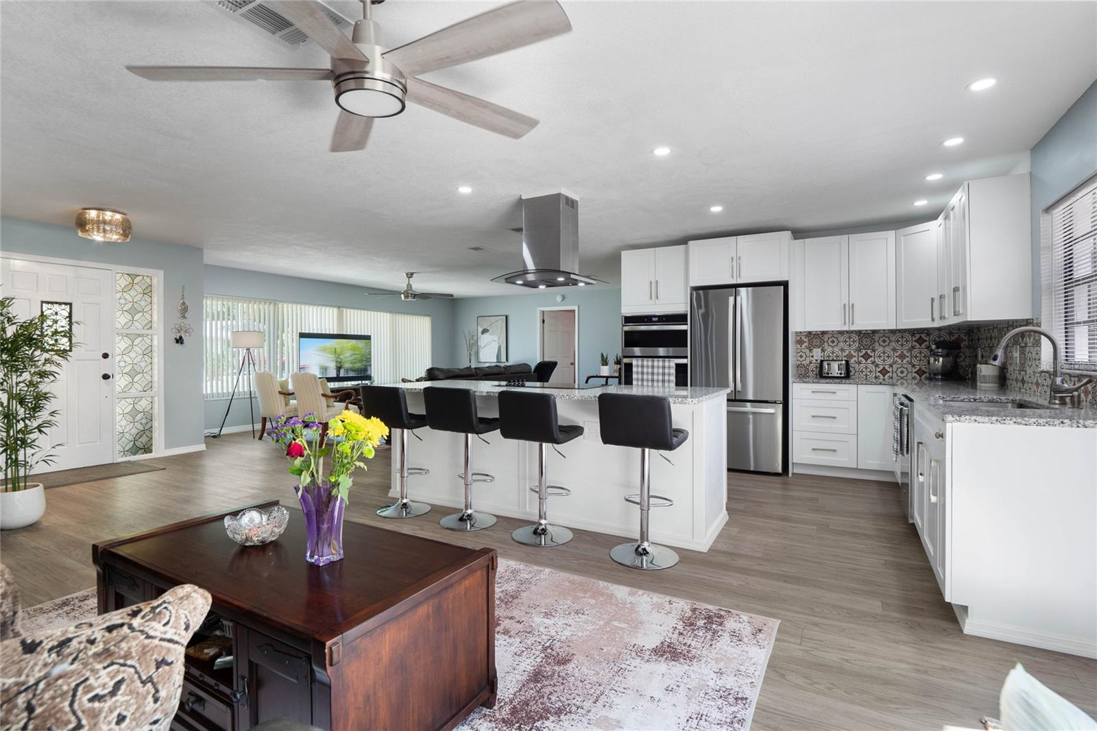 Entre nesta encantadora casa de 3 quartos e 2 banheiros que abrange 1.933 pés quadrados e seja recebido por uma abundância de luz natural em toda a planta aberta. A cozinha recentemente renovada, com eletrodomésticos modernos e acabamentos elegantes, flui perfeitamente para as áreas de estar e de jantar, criando um espaço convidativo para entretenimento. Além disso, a casa foi recentemente pintada e um novo telhado foi instalado em 2023, colocando a aparência desta casa em destaque! Relaxe no convidativo quarto Florida ou desfrute do quintal cercado, perfeito para viver ao ar livre. Convenientemente localizada a 1,6 km de um shopping center e de muitas outras comodidades, esta casa é imperdível!