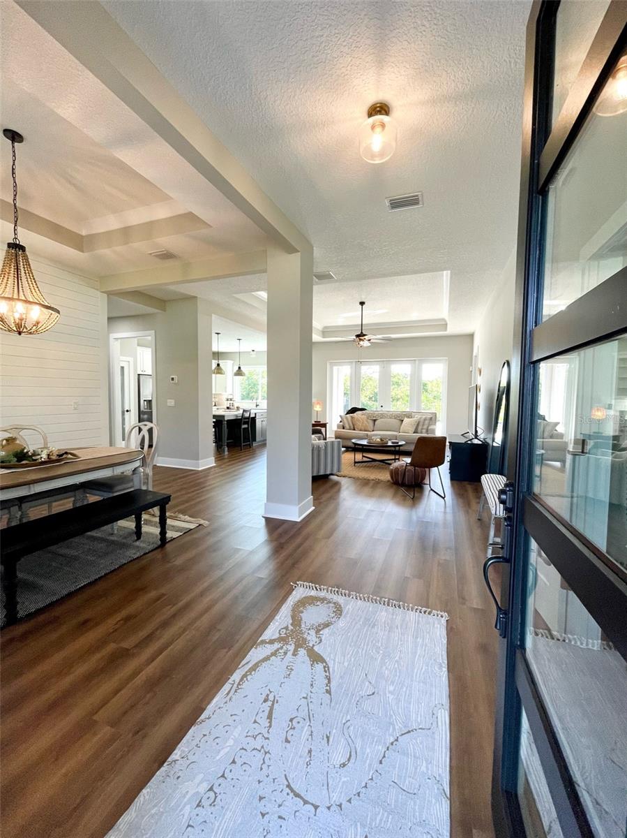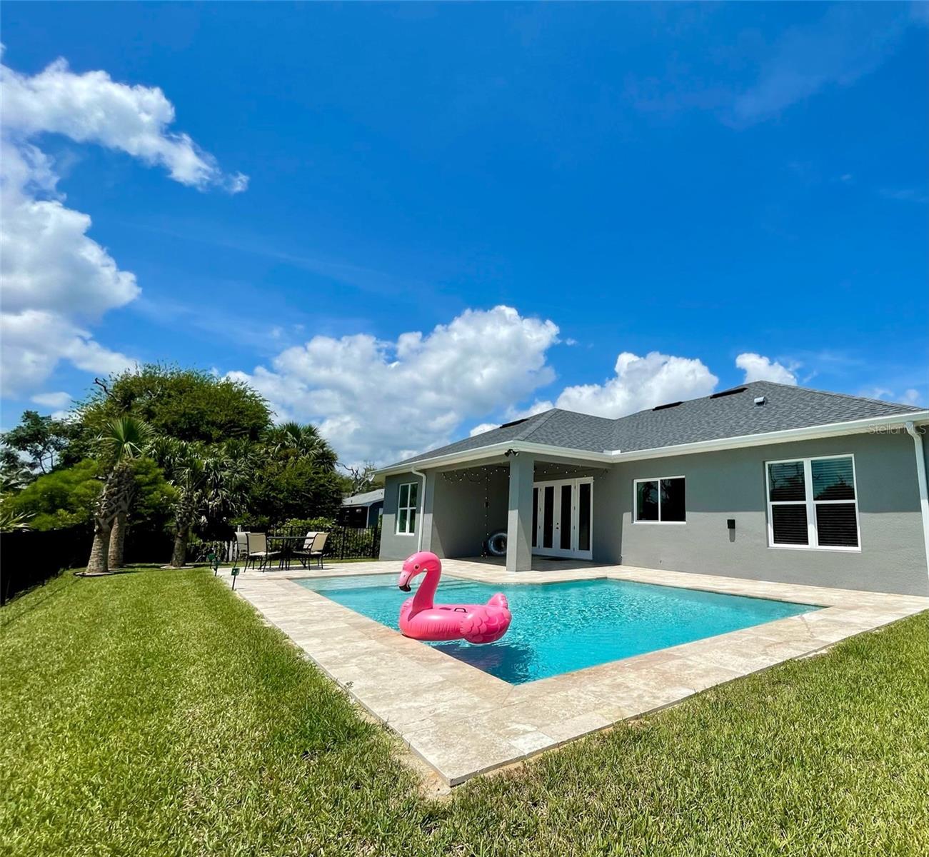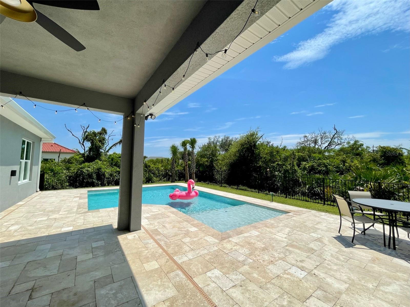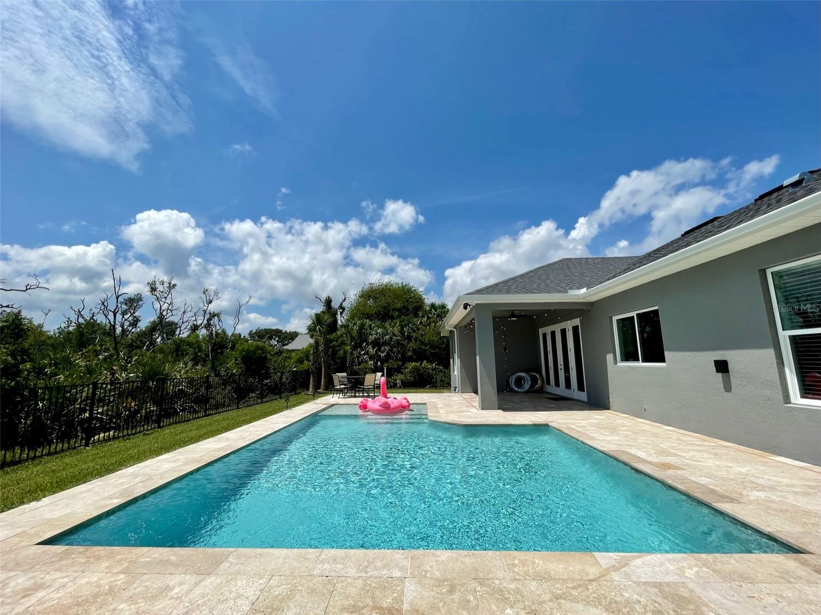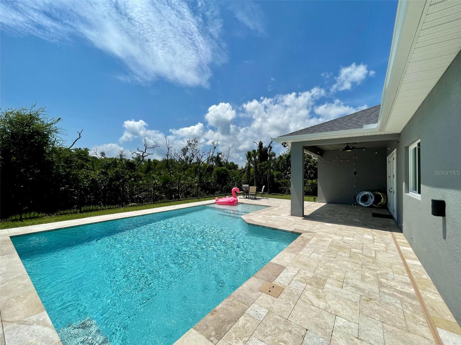 Relaxe com o domínio das ondas oceânicas da sua varanda de trás neste raro achado no paraíso! Realize seu verdadeiro sonho vivo costeiro nesta nova casa personalizada, arejada, arejada, moderna e além de fabulosas, 3 anos, na área cobiçada de Hammocks, onde coelhos marrons e tartarugas gopher vagam livremente. Esta propriedade fica a leste da A1A com acesso à praia. Esta casa não tem HOA. A uma curta distância a pé do oceano e em meio a graciosos os carvalhos espanhóis de musgo, esta adorável casa quase nova é uma surpresa. The 3 bedroom, den/office which can double as a 4th bedroom, 2 bath (2,157 AC / 2,999 total sf) open concept plan features many upgrades including elevated trey ceilings, tons of natural light offered by plenty of impact glass windows and doors, shiplap accents, custom coastal lighting, extensive upgraded quartz, 7' kitchen island, tons of soft close doors and drawers cabinets with undermount lighting, stainless steel appliance package, beautiful luxury plank flooring in all main living areas, upgraded carpet and pads in bedrooms, large master with double vanity & separate soaking tub/shower, window treatments, oversized garage w/ opener, impressive 8' French doors with sidelights overlooking a rear travertine lanai/pool deck - both under roof and beyond, providing extended living and entertainment space enveloped within a beautiful private palm treed and natural flora e quintal da fauna. Lounge e brincar na piscina acolhedora com uma fonte, iluminação e prateleira de bronzeamento/sol e nadar. As atualizações adicionais incluem persianas personalizadas, passarela de pavimentadora de tijolos, pacote de paisagismo aprimorado, conexão de RV de 50 amp, chuveiro ao ar livre, sistema de irrigação e sistema de alarme. A uma curta caminhada de uma praia de acesso à ação, perto de Bings Landing Park, a minutos de I95, compras, ciclovias, pickleball e quadras de tênis, rampas de barcos e restaurantes. Venderá mobiliado separadamente.