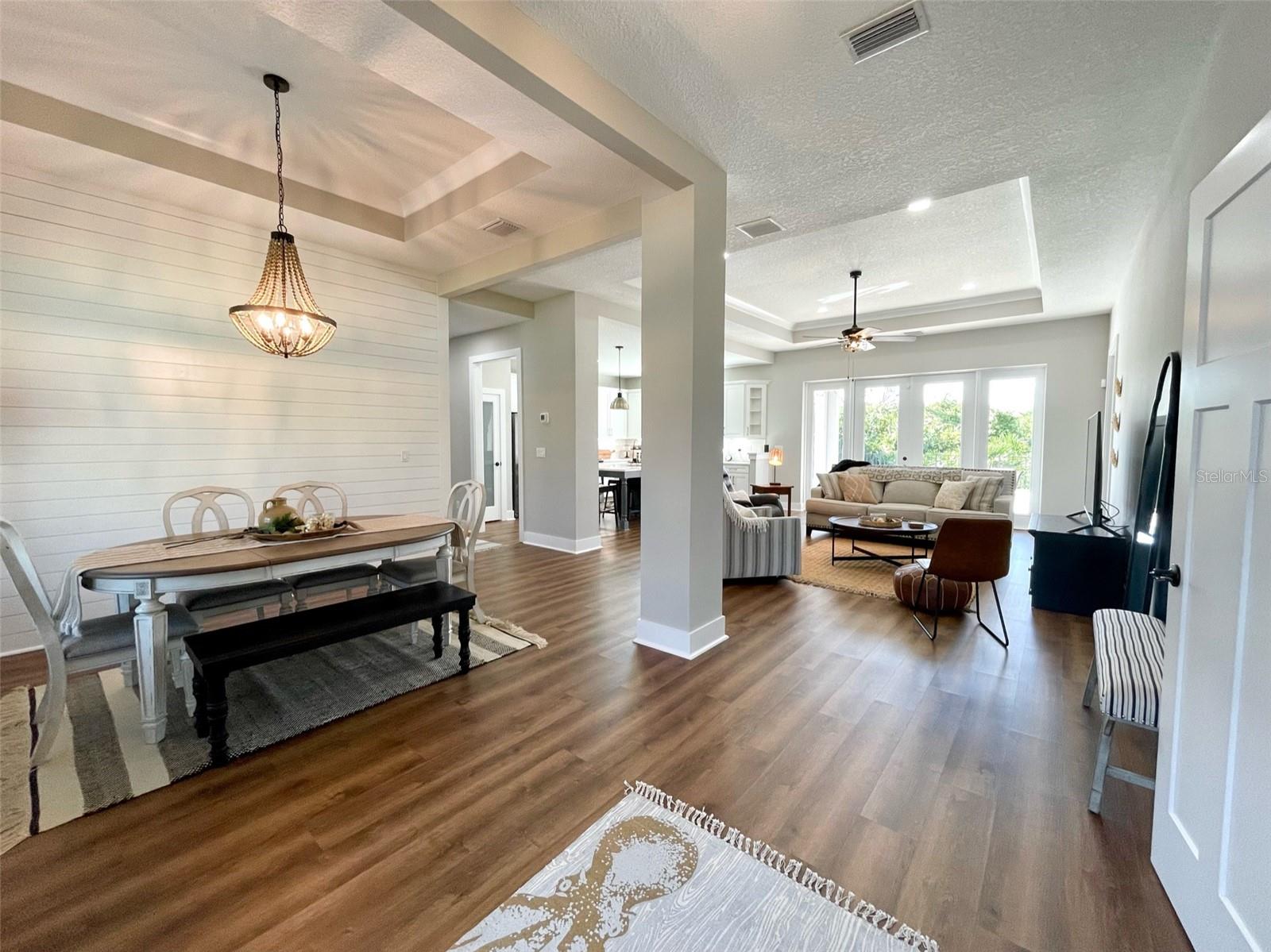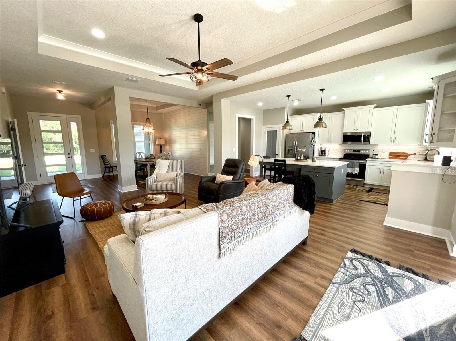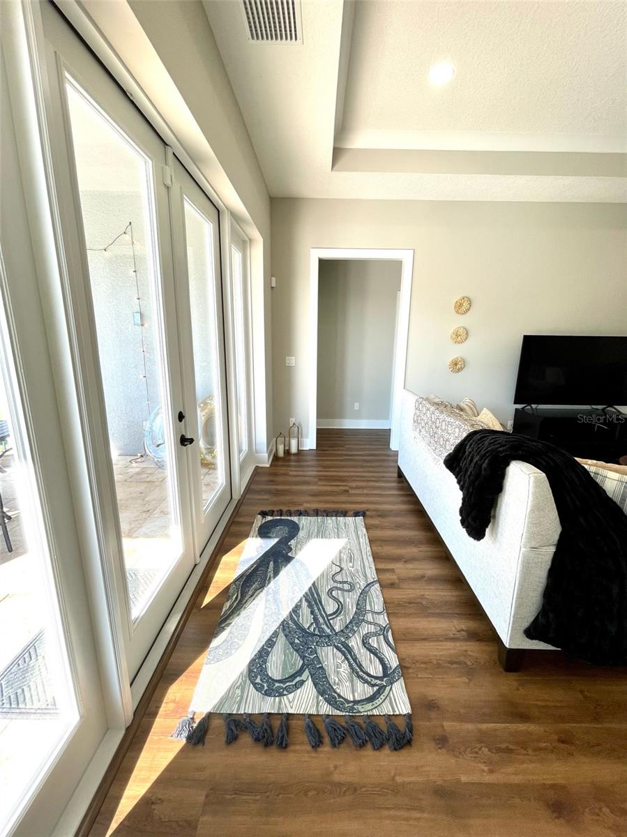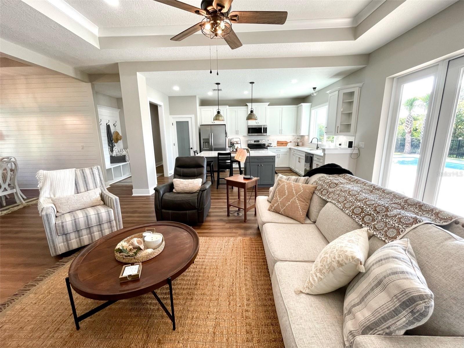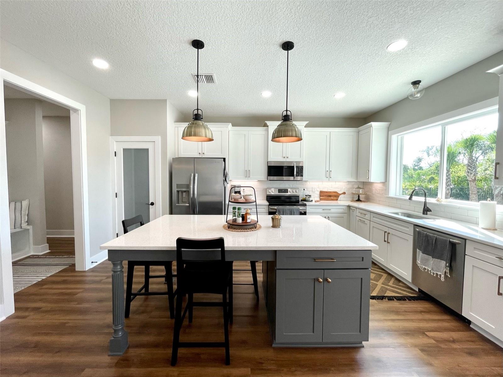 Relaxe com o domínio das ondas oceânicas da sua varanda de trás neste raro achado no paraíso! Realize seu verdadeiro sonho vivo costeiro nesta nova casa personalizada, arejada, arejada, moderna e além de fabulosas, 3 anos, na área cobiçada de Hammocks, onde coelhos marrons e tartarugas gopher vagam livremente. Esta propriedade fica a leste da A1A com acesso à praia. Esta casa não tem HOA. A uma curta distância a pé do oceano e em meio a graciosos os carvalhos espanhóis de musgo, esta adorável casa quase nova é uma surpresa. The 3 bedroom, den/office which can double as a 4th bedroom, 2 bath (2,157 AC / 2,999 total sf) open concept plan features many upgrades including elevated trey ceilings, tons of natural light offered by plenty of impact glass windows and doors, shiplap accents, custom coastal lighting, extensive upgraded quartz, 7' kitchen island, tons of soft close doors and drawers cabinets with undermount lighting, stainless steel appliance package, beautiful luxury plank flooring in all main living areas, upgraded carpet and pads in bedrooms, large master with double vanity & separate soaking tub/shower, window treatments, oversized garage w/ opener, impressive 8' French doors with sidelights overlooking a rear travertine lanai/pool deck - both under roof and beyond, providing extended living and entertainment space enveloped within a beautiful private palm treed and natural flora e quintal da fauna. Lounge e brincar na piscina acolhedora com uma fonte, iluminação e prateleira de bronzeamento/sol e nadar. As atualizações adicionais incluem persianas personalizadas, passarela de pavimentadora de tijolos, pacote de paisagismo aprimorado, conexão de RV de 50 amp, chuveiro ao ar livre, sistema de irrigação e sistema de alarme. A uma curta caminhada de uma praia de acesso à ação, perto de Bings Landing Park, a minutos de I95, compras, ciclovias, pickleball e quadras de tênis, rampas de barcos e restaurantes. Venderá mobiliado separadamente.