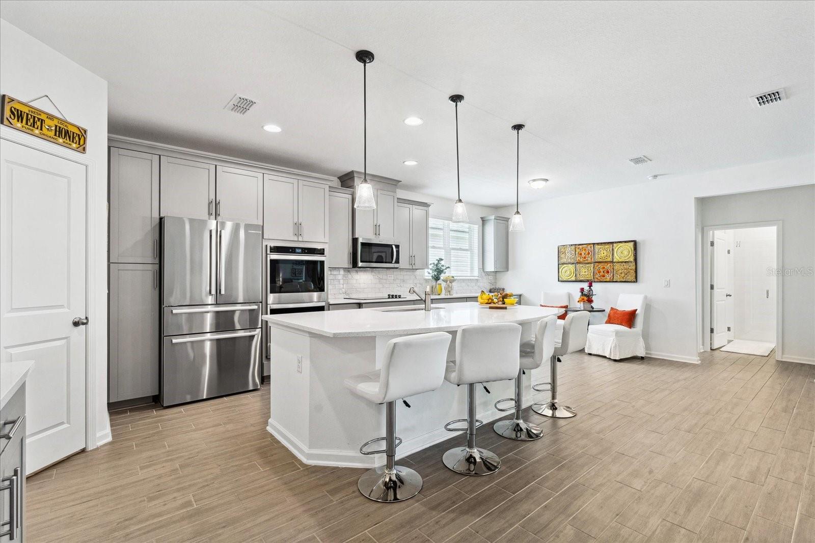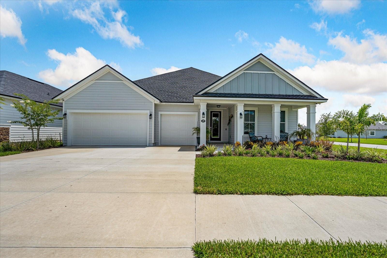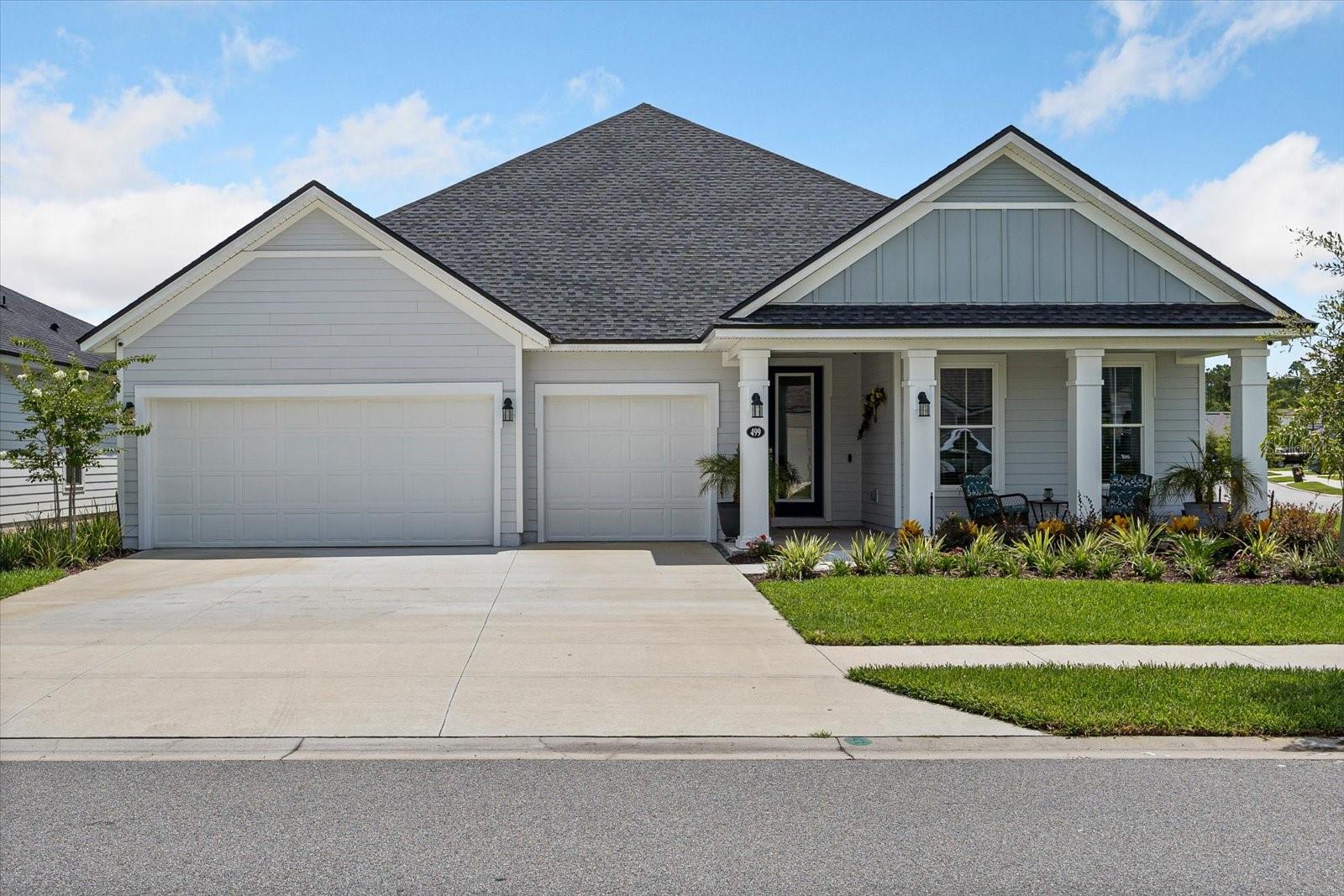 ** Preço para vender ** FENCENTE DE PRIVACIDADE NOVO 499 Grand Landings Pkwy in Palm Coast, FL, this stunning home is centrally situated just minutes away to from all of Palm Coast's main attractions and interstate 95. Built in 2023, this home boasts numerous upgrades, including upgraded top-of-the-line appliances, such as double wall ovens, 36” cooktop and upgraded quartz countertops with an oversized island, extra large master with custom built in closets, luxurious Banheiro principal do tipo spa e uma garagem rara de 3 carros para amplo espaço de estacionamento e armazenamento. Oferece muito espaço para entreter os hóspedes e desfrutar do ar livre.