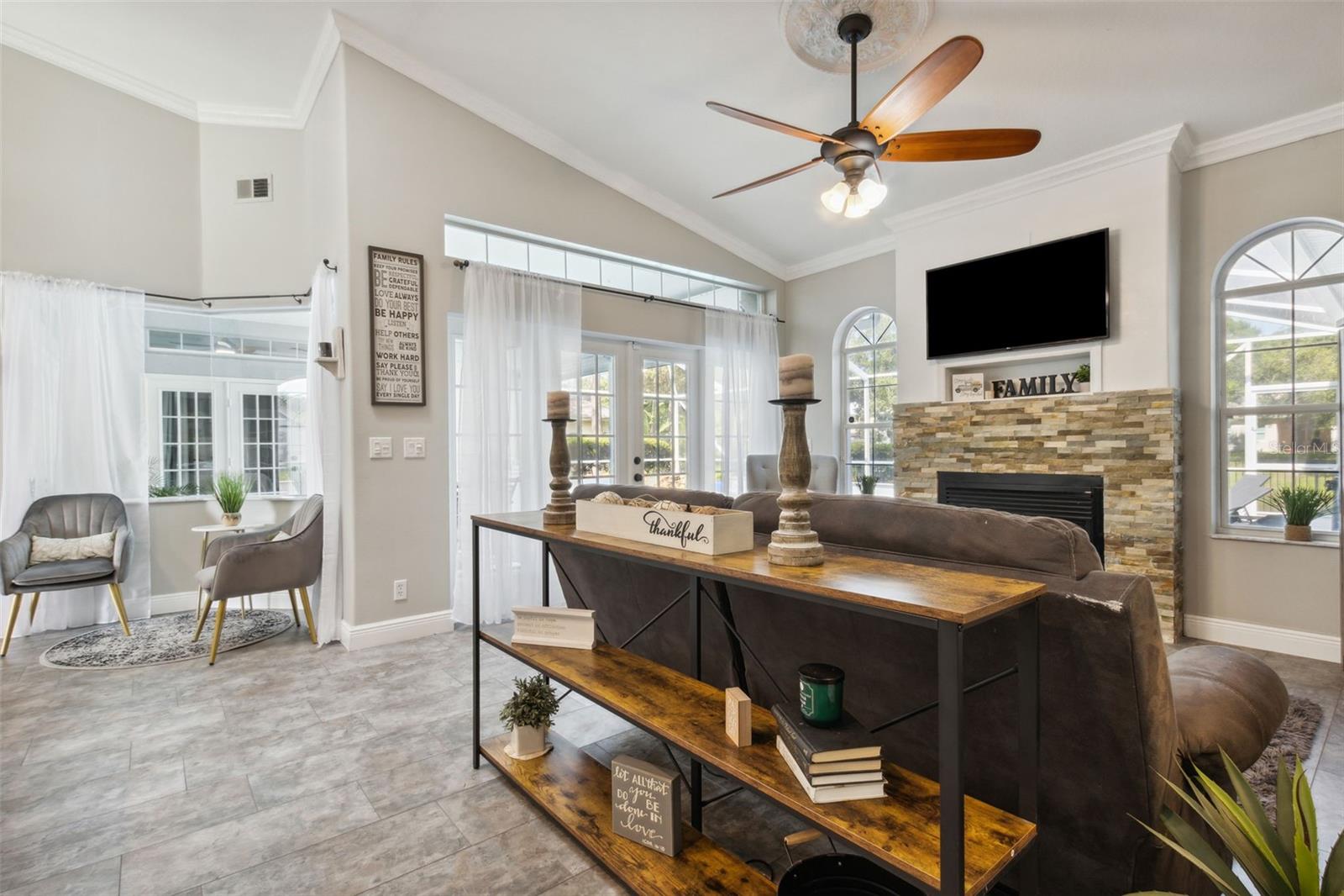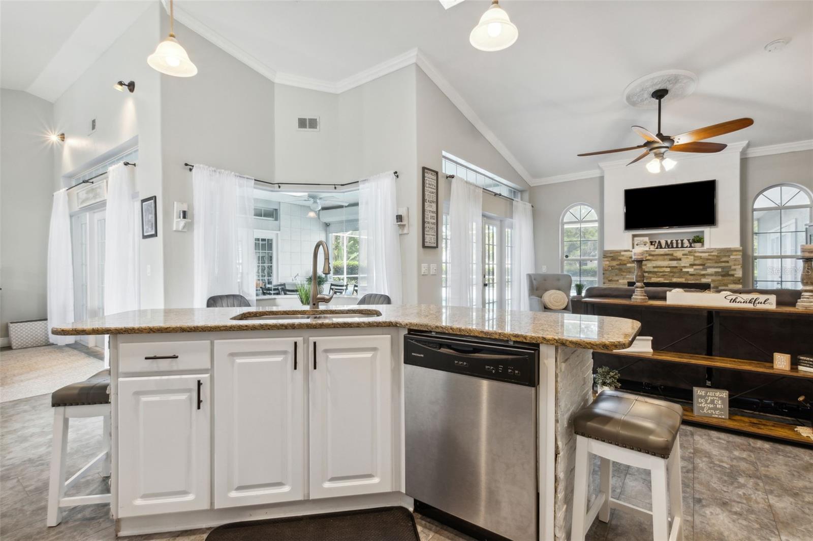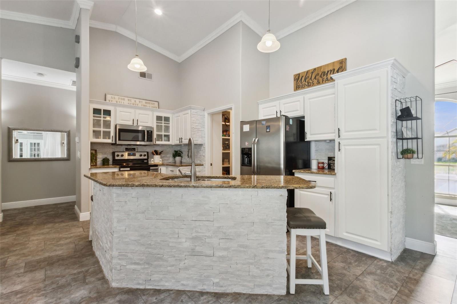 Uma ou mais fotos foram praticamente encenadas. Piscina de estilo contemporâneo em casa em lote duplo com fachada de cânio de água doce de 100 ' +. Mais de 2.300 pés quadrados de espaço, então traga toda a família, Plano Vivo Split, com duas suítes principais/primárias, uma em cada lados opostos da casa. Várias atualizações, incluindo bancadas de granito de superfície sólidas, piso atualizado, lareira a gás e moldagem por coroa na sala de estar e família. O telhado mais novo, o aquecedor de água, o AC e o proprietário ressurgiram recentemente a piscina, o trabalho/ela derramou a privacidade e a esgrima de ferro forjado nas costas - o canal se alimenta de Bird of Paradise Lake.