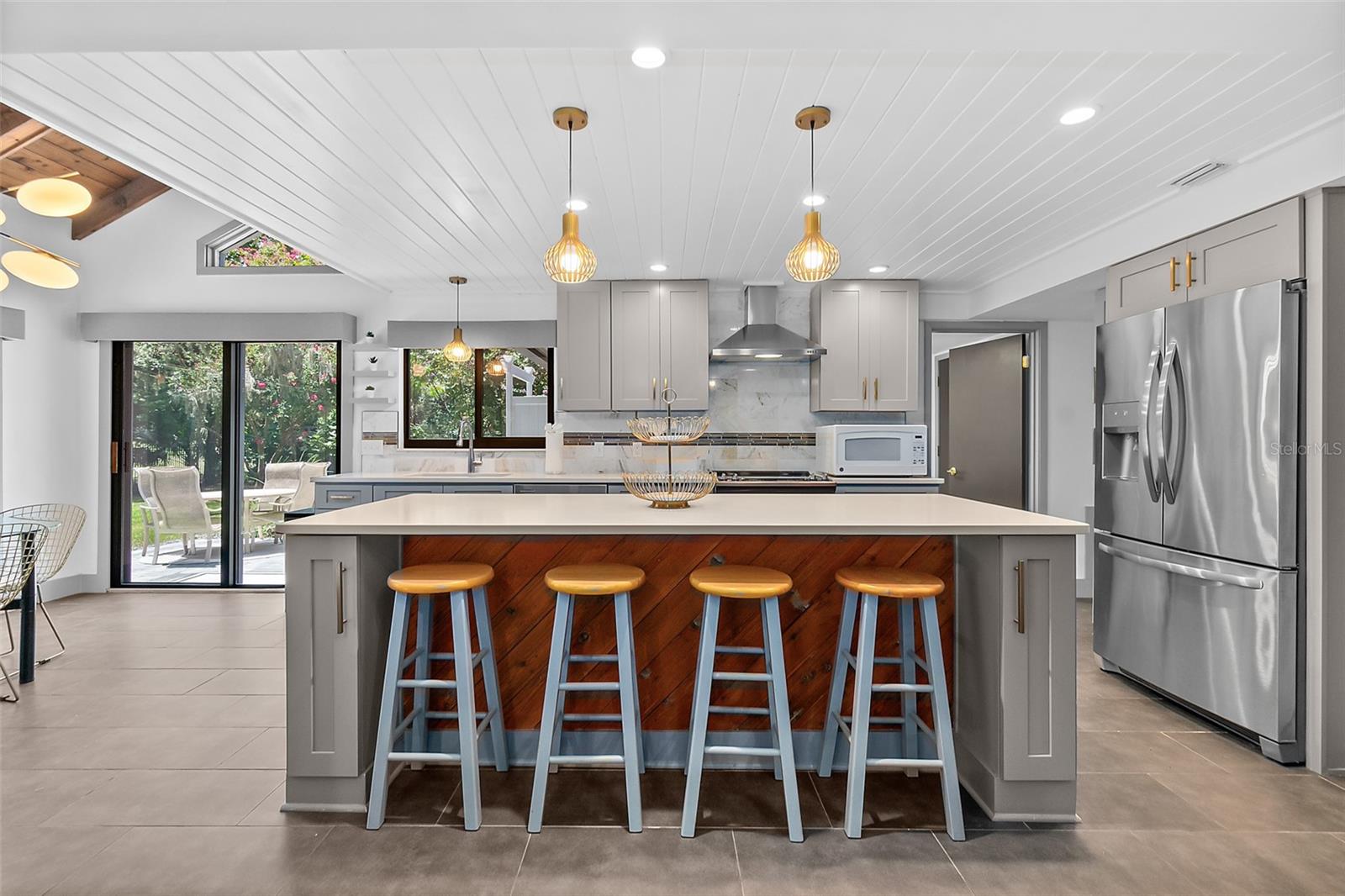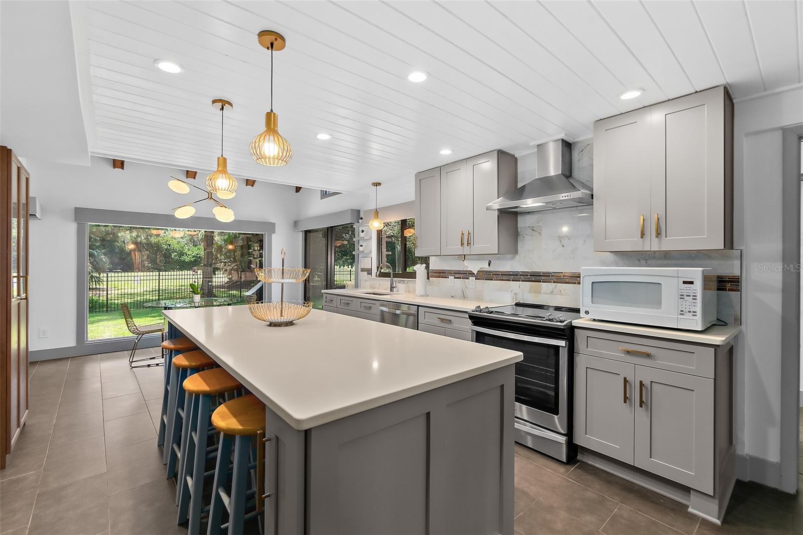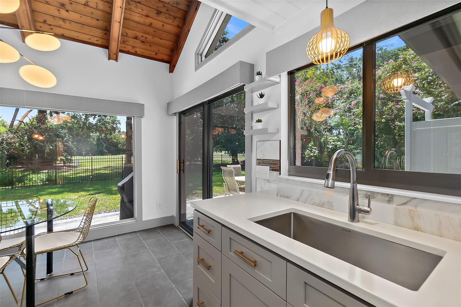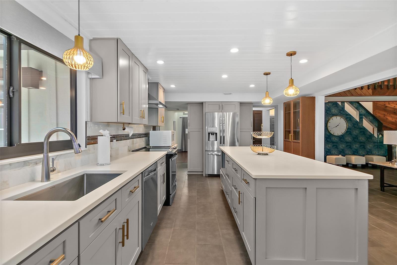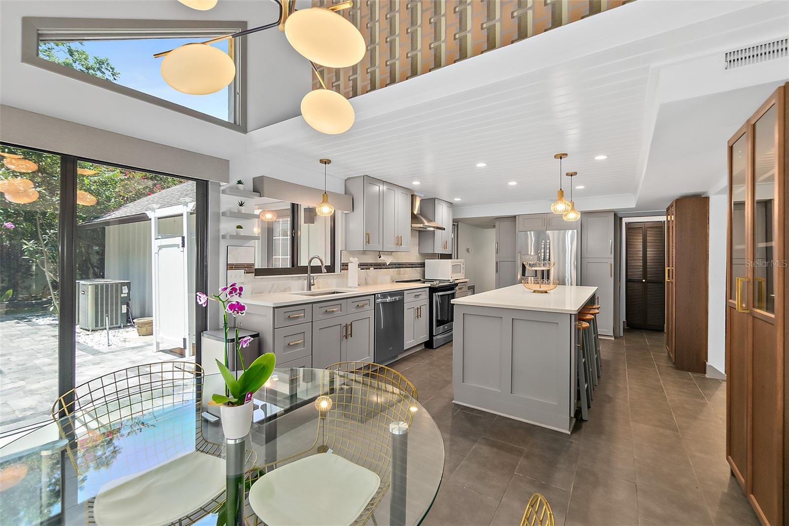 Descubra o epítome do design moderno de meados do século, agora lindamente restaurado com os acabamentos de luxo de hoje! Esta beleza rara única certamente capturará seu coração. Com vista para o campo de golfe de Palm Harbor na 4ª camiseta, esta obra-prima contemporânea está situada em um extremo muito procurado do lote do beco sem saída. A poucos minutos da praia de Flagler, da Europa Village, do Island Walk Shopping Center, do jantar, dos parques e das trilhas, esta jóia escondida oferece tranquilidade e conveniência. Isso não está localizado em um HOA, portanto, não há regras extras ou taxas mensais. Situado em um lote de 1/3 acres no final de um beco sem saída privado, você estará ansioso para voltar para casa para este cenário impressionante todos os dias. A casa combina perfeitamente seu charme original de meados do século com atualizações modernas, criando uma atmosfera única e convidativa. A cozinha do chef é um destaque, com utensílios de aço inoxidável, bancadas elegantes de quartzo e uma impressionante ilha de 8 ' - ideal para preparação de refeições, refeições casuais ou entretenimento. O recanto de jantar oferece vistas serenas do quintal e da lagoa, aumentando o fascínio da casa. A cozinha flui sem esforço para a espaçosa área de estar, com uma impressionante lareira de pedra empilhada como peça central. A área de estar também possui portas de vidro deslizantes de 16 'que se abrem em um grande deck traseiro e pátio, mesclando perfeitamente a vida interna e externa enquanto mostrava vistas deslumbrantes do campo de golfe. O quarto primário do primeiro andar é um retiro luxuoso, completo com um grande closet de cedro e um banheiro privativo do tipo spa. Aqui, você encontrará uma banheira independente e um chuveiro separado, oferecendo a melhor experiência de relaxamento. Com uma planta baixa que inclui quatro quartos grandes com armários duplos, há muito espaço para uma família grande, um escritório em casa ou uma área de estar flexível. Os recursos adicionais incluem uma sala de jantar formal perfeita para ocasiões especiais, uma lavanderia interna com pia de utilidade e acesso ao convés traseiro e chuveiro ao ar livre e uma garagem de 2,5 carros com amplo espaço para estacionamento e armazenamento. As bombas de calor de zona dupla garantem aquecimento e resfriamento eficientes, enquanto as portas deslizantes com classificação de impacto fornecem proteção e tranquilidade. A casa pode ser comprada mobiliada para uma segunda casa ou aluguel de férias de curto prazo. O proprietário recentemente adicionou um pátio cercado e pavimentador personalizado com fogueira. Câmeras de segurança do anel e iluminação está incluída. Todos os detalhes desta casa deslumbrante foram cuidadosamente projetados, tornando -a uma experiência de vida requintada que você não vai querer perder.