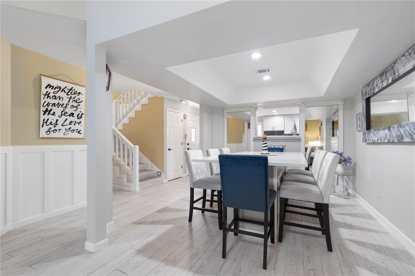 *** Townhome a beira -mar excepcional acabou de reduzir *** apenas traga sua escova de dentes, pois esse atordoador pode ser comprado totalmente mobiliado, tornando muito a bela e modernizada Townhome na desejável comunidade de marina conceituada. Com mais de US $ 85.000 em atualizações recentes, esta casa de inspiração costeira exala charme e sofisticação desde o momento em que você entra. Situado diretamente no canal principal da via hidrográfica intracoastal, esta cidade brilhante e ensolarada de 3 quartos e 2,5 banheiros, oferece vistas deslumbrantes de golfinhos e peixes-boi tocando no seu quintal. O interior espaçoso apresenta novos pisos brancos projetados por bétula e tábua de vinil de luxo (LVP) por toda parte-nenhum tapete em qualquer lugar. A área de estar principal é aprimorada com elegantes lambris, tinta fresca, criando uma atmosfera quente e convidativa. A cozinha recém-renovada é o sonho de um chef, com aparelhos totalmente novos, bancadas em granito e um backsplash decorativo. Um "repasse" exclusivo da cozinha para a sala de jantar acrescenta conveniência, enquanto a própria sala de jantar impressiona com um teto de bandeja e uma mesa de jantar de quartzo de 7 pés personalizada com amplo espaço de armazenamento embutido-essa peça impressionante transmite com a casa. A suíte primária do primeiro andar é um retiro, com vista para a água e apresentando um closet, um banheiro lindamente azulejo com um chuveiro, um armário de madeira maciça e personalizada adicional, nova vaidade e vaso sanitário. O jantar e a área de estar de conceito aberto são banhados em luz natural, graças a grandes janelas e portas de vidro deslizantes, todas emolduradas por tetos de catedral crescentes. No andar de cima, você encontrará um espaçoso segundo quarto com um closet, tetos abobadados e um banheiro de hóspedes lindamente redesenhado. A área do terceiro quarto, com seu armário completo e prateleiras personalizadas, também pode servir como espaço de escritório, oferecendo versatilidade para atender às suas necessidades. Saia para o pátio coberto e selecionado com sua nova porta de teto e tela e aprecie as vistas panorâmicas de tirar o fôlego da marina, a poucos passos. A garagem de um carro inclui uma nova porta lateral, muitas prateleiras e espaço no sótão para armazenamento adicional. Como parte da vida em Marina Cove, você desfrutará de uma piscina, tênis e quadras de pickleball, docas de barco e caminhadas - tudo ao longo da hidrovia intracoastal. Para aqueles que amam a vida na água, um deslizamento de barco privado de 43 'com água e eletricidade está disponível para compra, situado diretamente atrás da casa da casa para obter uma conveniência final! Não perca esta incrível oportunidade de viver o estilo de vida da Flórida ao máximo. Certifique -se de ver a turnê virtual, que é um vídeo passo a passo.