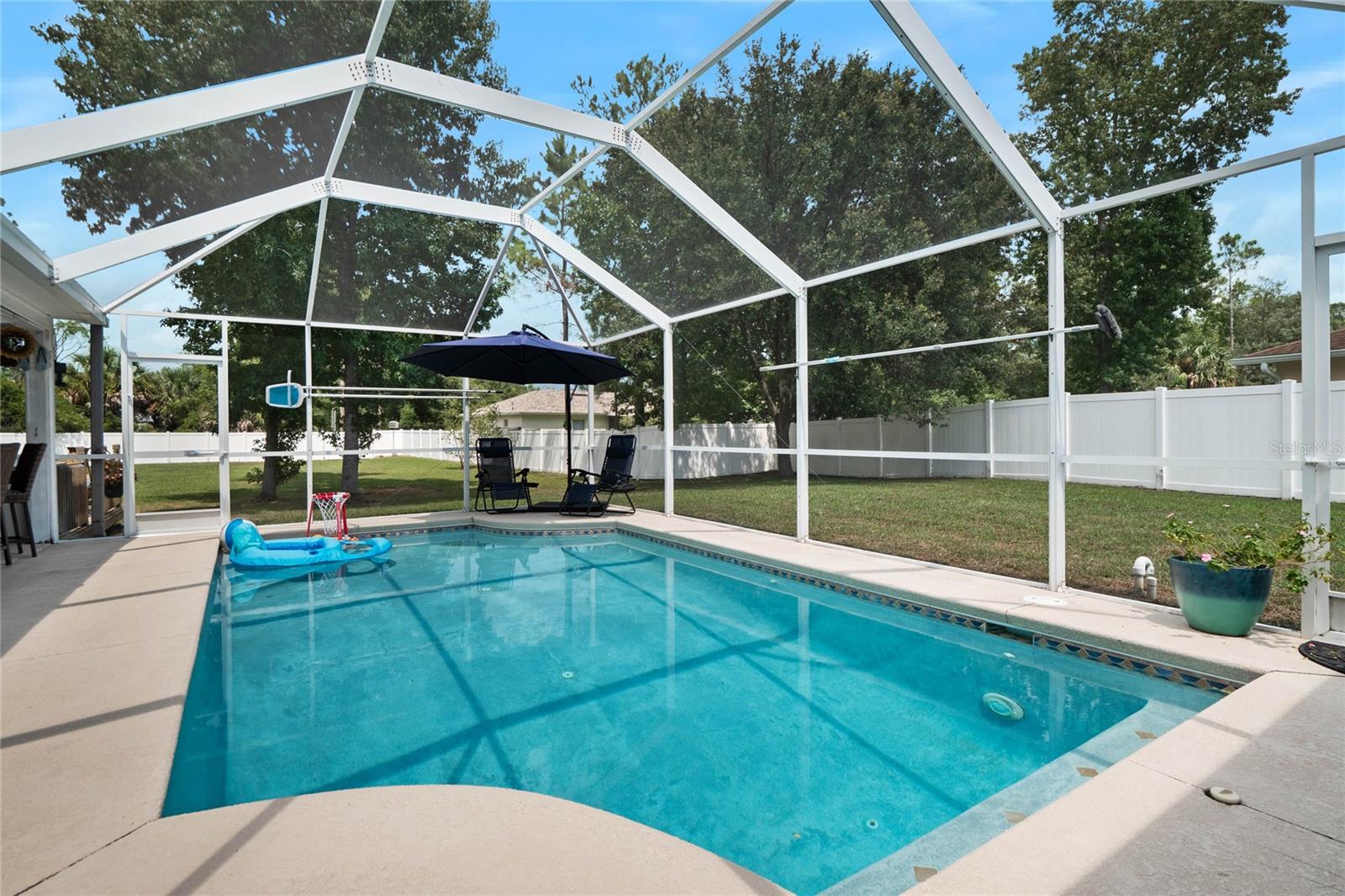 Casa rara com piscina em lote duplo e quintal cercado de vinil oferecendo 4 quartos e 3 banheiros em Palm Coast. Você vai adorar relaxar no pátio coberto com vista para a piscina e para o tranquilo quintal privado aberto. Dividir os lotes também pode ser uma oportunidade de investimento. Você apreciará todos os ótimos espaços que esta casa tem a oferecer para viver o estilo de vida da Flórida. Entre enquanto abraça dois grandes quartos com banheiros privativos. A grande cozinha é o sonho de qualquer chef e está repleta de atualizações, incluindo bancadas de granito, eletrodomésticos de aço inoxidável e armários de madeira. A espaçosa sala de estar é outra característica incrível, com novas portas francesas que dão acesso à piscina e ao pátio para entretenimento. Você realmente precisa explorar esta linda casa para ver tudo o que ela tem a oferecer. Tapete berbere totalmente novo nos quartos, telhado 2022, HVAC/AC 2021 e aquecedor de água 2023. A poucos minutos de escolas, lojas, restaurantes e I-95 de Palm Coast. A uma curta distância de carro das praias arenosas de Flagler Beach. Agende uma exibição hoje para ver esta joia rara e incrível antes que ela desapareça!