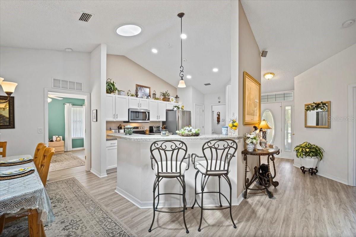 Charmosa casa em Matanzas Woods em Palm Coast, apoiando uma reserva privada. Imaculadamente mantida com piso de pranchas de vinil de luxo mais recente em toda a maior parte da casa, a cozinha possui eletrodomésticos de aço inoxidável e bancadas de granito mais recentes, armários e gavetas com fechamento suave, bem como prateleiras removíveis para facilitar o acesso. A grande planta aberta apresenta uma grande sala com sala de jantar adjacente. A Cobertura foi refeita em 2021 e inclui 2 Túneis Solares na Grande Sala e 1 na Cozinha para proporcionar muita Luz Natural, bem como a extensão de Tectos Abobadados. É uma planta tripla dividida com um escritório/quarto quando você entra, 2 quartos e um banheiro do outro lado, e o quarto principal e o banheiro ficam do outro lado da casa para privacidade. Há uma ENORME Lanai com tela de 38x12 que inclui uma grande banheira de hidromassagem para 5 pessoas para resolver seus problemas! O banheiro principal inclui pias duplas, uma grande banheira de imersão, chuveiro separado e closet. Para sua tranquilidade, o AC é 2017, há calhas, entrada com tela, sistema de sprinklers, cupins, sistema de alarme, ventilador solar no sótão e belo paisagismo maduro. Existe até sistema de som surround para facilitar a audição. O Lanai & Inviting Entryway apresenta nova exibição. Esta casa está pronta para morar e com preço de venda!