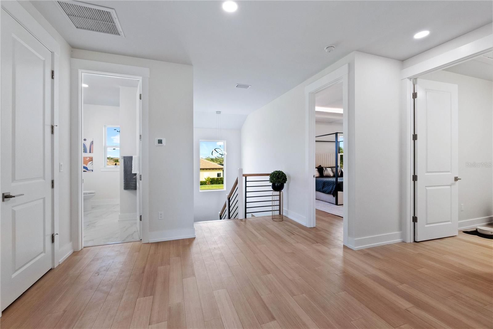 Descubra o seu santuário em uma NOVA casa personalizada situada no Conservatório de Hammock Beach! Uma vista pitoresca com exposição nascente/poente sobre a lagoa e 9ª Tee box no campo de golfe desenhado por Tom Watson. A combinação perfeita de conforto e estilo com 4 quartos, 4 banheiros com amplo espaço para família e convidados. O quarto no andar principal possui uma suíte para sogros com banheiro garantindo privacidade e facilidade de acesso para hóspedes ou familiares. O piso de madeira de bambu aumenta a eficiência e sofisticação da casa. O segundo andar foi projetado para relaxamento e diversão em família, com um luxuoso quarto principal com box amplo, banheira de imersão independente e pias duplas, bem como um salão espaçoso para jogos e sala de mídia ou uso como 5º quarto adicional. Relaxe e divirta-se no seu pátio com espaço extra no quintal para adicionar uma piscina. (Ver projeto da piscina em anexo) Imóvel possui garagem tandem para 3 carros, pé direito alto por toda parte, teto falso com iluminação LED embutida na sala, quarto principal e quarto flexível. Consulte os documentos de listagem para obter o folheto de recursos adicionais e a planta baixa. HOA mantém todo o seu paisagismo, incluindo um sistema de água reciclada separado e a recém-instalada internet de fibra óptica de alta velocidade está incluída nas taxas trimestrais. Como residentes do Conservatório de Hammock Beach, os proprietários também têm a opção de ingressar no exclusivo Hammock Beach Resort e Golf Club. Convenientemente localizada a poucos minutos da praia, I-95, lojas e restaurantes, esta casa tem de tudo! Mobiliário não incluído no preço de venda. Clique no link abaixo para ver o vídeo da comunidade do Conservatório: https://drive.google.com/file/d/1U23iaT-9KcYlXqEDy5FrjJaeQRGTtnyS/view