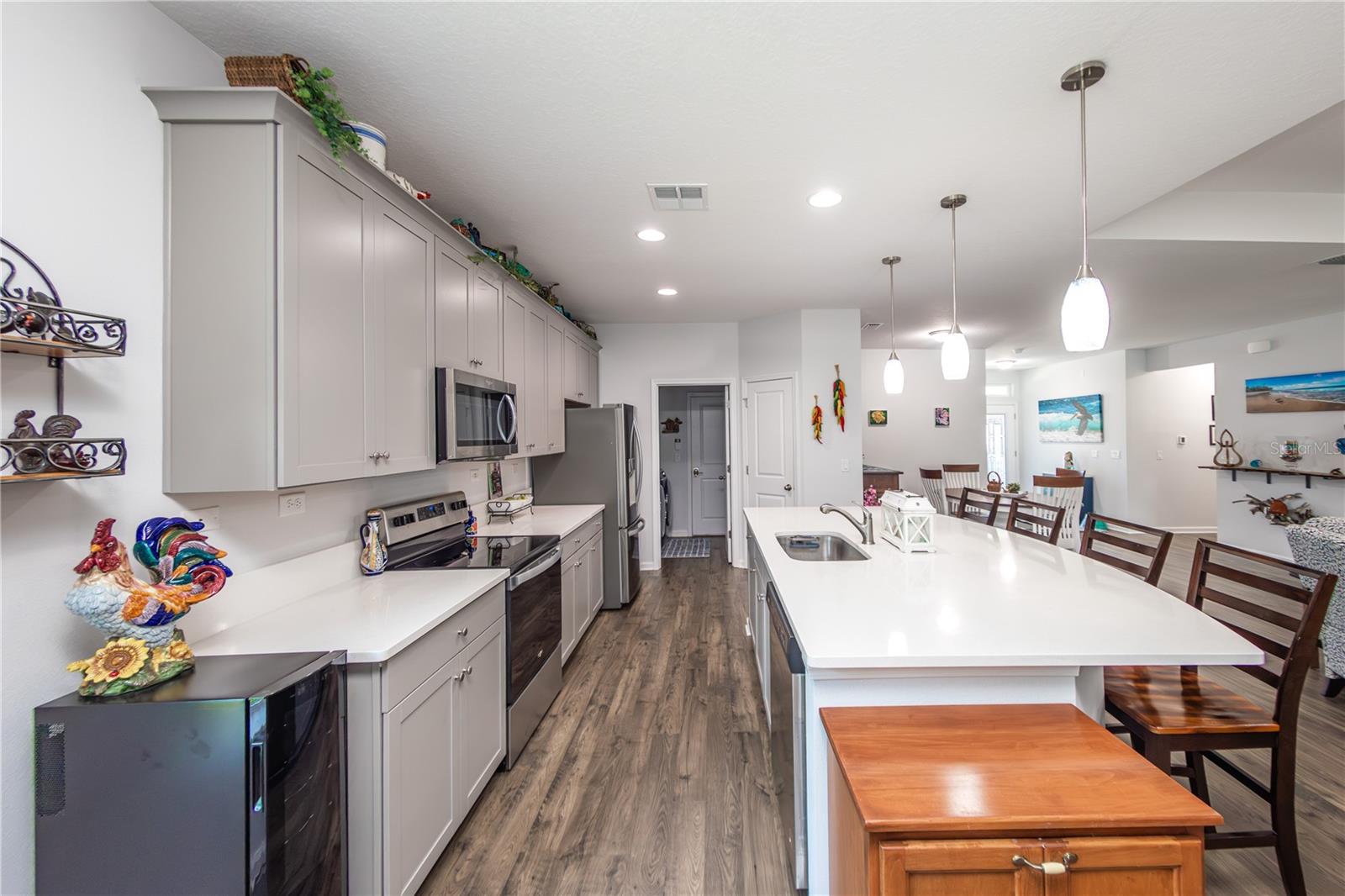 Procurando paz e tranquilidade? Uma reserva atrás desta linda casa com um canal cheio de peixes oferece todos os tipos de observação de pássaros. Eagler, águias pescadoras e falcões são abundantes. Você pode até ver uma lontra ocasional espirrando na água. Você pode ver todos eles enquanto está sentado na maravilhosa varanda estendida com pavimentação. Localizado em Grand Landings, um condomínio fechado desejável com baixas taxas de HOA. A piscina comunitária é uma piscina de entrada zero com academia e parque para cães. Utilidades subterrâneas em toda esta encantadora comunidade. Esta casa oferece 5 quartos e 2 banheiros com piso laminado nas áreas principais e carpete nos quartos. Uma grande ilha de quartzo na cozinha com bastante espaço para bancos de bar. Os armários da cozinha têm 42 pés e a despensa para lavadora/secadora fica fora da área da cozinha. Mármore cultivado em ambos os banheiros, box amplo e banheira de jardim para relaxar no banheiro principal. O quarto principal tem um closet com prateleiras embutidas e hastes suspensas resistentes. Sala de estar/jantar aberta e arejada para entretenimento ou simplesmente sentar e relaxar. Nossa bela Flagler Beach fica a menos de 10 minutos de carro, onde você pode desfrutar de restaurantes, fazer compras ou pular ondas. As compras Publix ficam a poucos minutos na SR-100.