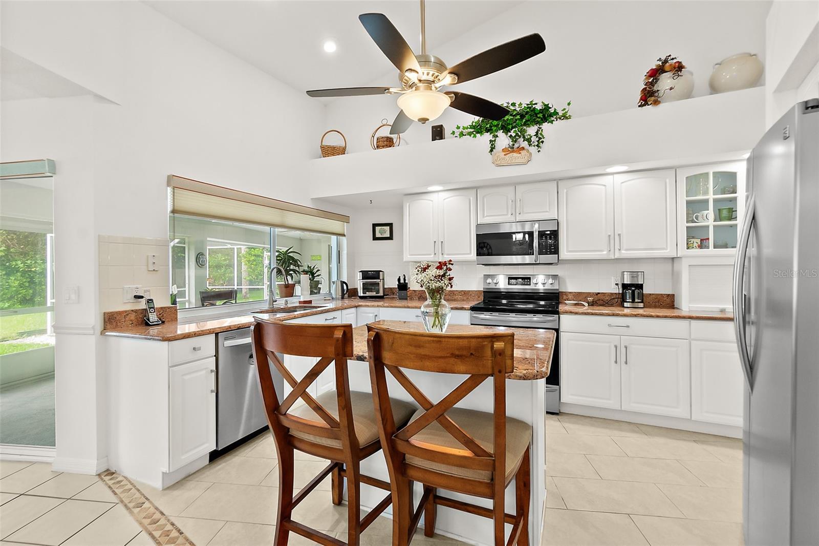 Descubra esta bela casa personalizada na comunidade altamente desejável de Pine Lakes! A poucos minutos do campo de golfe, esta casa de 3 quartos, 2 banheiros e estuque oferece mais de 2.400 pés quadrados de espaço de estar e é ideal para uma vida divertida e confortável. Esta casa pronta para uso foi mantida meticulosamente. Ao entrar, você é recebido por uma sala de estar formal e uma espaçosa sala de jantar, perfeita para reuniões. A cozinha expansiva possui uma área de comer, uma ilha central e um grande passe de vidro deslizante que leva ao Lanai. A sala da família, aberta para a cozinha, é realmente o coração da casa, com controles deslizantes que se dobram na parede, conectando os quartos vivos e familiares perfeitamente com o belo Lanai. A casa possui bancadas em granito, um backsplash de ladrilhos na cozinha e uma garagem exclusiva da cozinha para armazenar discretamente utensílios como liquidificadores e panelas de barro, mantendo as bancadas sem desordem. Um gabinete de lixo e reciclagem aumenta a conveniência. O piso de ladrilhos atualizado na entrada, corredor e cozinha, juntamente com os elegantes detalhes de grade da cadeira, aprimoram o charme da casa. A suíte primária possui uma sala de estar adjacente e seu banheiro inclui um interruptor dedicado para água quente instantânea. Um gabinete de cesto escondido acrescenta um toque prático. As atualizações recentes incluem um novo telhado e clarabóias em 2016, um novo ar condicionado em 2021, uma nova porta de garagem e abertura em 2024, além de iluminação externa atualizada. Destaques adicionais incluem um sistema completo de irrigação com um poço de águas profundas, um painel de transferência para conexão de gerador portátil, uma cozinha de verão com um fogão Jennair, um spa no solo, armazenamento do sótão, uma porta da frente de vidro, quatro babadores de mangueira externa e uma luz de rua. A garagem de 22x23 de grandes dimensões oferece amplo espaço, e o interruptor de transferência separado na garagem garante que você esteja preparado para quedas de energia. Não perca esta incrível oportunidade de possuir uma casa lindamente mantida em Pine Lakes!