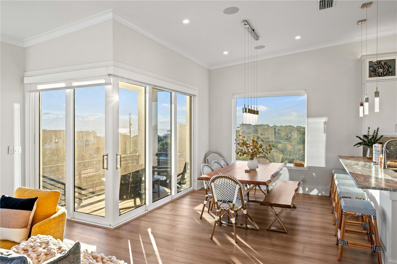 Vista para o oceano panorâmico! Bem -vindo à sua próxima casa de sonho, onde o luxo encontra vistas de tirar o fôlego do Oceano Atlântico e da Via Intracoastal! Esta localização privilegiada oferece o melhor dos dois mundos: desfrute da fachada do canal de água salgada com acesso direto aos dias intracostal e de praia com o acesso à praia do HOA a apenas 190 pés de distância. Esta impressionante residência de 3 andares, 5 quartos e 4,5 banheiros é uma maravilha do design e da funcionalidade, completa com um elevador conveniente. A casa personalizada é brilhante, arejada e meticulosamente criada com atenção a todos os detalhes. O último andar possui uma cozinha aberta, jantar e área de estar com vista para o oceano panorâmico e acesso a uma varanda perfeita para beber o café da manhã. A Airy Kitchen é o paraíso do chef, equipado com utensílios de aço inoxidável, uma fogão de vidro, um forno na parede, bancadas lindas e um backsplash de seixos. A suíte primária serve como um santuário privado, completo com uma varanda com vista para o rio e um banheiro luxuoso que inclui vaidades duplas, um chuveiro deslumbrante e uma banheira de imersão separada. Os quartos adicionais de hóspedes estão situados no segundo andar. A garagem de dois carros fornece acesso contínuo da entrada da garagem e se abre para um quintal cercado, ideal para entretenimento. Ele também possui um banheiro e cozinha conveniente equipados com pia, mini geladeira e microondas, tornando -se fácil apreciar o pátio e a banheira de hidromassagem. Esta casa oferecida totalmente mobiliada está perfeitamente posicionada para oferecer o melhor do acesso intracoastal e do estilo de vida da praia com o HOA Access ou Varn Park convenientemente, apenas na estrada. Aproveite a chance de fazer este sonho a sua casa hoje!