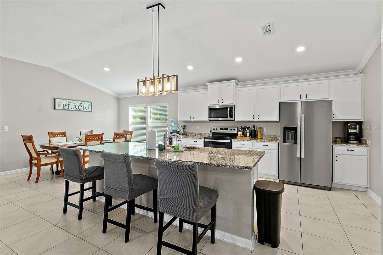 Descubra a combinação perfeita de conforto e estilo nesta deslumbrante casa de 4 quartos e 3 banheiros, com mais de 2.360 pés quadrados de área útil! Pronta para entretenimento, a enorme ilha de granito acomoda confortavelmente seis pessoas, tornando-a um fantástico ponto de encontro. Com tetos altos e design de conceito aberto, você encontrará o layout ideal para receber amigos e familiares. Lindas bancadas de granito enfeitam todas as superfícies da propriedade, enquanto elegantes sancas melhoram o ambiente nas áreas de estar. Esta casa está equipada com eletrodomésticos Whirlpool em aço inox de primeira linha na cozinha, garantindo funcionalidade e sofisticação. A ampla Sala Grande flui perfeitamente para uma generosa varanda coberta, que leva a um quintal privado cercado, completo com uma fogueira aconchegante - perfeita para noites frias. Todas as janelas vêm com persianas instaladas pelo construtor para sua conveniência. Além disso, esta residência oferece um pacote abrangente de casa inteligente, incluindo câmeras ADT e um teclado inteligente para gerenciar temperatura, segurança e funcionalidades de campainha de vídeo. Os interruptores de luz Deako conectam-se facilmente ao seu smartphone, proporcionando conveniência moderna. Além disso, desfrute de tranquilidade com uma garantia ativa para o sistema Carrier HVAC e aquecedor de água quente. Não perca esta incrível oportunidade de tornar esta casa sua, esta tem um preço justo!