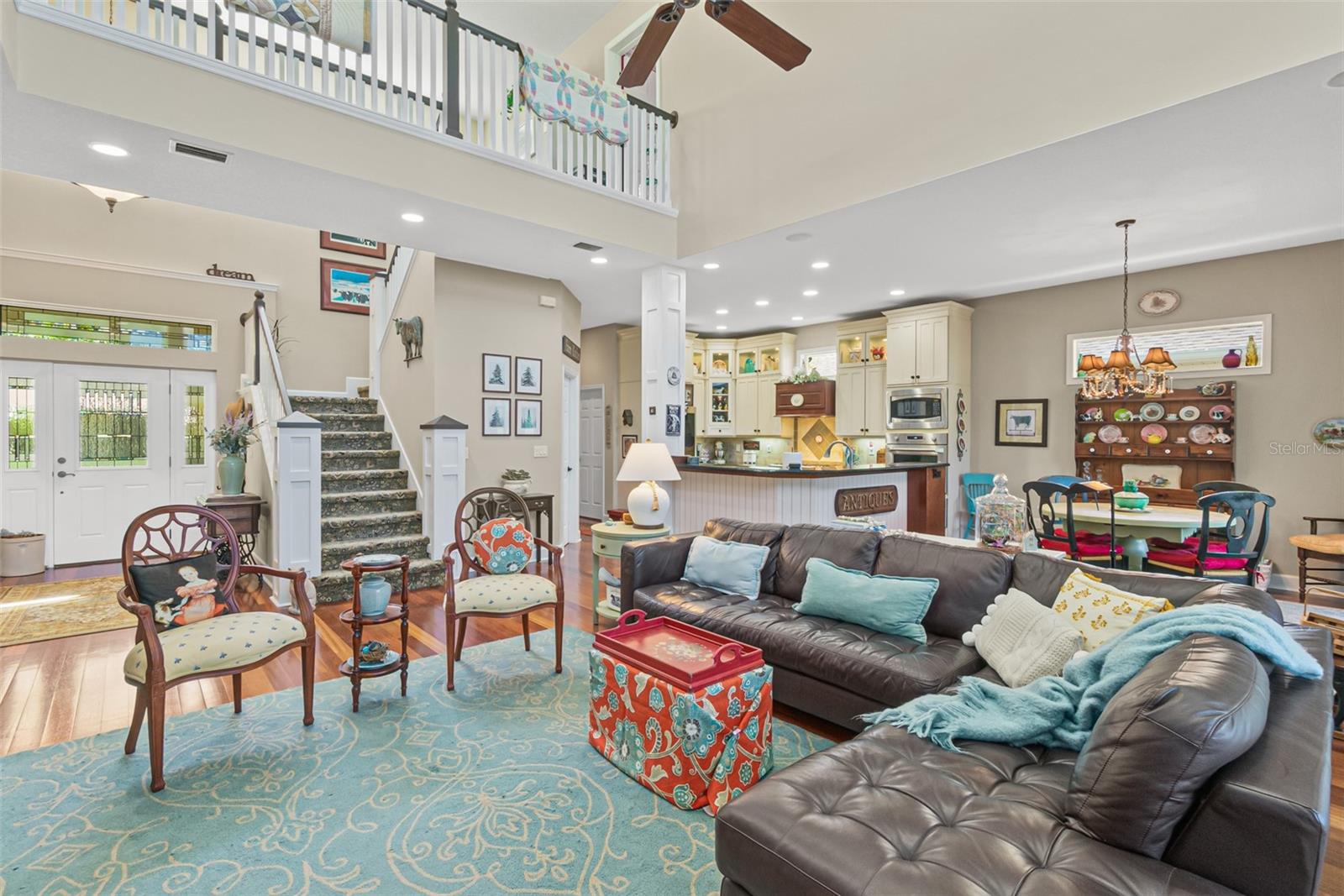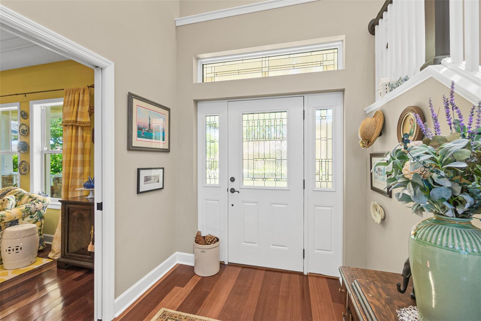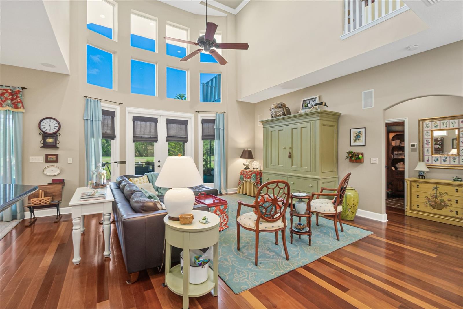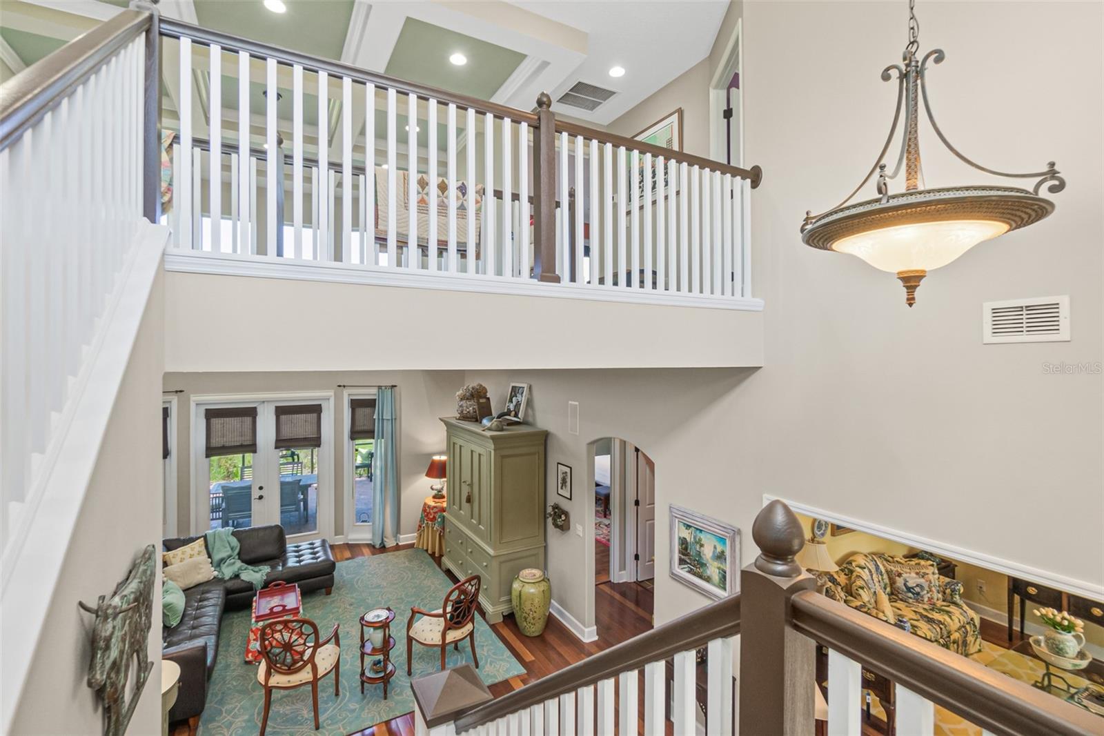 Charmosa casa de artesão com jardim inglês com vista para o buraco 17 em Grand Haven. Ao se aproximar de sua nova casa, você vai querer sentar na varanda da frente e apreciar o belo paisagismo. Você vai adorar os pisos de cerejeira brasileira ao entrar. A sala de estar/arrumos possui portas de correr para maior privacidade. A sala familiar possui tetos em caixotões com grandes janelas de popa que proporcionam muita luz natural. Todo mundo adora jantares casuais e qualquer chef vai gostar de cozinhar no fogão a gás, usando o forno de aquecimento, a pia da fazenda e a grande despensa com prateleiras de madeira. Sua suíte master fica no 1º andar, com tetos iluminados, grande janela com venezianas e portas francesas para sua varanda. O banheiro privativo tem pias duplas, balcão de maquiagem, chuveiro com efeito de chuva e spray corporal. Você também tem um grande closet. No andar de cima, o 2º quarto tem amplo armário e janelas com venezianas. Os 2 quartos compartilham um banheiro com banheira de hidromassagem e chuveiro amplo. Seu terceiro quarto mede 17 x 14 e tem portas francesas para sua varanda coberta, que tem uma vista fabulosa do 17º buraco. Uma sala de bônus é perfeita para uma sala de artesanato. Portas de vidro deslizantes saem da sua sala de jantar para uma varanda coberta estendida com uma cozinha de verão. Muito espaço para refeições ao ar livre, relaxar e observar jogadores de golfe. O telhado tem 2 anos. AVAC é 2019, tanque de água, 2015. Casa tem aspiração central, armário e prateleiras na garagem. Grand Haven está situado em 1.400 acres de redes de carvalho imaculadas, tem um campo de golfe exclusivo de Jack Nicklaus, club house, piscina, quadras de tênis, pickleball e croquet. Além de muitas calçadas e trilhas. A sua casa de sonho está à sua espera!