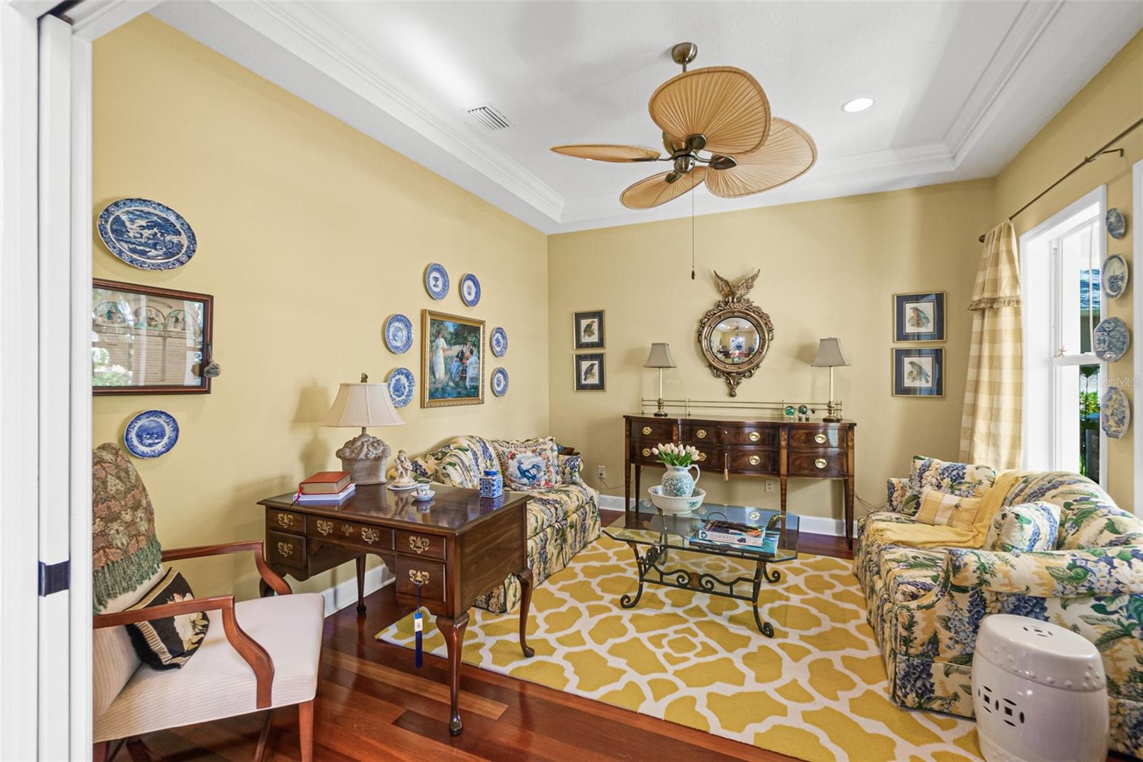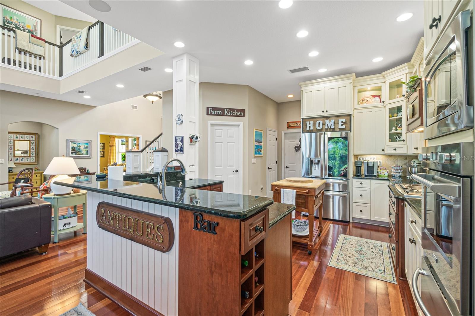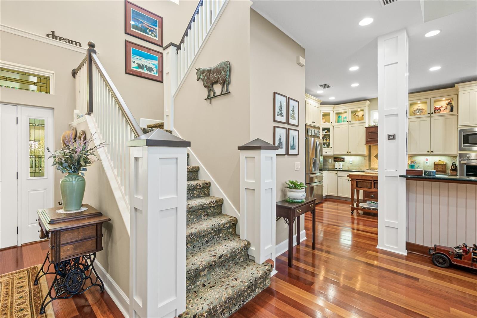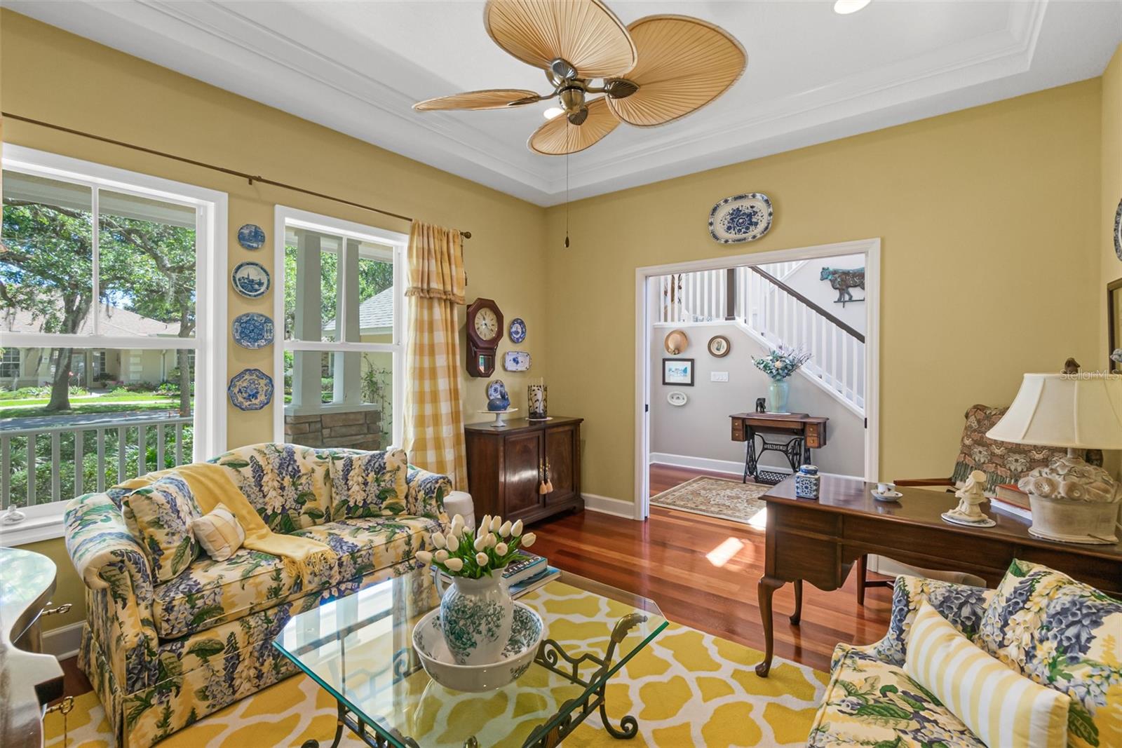 Charmosa casa de artesão com jardim inglês com vista para o buraco 17 em Grand Haven. Ao se aproximar de sua nova casa, você vai querer sentar na varanda da frente e apreciar o belo paisagismo. Você vai adorar os pisos de cerejeira brasileira ao entrar. A sala de estar/arrumos possui portas de correr para maior privacidade. A sala familiar possui tetos em caixotões com grandes janelas de popa que proporcionam muita luz natural. Todo mundo adora jantares casuais e qualquer chef vai gostar de cozinhar no fogão a gás, usando o forno de aquecimento, a pia da fazenda e a grande despensa com prateleiras de madeira. Sua suíte master fica no 1º andar, com tetos iluminados, grande janela com venezianas e portas francesas para sua varanda. O banheiro privativo tem pias duplas, balcão de maquiagem, chuveiro com efeito de chuva e spray corporal. Você também tem um grande closet. No andar de cima, o 2º quarto tem amplo armário e janelas com venezianas. Os 2 quartos compartilham um banheiro com banheira de hidromassagem e chuveiro amplo. Seu terceiro quarto mede 17 x 14 e tem portas francesas para sua varanda coberta, que tem uma vista fabulosa do 17º buraco. Uma sala de bônus é perfeita para uma sala de artesanato. Portas de vidro deslizantes saem da sua sala de jantar para uma varanda coberta estendida com uma cozinha de verão. Muito espaço para refeições ao ar livre, relaxar e observar jogadores de golfe. O telhado tem 2 anos. AVAC é 2019, tanque de água, 2015. Casa tem aspiração central, armário e prateleiras na garagem. Grand Haven está situado em 1.400 acres de redes de carvalho imaculadas, tem um campo de golfe exclusivo de Jack Nicklaus, club house, piscina, quadras de tênis, pickleball e croquet. Além de muitas calçadas e trilhas. A sua casa de sonho está à sua espera!