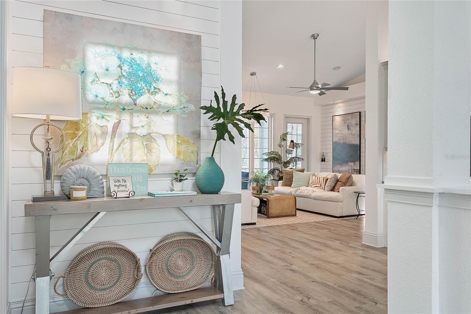 Esta elegante casa costeira de 5 quartos e 3,5 banheiros foi construída em 2017 em um terreno de meio acre com vista direta para Longs Creek Saltwater Marsh. Abrangendo 2.865 pés quadrados, o layout foi projetado para residências multigeracionais, trabalho remoto ou hospedagem sazonal. As alas dos quartos privativos cercam uma grande sala central e uma cozinha do chef, com três áreas de jantar e amplo espaço comum fluindo para a varanda com piscina, spa, área para churrasco e terraços com vista para o pântano. Oferecido como uma residência totalmente equipada e pronta para uso, o The Blue Heron inclui automação residencial inteligente, proteção contra furacões, acabamentos luxuosos e comodidades externas selecionadas para ocupação imediata. Seja em mudança ou em busca de uma segunda casa perto das praias da Flórida, esta propriedade oferece conforto, privacidade e vida costeira moderna. Principais recursos: - Áreas de estar elegantes: tetos de 10 pés, venezianas personalizadas, Great Room de conceito aberto. - Cozinha Gourmet: Armários em madeira nobre, Tru-Cabinetry com iluminação LED, ampla despensa, ilha central. - Quartos luxuosos: suíte principal ampla com closet e enorme banheira tipo spa, segunda suíte master/sogro com acesso à varanda, quartos Jack-and-Jill - Acabamentos de alta qualidade: piso vinílico de tábuas luxuosas, chuveiros do teto ao teto, lareira elétrica pré-instalada para gás - Espaços Funcionais: 5º quarto bônus para escritório ou artesanato, tela furacão motorizada para refeições ao ar livre - Oásis ao ar livre: spa de água salgada com aquecimento a gás, piscina, paisagismo tropical, iluminação paisagística com fio - Inteligente e seguro: automação residencial inteligente, sistema de segurança próprio, cortina contra furacões - Estacionamento e arrecadação: entrada extra larga, garagem para 2 carros com HVAC suspenso, encanamento de varanda pronto para cozinha externa EV Ready: ponto de alimentação RV adaptável para carregamento de veículos elétricos