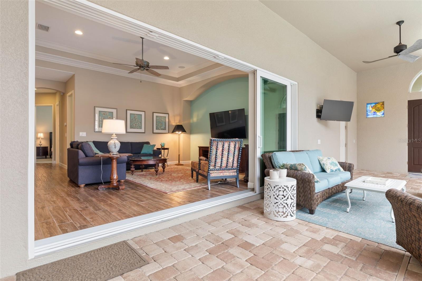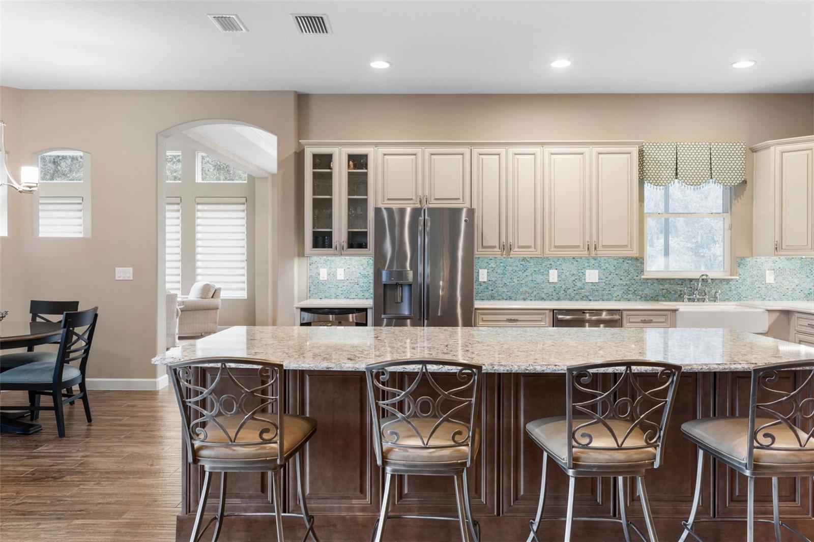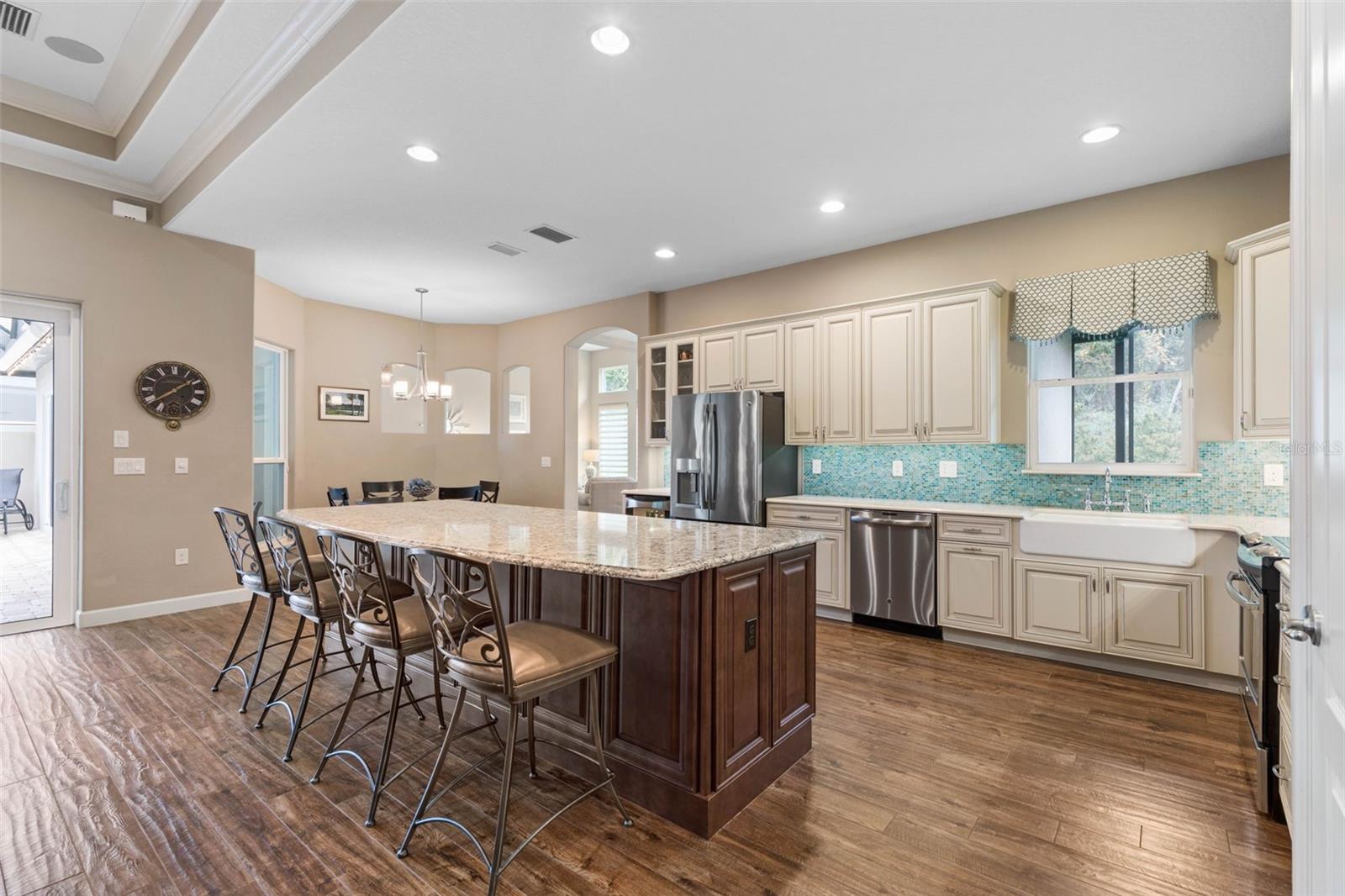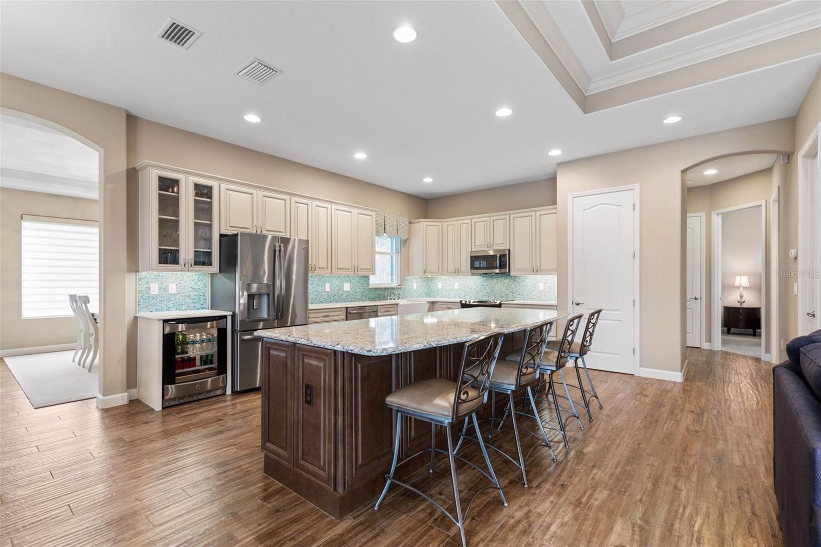** Novo preço-20k reduzido ** A elegância é abundante nesta impressionante casa de 4 quartos, de 4 quartos, 3 de 1/2 banheiros, localizada na comunidade fechada e fechada de Toscana. Esta ex-modelo premiada personalizada, com uma planta baixa e aberta, com um piso de piso espaçoso e aberto, com um golpe exclusivo de 3 pés na cozinha, sala de estar e garagem, proporcionando espaço extra para conforto e conveniência. Ao entrar, você notará imediatamente o piso de ladrilhos de porcelana atualizado por toda parte, com exceção de dois quartos, que oferecem carpetes aconchegantes. A cozinha inspirada no chef possui armários de 42 polegadas, uma ilha totalmente com painéis de 10 pés, bancadas de quartzo, uma pia da fazenda Kohler e uma torneira de ponte. Aparelhos SS de perfil da GE, incluindo uma geladeira de vinho/bebida, complete a cozinha para o melhor estilo e função. A família e as salas de jantar são aprimoradas por tetos de bandeja e moldagem por coroa, acrescentando um toque elegante. A casa possui persianas personalizadas de Hunter Douglas por toda parte, com controle motorizado no quarto e no banheiro primário. Saia para o seu oásis particular, onde uma piscina de resort e spa aguardam. A piscina foi recentemente ressurgida em outubro de 2024, garantindo beleza e funcionalidade duradouras. A casa também possui iluminação de designers na sala de jantar, corredor e quarto primário, juntamente com bancadas em granito no banheiro primário e na coroa moldagem na suíte master. Para entretenimento, o sistema de som surround Marantz é instalado na sala da família e na piscina, criando o ambiente perfeito para noites de cinema ou hospedando convidados. Uma casa de piscina separada, ou "Casita", transmite com uma cama de Murphy embutida do tamanho queen-size, oferecendo persianas adicionais que adornam persianas de plantações. A casa também inclui uma lavanderia completa com uma lavadora e secadora, além de um lanai traseiro exibido com vistas da bela e privada reserva, fornecendo um retiro pacífico para o café da manhã ou uma noite de tranquilidade. A garagem de tamanho grande (24x23), o piso revestido e as escadas puxadas oferecem praticidade e conveniência. Garantia de 1 ano em casa fornecida no fechamento. Aninhado em um estacionamento tranquilo com tráfego mínimo, essa propriedade também oferece um sistema de alarme para maior tranquilidade. Não perca esta casa requintada que combina luxo e conforto com a conveniência de praias, restaurantes e lojas em poucos minutos! Não espere, agende sua exibição particular hoje!