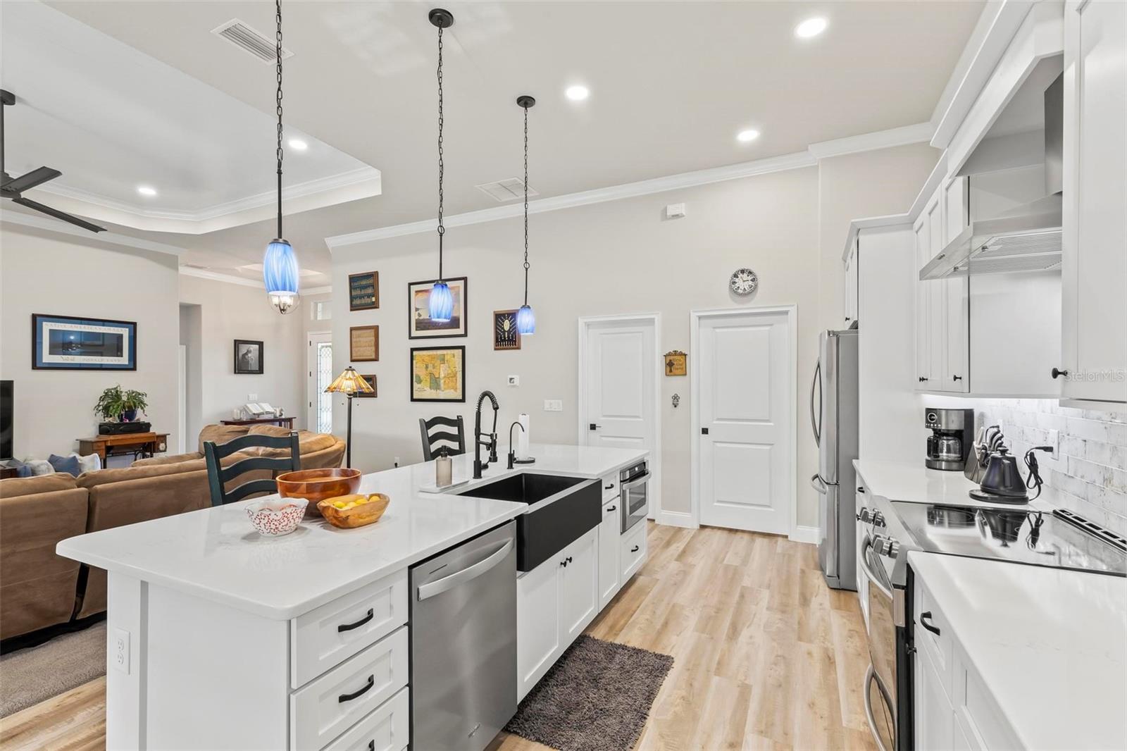 Bem-vindo à casa dos seus sonhos no charmoso bairro de Pine Lakes, em Palm Coast! A apenas 20 minutos das belas margens de Flagler Beach, esta casa de 2022 construída sob medida pela PCB do Norte da Flórida oferece luxo moderno e design atencioso. A planta aberta é perfeita para entretenimento, com três portas de vidro deslizantes que se abrem perfeitamente para a piscina de água salgada aquecida e protegida e o spa acima do solo, criando a melhor experiência de vida interna e externa. No interior, nenhum detalhe foi esquecido, desde a elegante sanca até o luxuoso piso de pranchas de vinil e o carpete luxuoso atualizado. A cozinha é uma delícia para o chef, com bancadas de granito, muito espaço nos armários e um layout que facilita muito a preparação das refeições. Retire-se para o espaçoso quarto principal, completo com um amplo closet e banheiro privativo com banheira de imersão - seu santuário pessoal semelhante a um spa. Os proprietários adicionaram atualizações cuidadosas, incluindo gerador comutado automático para toda a casa, amaciante de água para toda a casa, filtragem de água por osmose no ponto de entrega, ventiladores de teto, cercas, galpão, irrigação bem distribuída, paisagismo profissional e venezianas por toda parte. Esta casa deslumbrante combina elegância moderna com conforto, tudo situado num bairro tranquilo. Não perca esta oportunidade de possuir um imóvel verdadeiramente excepcional!