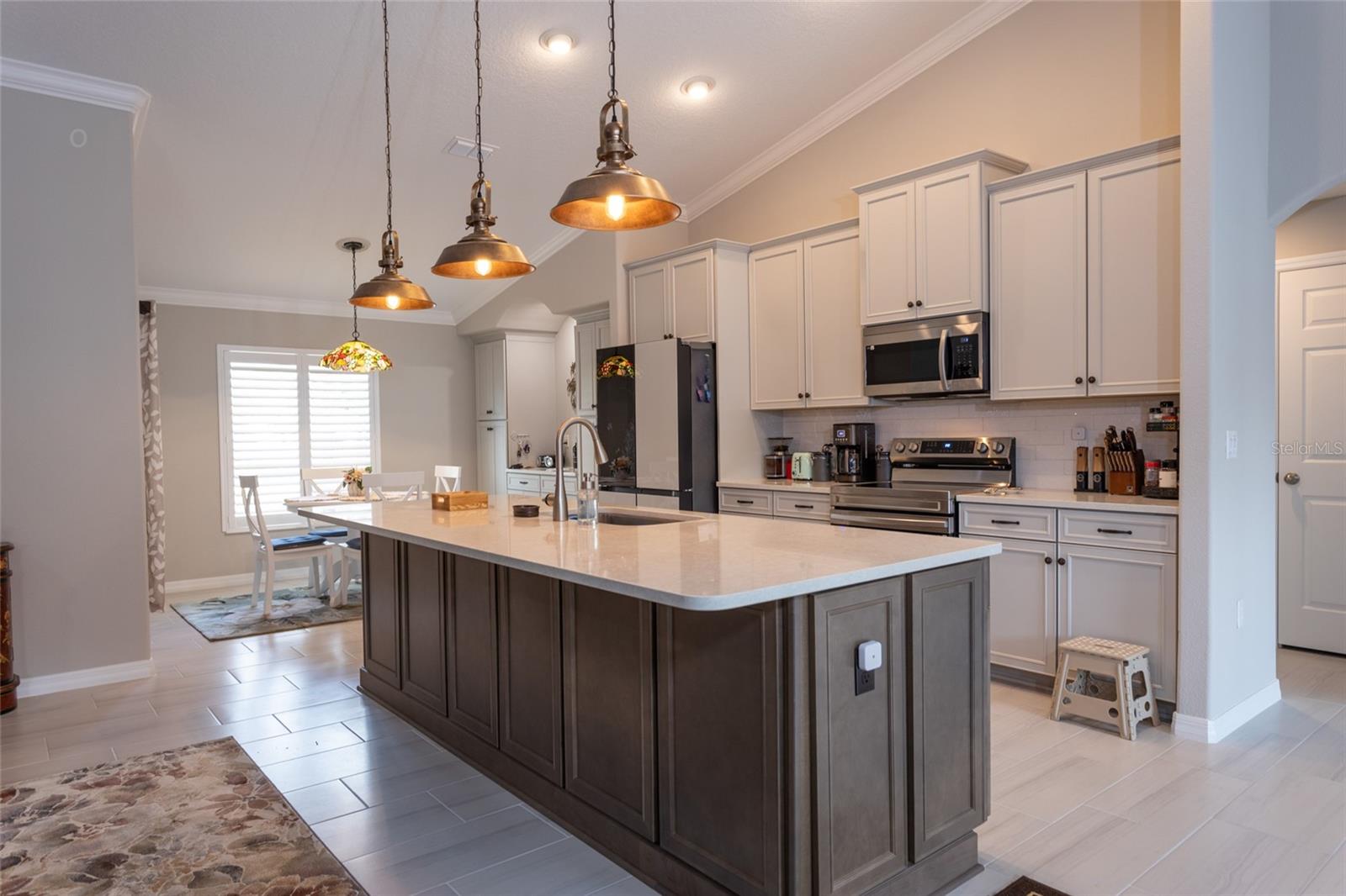 Ao entrar neste Willow 2024 Seagate, localizado na área desejável de Palm Harbor, em Palm Coast, é recebido por uma espaçosa piso plano aberto com elegantes entradas arqueadas, molduras de coroas em toda a principal áreas de estar e ladrilhos de madeira cerâmica sem costura que fluem para a sala versátil. Para o entusiasta da culinária, a cozinha é uma verdadeira obra -prima - que bate -as de quartzo, iluminação pendente que lança um brilho suave sobre o bar da ilha, um designer backsplash e aparelhos de samsung de aço inoxidável. Antenta de hardware elegante e armários de 42 "com moldagem por coroa se estendem ao café adjacente, combinando perfeitamente a funcionalidade com elegância. A suíte do proprietário particular é um santuário de luxo, completo com um detalhe de teto embutido, dois armários de grandes dimensões para armazenamento amplo, uma vaidade de pia dupla para maior conveniência e um chuveiro de tamanho generoso com um piso de textura de seixos para uma experiência suave e semelhante a spa. Saia através das portas de vidro deslizantes expandidas para o Lanai, onde uma tela retrátil motorizada oferece o equilíbrio perfeito de conforto e abertura - mantendo os insetos enquanto bloqueia os raios UV. O quintal está equipado com um sistema de irrigação. Seu quintal parece um retiro sereno ao ar livre.