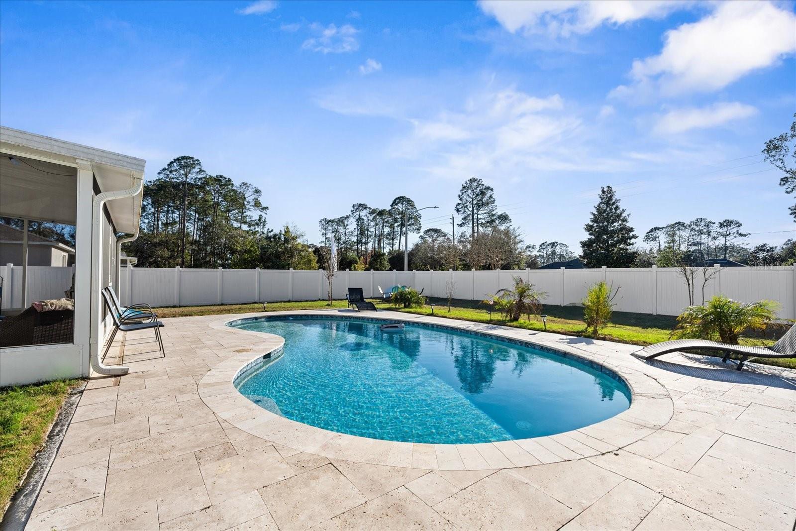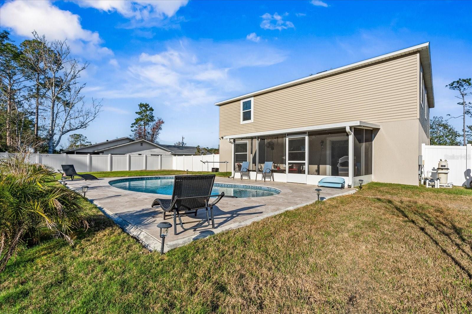 Pool de construção mais recente em casa em um lote de grandes dimensões com atualizações em abundância! Esta casa de 2 andares foi construída em 2022, tem 2700 pés quadrados de espaço de estar com 4 BR, 2,5 banheiros e está apenas esperando sua família! O rastreado no pátio leva ao enorme oásis do quintal que inclui uma piscina de água salgada construída em 2023, uma cerca de privacidade de vinil e um deck da piscina de travertino para reuniões de família e entretenimento. A cozinha inclui bancadas em granito, utensílios de aço inoxidável e grande ilha central. No térreo possui um grande escritório ou sala flexível com portas francesas. O andar de cima possui lavanderia para facilitar o acesso, bem como uma grande área de loft para uso como sala de família, sala de jogos, etc. Todos os banheiros incluem granito e azulejo. Esta casa tem ladrilhos no andar de baixo e carpete no andar de cima. A casa está localizada no centro de Palm Coast, perto de fazer compras, jantar, biblioteca e hospital. 5 milhas da praia e apenas 30 minutos para St. Augustine e Daytona.