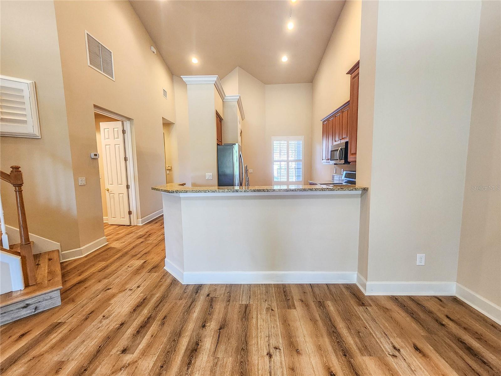 Townhoue de Grand Haven, pronto para você! 2 quartos, 2 1/2 banho com escritório e espaço de loft foi recentemente pintado com novas bancadas de cozinha de granito e novos pisos de tábuas de vinil de luxo. Aproveite os tetos altos que complementam um conceito de piso aberto com acesso direto ao seu lanai selecionado. No andar de cima é um quarto privado e um segundo banheiro, com um espaço criativo para hobbies ou a segunda sala de estar que tem acesso à sua varanda do segundo andar. Esta propriedade está a uma curta distância do campo de golfe Jack Nicklaus, o Clubhouse, o Village Center com um café e munidades adicionais.