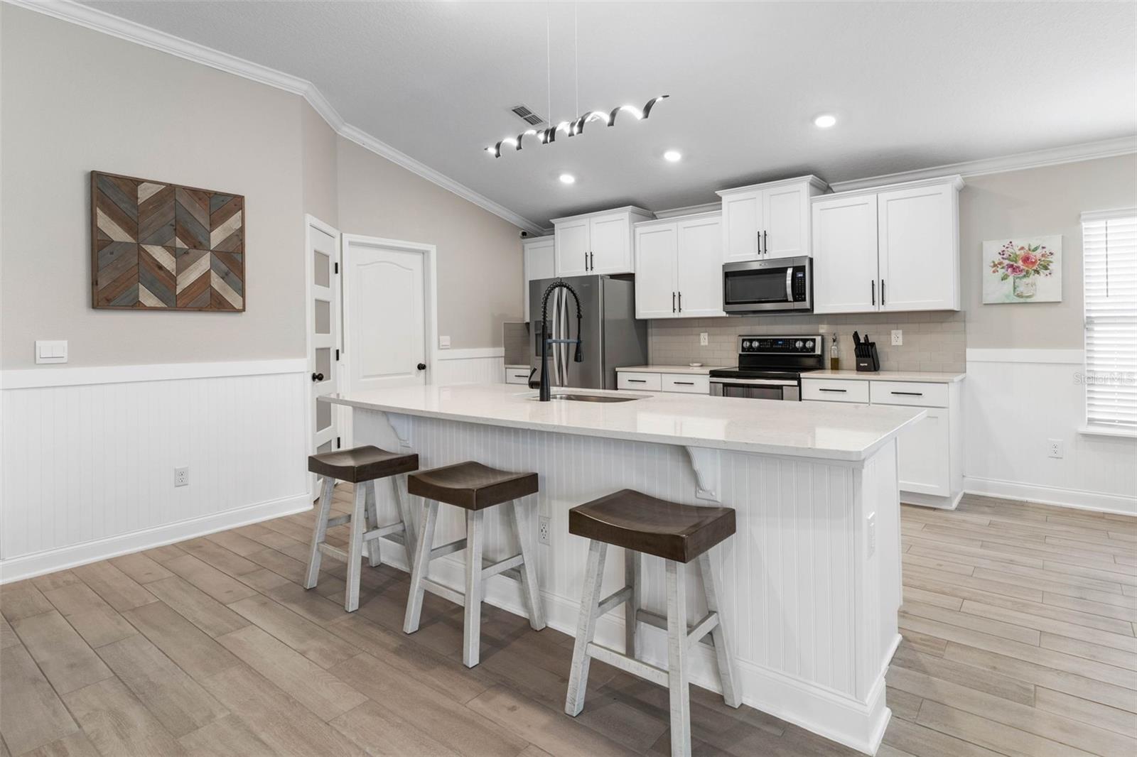 Esta impressionante casa construída em 2023 em um pacífico beco sem saída oferece luxo, privacidade e inúmeras atualizações por toda parte. Situado em um lote espaçoso, apoiando -se em uma área de conservação serena, desfrute de vistas tranquilas da água, sem vizinhos traseiros. No interior, o design de conceito aberto é ideal para a vida moderna, com elegantes pisos de ladrilhos, iluminação LED atualizada e uma cozinha gourmet com bancadas de quartzo, armários personalizados e uma despensa. Este raro layout de 4 camas e 3 banheiros inclui armários personalizados, luminárias elegantes, ventiladores de teto com controles remotos e banheiros atualizados com bidês e barragens curvas. Uma porta elegante do celeiro acrescenta privacidade à suíte de convidados. A garagem de três carros de grandes dimensões está totalmente equipada com uma unidade de A/C de 11k BTU, bancada, prateleiras e soluções de armazenamento inteligente. Saia de um quintal totalmente cercado com um pátio, barril de chuva, bloco de chuva, e um galpão de magra personalizado. A casa também possui um amaciador de água e sistema de purificação de toda a casa, atualizações de casa inteligentes, câmeras de fiação CAT 6, câmeras de segurança e aspersores de alto impacto. Perto da I-95, lojas, parques, golfe, Flagler Beach e Santo Agostinho, com um centro de amenidade no estilo resort em 2025-observando um centro de fitness, piscina, quadras de pickleball e muito mais. Peça a lista completa de atualização-esta casa está pronta é o seu próximo capítulo perfeito!