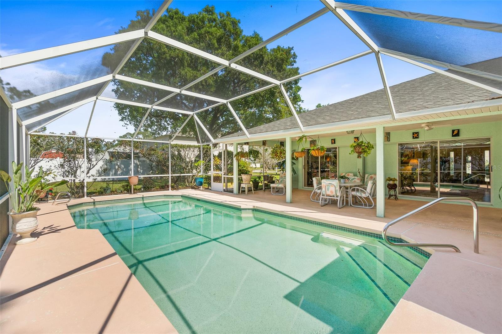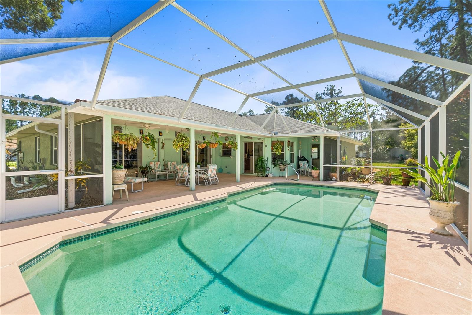 Piscina para casa em quase meio hectare! Com 2.592 pés sob ar, laminado de madeira e piso de telha- sem carpete! Exterior do bloco de cimento/estuque, as salas são generosamente de tamanho. Quarto da família com controles deslizantes de vidro para a piscina e Lanai além; A sala de estar formal tem controles deslizantes de vidro que levam à piscina e uma grande sala de jantar para reuniões com familiares e amigos. A cozinha aberta possui balcões de granito e bar de café da manhã, armários de madeira, eletrodomésticos em aço inoxidável transmitem. A sala de café da manhã adjacente tem vista para a Lanai. O quarto principal possui um closet, banheiro em suíte com pias duplas e balcão de maquiagem, banheira de jardim e chuveiro. O terceiro quarto com meio banho oferece aos hóspedes sua privacidade. "Country Living" com a conveniência da vida da cidade, com os escritórios de compras e médicos por perto. Vendido como está. Telhado e hvac -2024. As medições são aproximadas. Exibições com hora marcada!