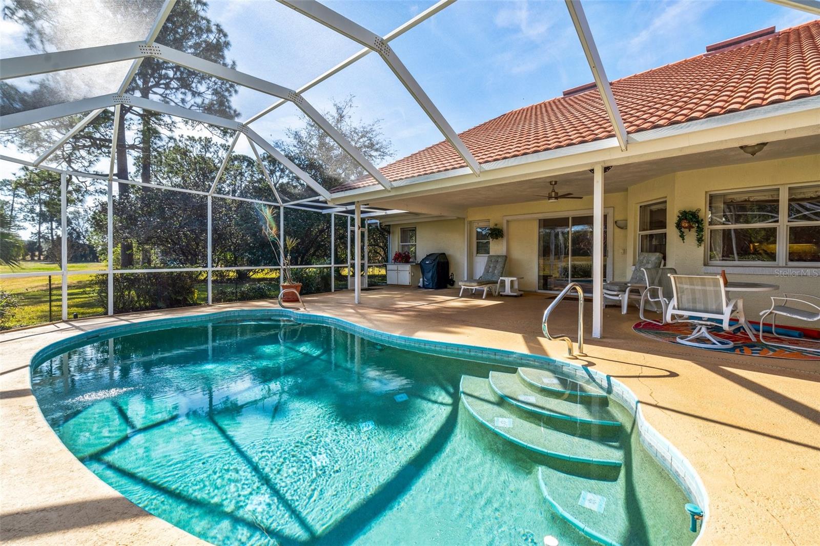 Bem-vindo a esta impressionante casa de 4 quartos e três banheiros, com vistas de campos de golfe de tirar o fôlego, localizados no altamente procurado Sutton Place Enclave, dentro da subdivisão de Pine Lakes. Esta casa oferece a mistura perfeita de luxo e conveniência. Saia e aproveite a bela Lanai exibida, com uma piscina brilhante com uma nova bomba, ideal para relaxar ou divertir enquanto apreciava as vistas serenas do campo de golfe. Um dos banheiros fornece acesso direto à piscina, aumentando a conveniência da vida ao ar livre. A casa possui um teto de ladrilhos que foi completamente limpo, inspecionado e certificado pela tranqüilidade. Localizado a poucos minutos do novo hospital, escolas e compras, esta casa oferece privacidade e proximidade a comodidades essenciais. Não perca a chance de possuir esta propriedade excepcional - agende sua exibição hoje!