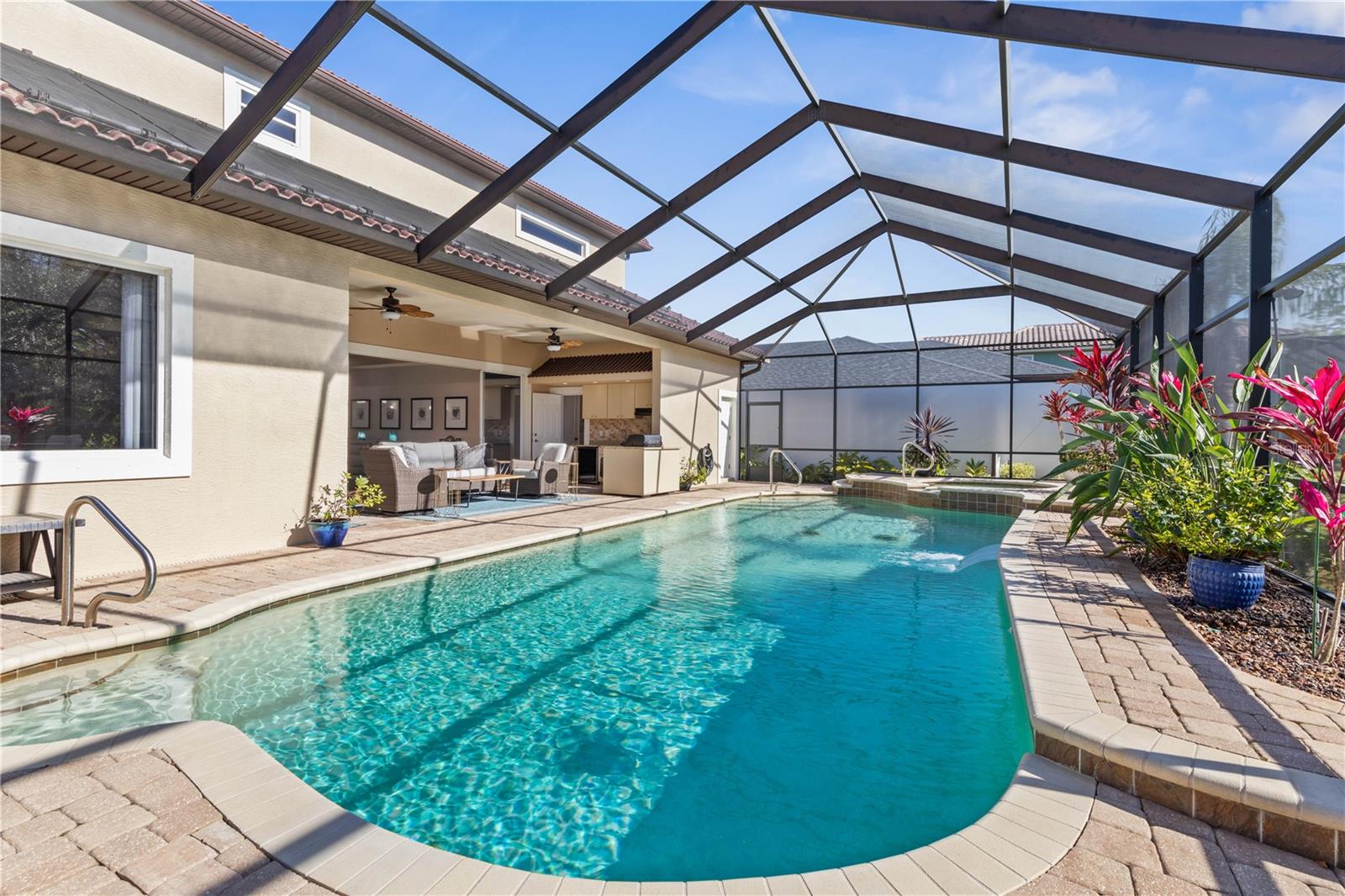Experimente a vida luxuosa nesta impressionante casa de Home Mediterrâneo inspirada no Mediterrâneo, sentado alto e seco em um estacionamento espaçoso de terceiro hectare, com belas vistas da área de conservação no cobiçado condomínio fechado da Palm Coast Plantation. Com uma grande entrada com tetos de 6 metros no hall de entrada, esta residência oferece uma mistura perfeita de elegância e conforto. Com 4 quartos, 3,5 banheiros, um escritório e uma piscina/spa de água salgada aquecida, todos os aspectos desta casa foram meticulosamente projetados para atender às suas necessidades. O primeiro andar possui detalhes arquitetônicos requintados, incluindo tetos de bandeja e moldagem por coroa. Possui um quarto privado com um banheiro anexado que funciona convenientemente como um banho de bilhar, uma área de jantar formal e uma sala de família com controles deslizantes de bolso de 12 pés que levam à área da piscina. A cozinha gourmet é um paraíso culinário, equipado com bancadas em granito, um backsplash de azulejos, novos utensílios de aço inoxidável, incluindo um cooktop de indução, uma grande ilha central e um bar molhado completo, tornando -o um espaço ideal para entretenimento. No andar de cima, uma escada personalizada leva a um loft bônus e uma luxuosa suíte primária com banho de travertino, vaidades de mármore duplo, um chuveiro personalizado com várias cabeças, uma banheira de imersão a jato e armários duplos com estantes de madeira personalizadas. Dois quartos de hóspedes de tamanho generoso adicionais, com armários que compartilham um banheiro de Jack e Jill com vaidades separadas para maior conveniência. Do lado de fora, o oásis externo meticulosamente paisagístico apresenta lindas pavimentadoras, uma cozinha de verão e um grande spa e piscina solar e aquecido por propano com uma cachoeira suave. Os recursos adicionais incluem uma espaçosa garagem de dois carros com portas isoladas e piso de ladrilhos, perfeito para um carrinho de golfe, ferramentas, brinquedos ou uma academia em casa. O sótão com piso de madeira compensado fornece espaço de armazenamento adicional. The interior and exterior have been recently painted, and the home is equipped with a 14 kW whole house generator installed in 2021, imported glazed tile roof for durability and maintenance free living, new pool pumps, new salt cell, new spa blower, pool enclosure just reconditioned, painted and has privacy screens, new tall and elongated toilets, paver driveway and walkways and beautiful landscaping with irrigation on an artesian well, Sistema de segurança, portas de núcleo sólido, persianas de furacões, duas unidades mais recentes e CA (2022) e dois aquecedores de água (2021 e 2019). Aprecie as comodidades desta comunidade procurada, incluindo tênis, pickleball, basquete, centro de fitness, clube, trilhas para ciclismo e caminhada, um píer de pesca e armazenamento de trailers e trailers. A apenas oito quilômetros da praia, compras, restaurantes, instalações médicas e locais de culto, esta é uma oportunidade de adotar um estilo de vida de luxo e conveniência. Certifique -se de olhar para a turnê virtual, que é um vídeo de passo a passo e, em seguida, agende uma exibição hoje!