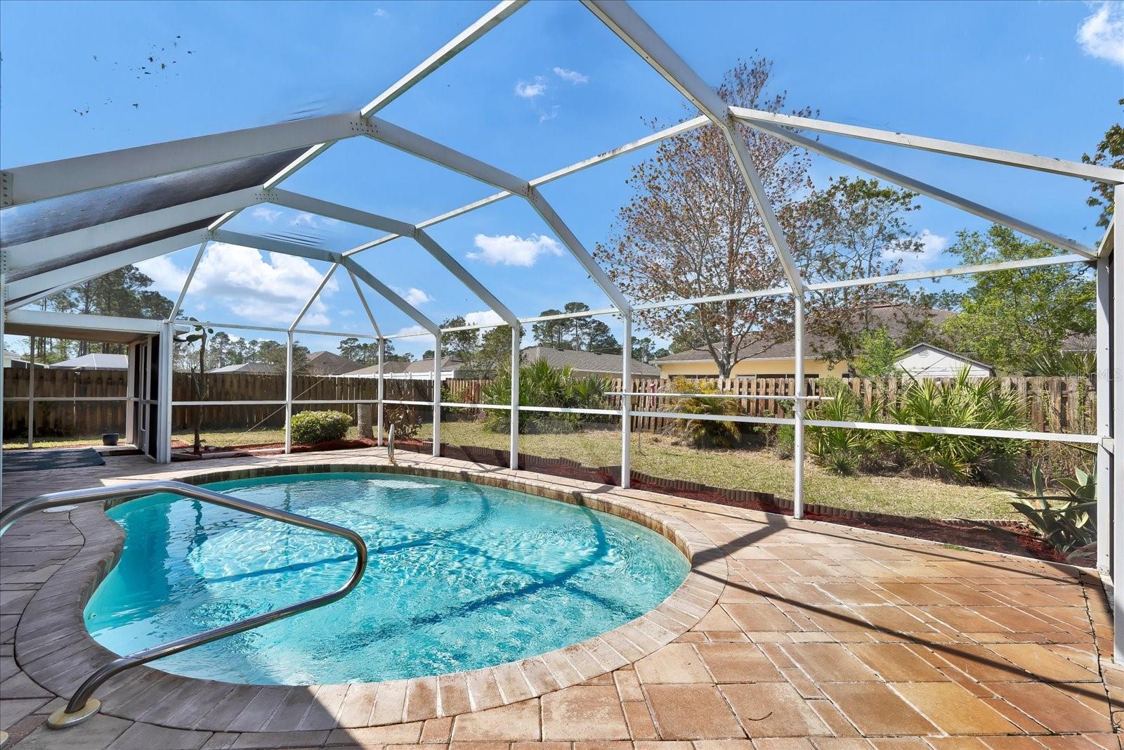 Sua casa de sonho aguarda! Aninhado em uma rua tranquila, mas a poucos minutos das compras, refeições e escolas de melhor classificação, esta impressionante casa de 4 quartos e 2 banheiros oferece a mistura perfeita de tranquilidade e conveniência. Além disso, você está a apenas 11 quilômetros das margens douradas de Flagler Beach! Entre e se apaixone pelo espaçoso design de conceito aberto. A bela cozinha possui uma enorme ilha de granito, perfeita para preparação de refeições, refeições casuais e divertido. Ele flui perfeitamente para a sala de família convidativa, onde a luz natural entra, levando você diretamente ao seu oásis de quintal particular. Voltar, sua piscina espumante aguarda-agora com aquecimento solar instalado em 2022, permitindo diversão durante todo o ano! A planta baixa garante a máxima privacidade, com uma generosa suíte de proprietário com vista para a piscina. Este retiro apresenta um luxuoso banho de suíte com vaidades duplas e armários duplos! Os três quartos adicionais estão escondidos, oferecendo muito espaço para a família, os hóspedes ou um escritório em casa. As atualizações recentes incluem: Novo telhado (2021), aquecimento da piscina solar (2022) para estação de natação prolongada, lavadora de louça nova (2024), nova bomba de piscina e unidade de filtro (2024), nova lavadora (2025), novo aquecedor de água (2025) Com todas essas atualizações e uma localização privilegiada, esta casa está realmente pronta. Não perca - Escoque sua exibição hoje!