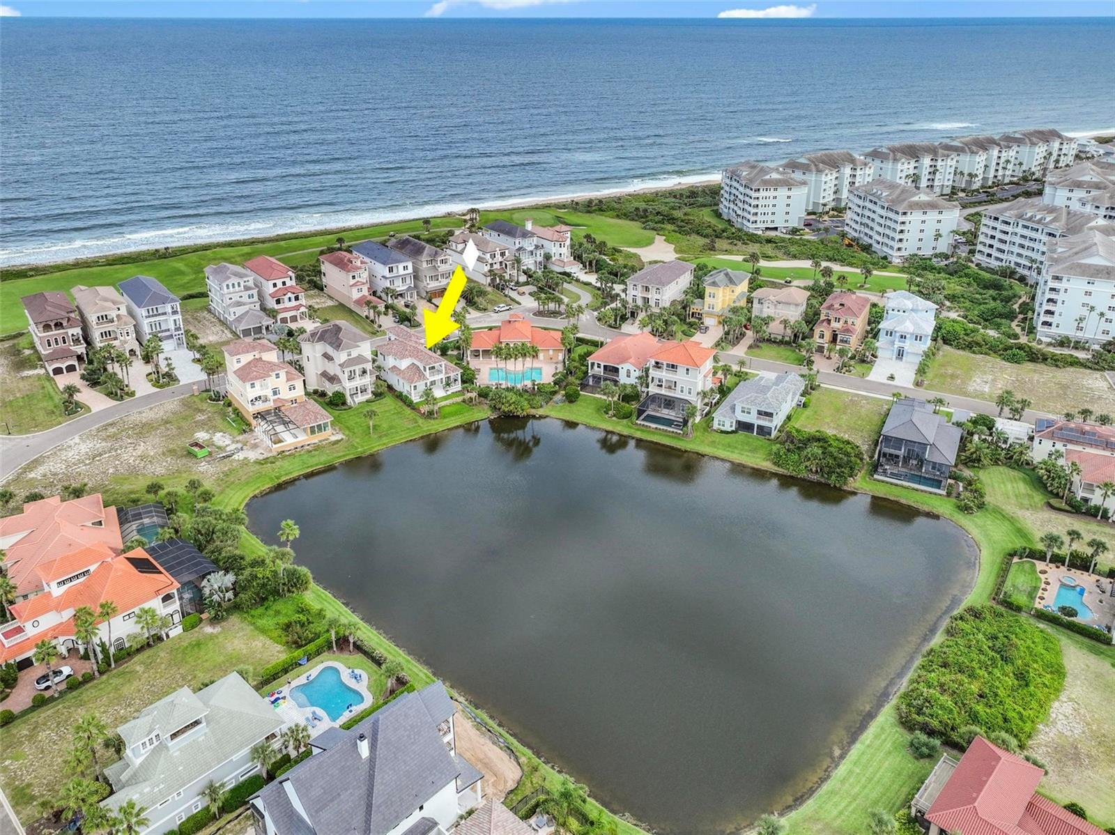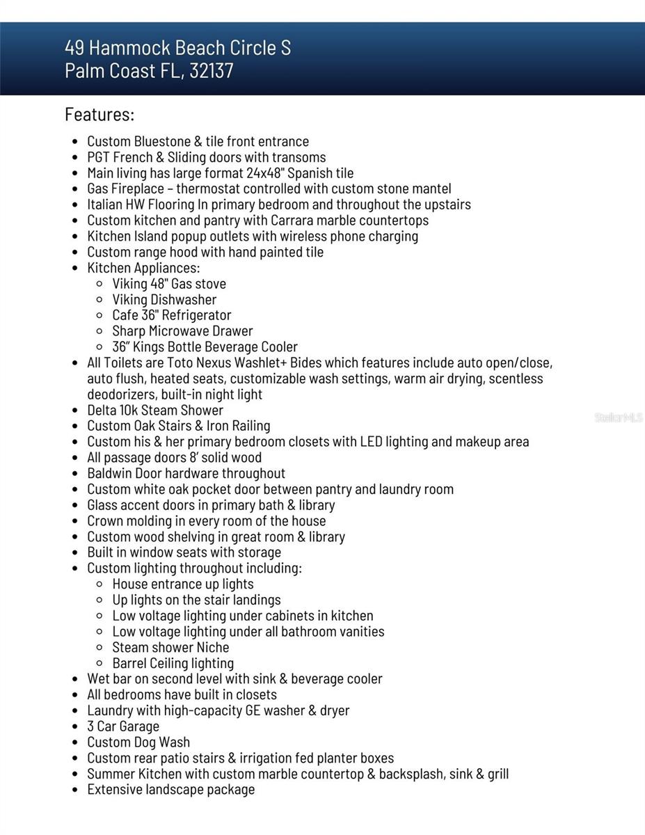 Delicie-se com uma sofisticação incomparável com esta magnífica obra-prima da Blue Water, situada na prestigiada comunidade Ocean Hammock. Cada elemento desta casa recém-construída foi cuidadosamente selecionado para combinar perfeitamente a elegância atemporal com a funcionalidade moderna, oferecendo uma experiência de vida excepcional como nenhuma outra. Esta excepcional casa de 4 quartos, 4,5 banheiros e garagem para 3 carros está localizada em frente ao acesso à praia. Dê um curto passeio até à praia e desfrute de um mergulho refrescante na piscina fresca. No coração da casa, a cozinha personalizada apresenta azulejos pintados à mão, bancadas de mármore, um fogão a gás Viking de 48", uma conveniente gaveta para micro-ondas e iluminação de baixa tensão sob os armários para um ambiente acolhedor e moderno. A área de estar principal possui impressionantes azulejos de 24x48" importados da Espanha, adicionando um toque de sofisticação europeia. A planta aberta do primeiro living é ideal para o dia a dia ou para receber sua família e amigos. Além disso, convenientemente no primeiro nível possui a suíte principal com dois closets. O piso de madeira italiana enfeita a suíte principal e o andar de cima, complementando os detalhes em mármore que fluem por toda a casa. Entre no banheiro tipo spa, completo com toaletes Toto Nexus (todos os banheiros possuem toaletes Toto Nexus automatizados), chuveiro a vapor e cuidadosamente colocado sob armários de iluminação. A moldagem personalizada adiciona um ar de requinte a toda a casa, enquanto a escada e o corrimão de madeira personalizados criam um grande ponto focal. Projetada para oferecer facilidade e organização, a casa possui armários embutidos personalizados em todos os quartos e até mesmo uma estação de lavagem de cães dedicada para seus companheiros peludos na sala de lama. No piso superior destacam-se os restantes quartos com casa de banho privativa, sendo um deles uma opção perfeita para escritório ou 4º quarto com varanda virada a Nascente ideal para sentir a brisa do oceano enquanto o sol nasce. A vida ao ar livre é igualmente impressionante, com escadas personalizadas no pátio traseiro e vasos que combinam estilo e praticidade. Do pátio dos fundos e da varanda, você poderá apreciar as deslumbrantes vistas do pôr do sol enquanto admira o lago. Esta casa é verdadeiramente uma obra-prima de artesanato, oferecendo uma mistura perfeita de luxo e conforto em cada canto. É mais do que uma casa – é uma experiência esperando por você. Viver no Hammock Beach Circle é composto por um portão comunitário vigiado, piscina comunitária e acesso à praia, e manutenção do gramado, tudo incluído no HOA. Você também pode ingressar no Hammock Beach Club para ter acesso a comodidades de classe mundial, piscinas, campos de golfe, restaurantes e muito mais! Conclusão prevista para maio.