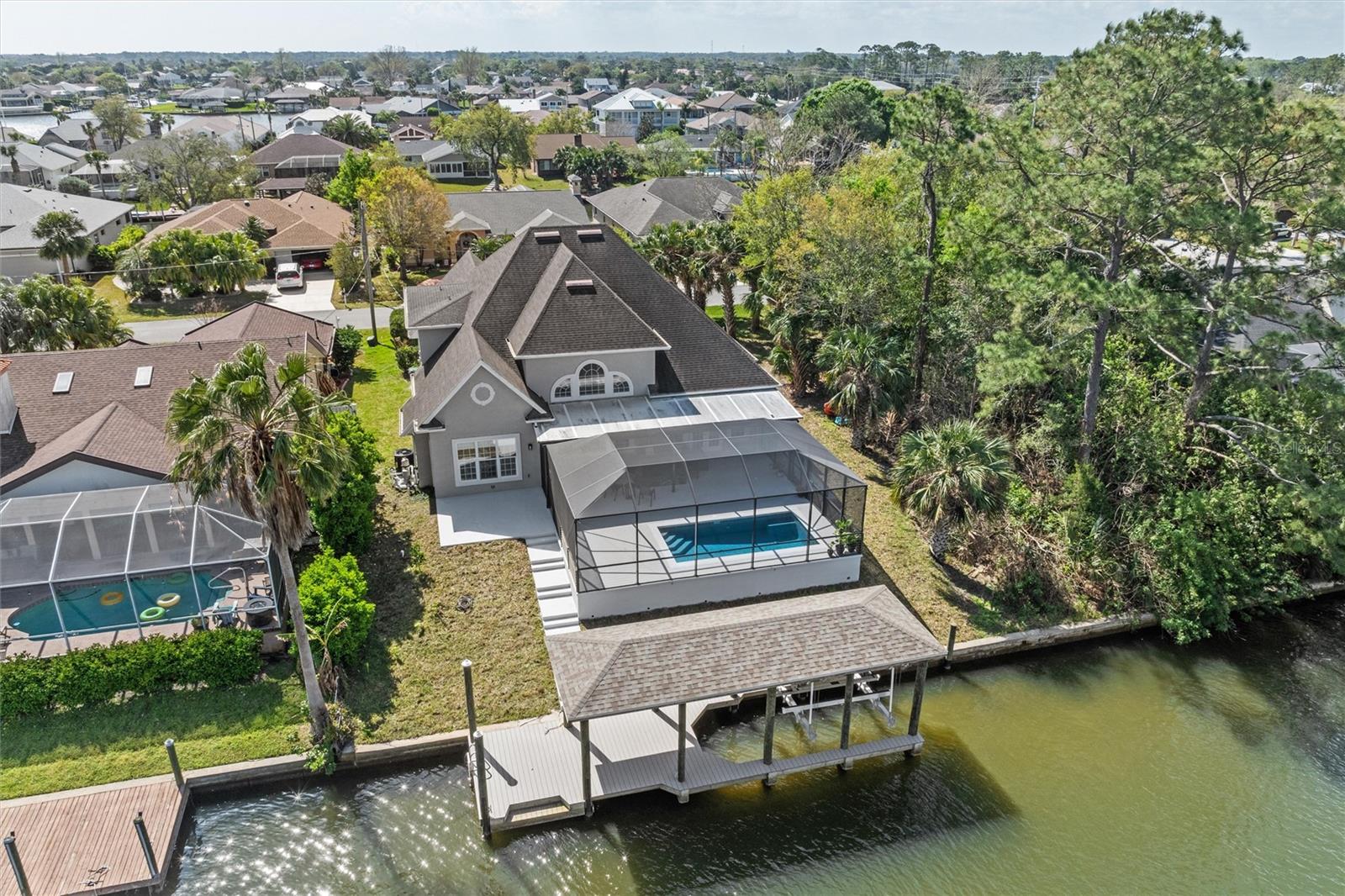 Luxo à beira-mar com piscina totalmente nova e ancoradouro – adequado para veleiros! Bem-vindo ao 13 Cedarfield Ct, uma obra-prima totalmente renovada à beira-mar de 3.080 pés quadrados em Palm Coast, onde a elegância moderna encontra a vida costeira sem esforço. Situada em uma rua sem saída tranquila, esta casa de dois andares possui 3 quartos, 3,5 banheiros, além de um escritório/escritório e um espaço flexível e possui uma grande entrada circular, preparando o cenário para o luxo que o aguarda no interior. Passe pela porta da frente para um espaço claro, arejado e contemporâneo, onde a luz natural entra, acentuando o porcelanato e o piso de madeira que fluem perfeitamente por toda a casa. Cada detalhe foi cuidadosamente atualizado, desde a pintura neutra e fresca até a elegante iluminação LED, criando uma casa elegante e convidativa. No coração desta casa está a cozinha dos sonhos de um chef absoluto, projetada tanto para beleza quanto para funcionalidade. Possui uma espaçosa ilha de cozinha, forno embutido, bancada de quartzo e armários de madeira verdadeira, além de cafeteria, diversas despensas e amplo armário para manter tudo organizado. Seja para receber convidados ou preparar uma refeição tranquila em família, esta cozinha é tão prática quanto deslumbrante. A suíte principal do primeiro andar é um retiro privado, com portas francesas que levam diretamente à piscina protegida para uma vida interna e externa definitiva. Um grande closet com prateleiras embutidas personalizadas oferece amplo armazenamento, enquanto o luxuoso banheiro privativo possui pias duplas, um box amplo com azulejos lindos e uma banheira de imersão separada - um verdadeiro refúgio de spa. No andar de cima, 2 quartos adicionais possuem banheiro privativo, proporcionando conforto e privacidade para familiares ou convidados. Uma sala flexível versátil anexada a um dos quartos oferece espaço adicional para uma sala de mídia, academia ou estúdio criativo, enquanto no andar de baixo um escritório/escritório dedicado garante a conveniência de trabalhar em casa. Vários armários grandes em toda a casa adicionam ainda mais funcionalidade. Do lado de fora, a nova piscina de concreto aquecida é um empecilho, com aquecimento elétrico, sistema automático de limpeza UV, iluminação LED e uma bomba de tecnologia inteligente de alta eficiência, tudo dentro de uma estrutura revestida de pedra com garantia vitalícia. Um pouco além, sua nova doca coberta, nunca usada, construída com deck Trex durável, está totalmente equipada com um elevador de controle remoto de 12.000 libras, iluminação elétrica e pré-canalização para água. Sem pontes fixas, esta propriedade é verdadeiramente adequada para veleiros, oferecendo fácil acesso à Hidrovia Intracoastal. Os destaques adicionais incluem dois sistemas HVAC completos, sendo 1 totalmente novo, um telhado de telha arquitetônica de 30 anos e um jardim paisagístico com árvores frutíferas, incluindo um limoeiro Meyer. Sem HOA, esta casa oferece luxo e liberdade, tornando-a o retiro perfeito à beira-mar. Não perca esta oportunidade excepcional – agende hoje mesmo seu tour privado