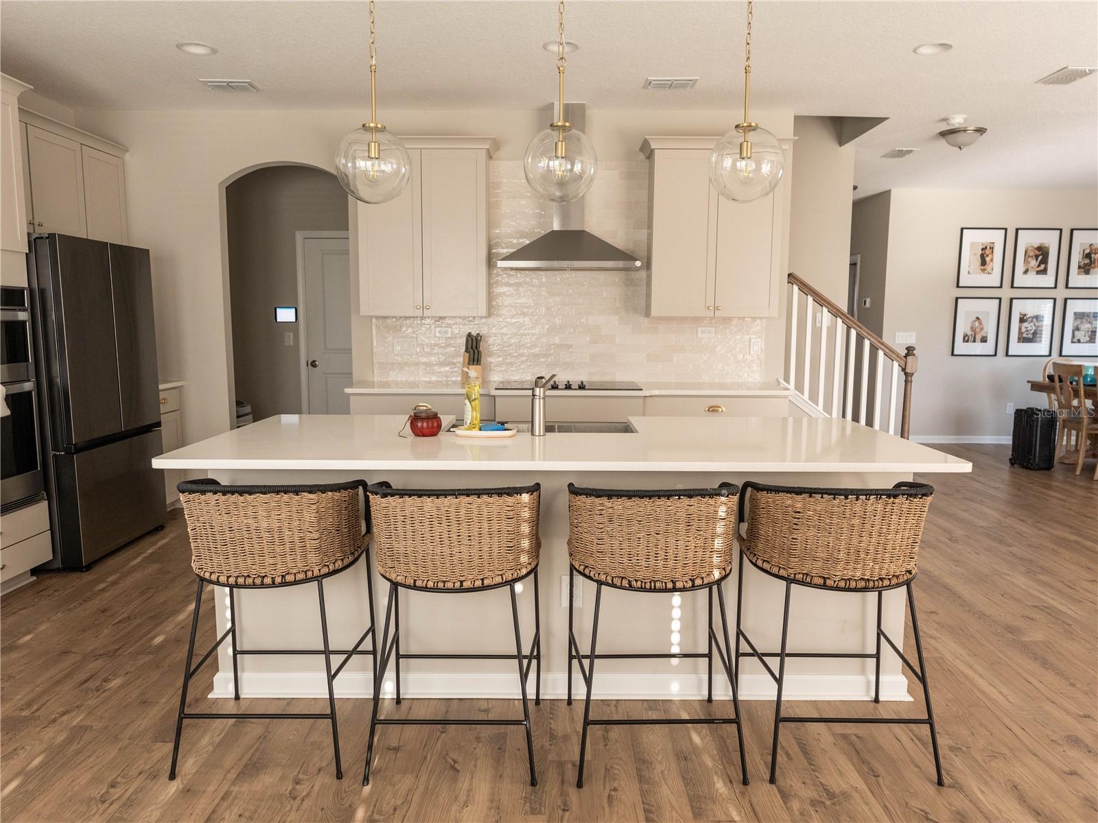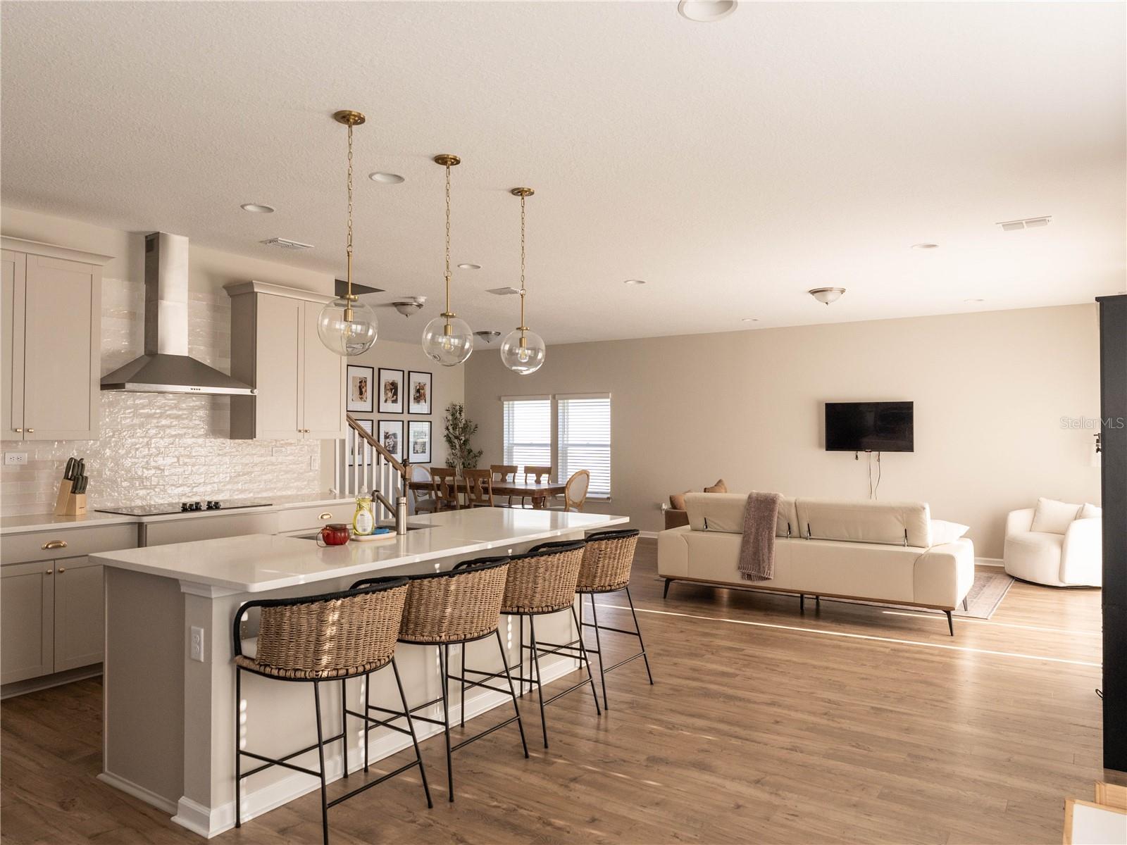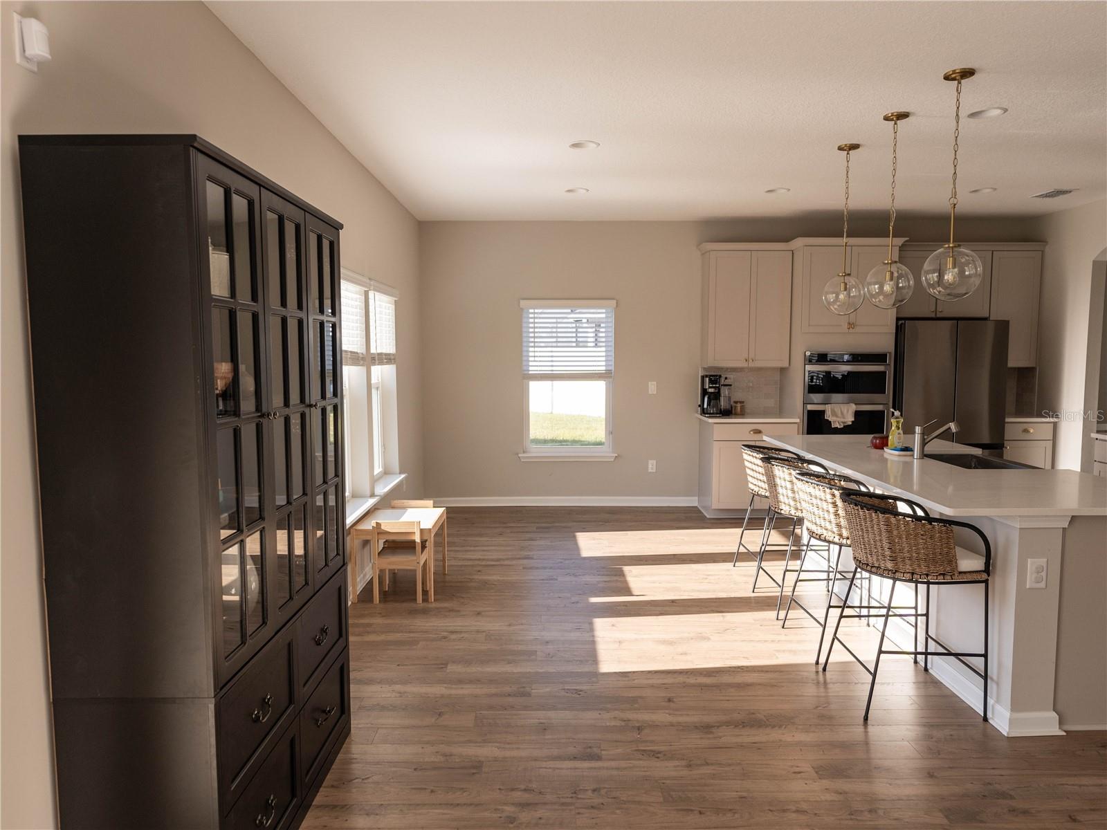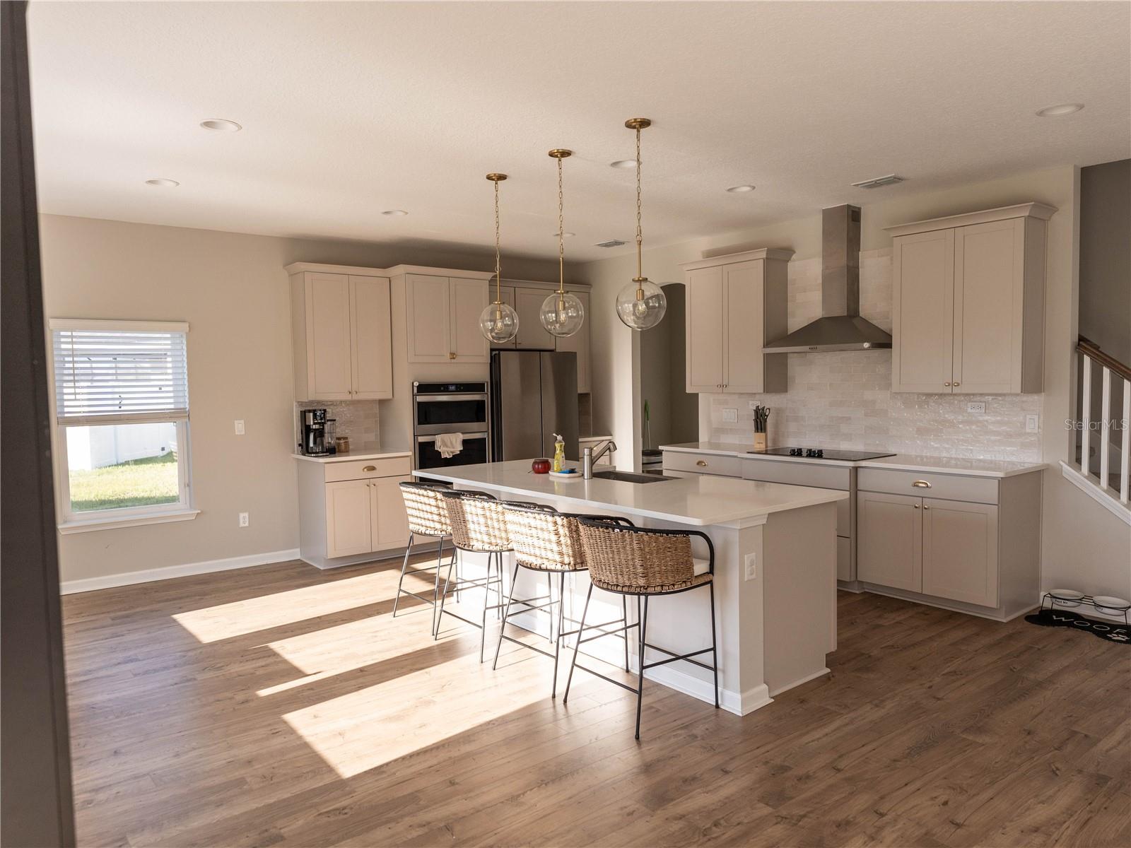 Esta bela casa meticulosamente mantida está localizada na comunidade fechada de Grand Landings, altamente procurada e está pronta para que seu novo proprietário o ame tanto quanto os proprietários atuais. Situado em um beco sem saída, a propriedade tem um ótimo tamanho com um quintal totalmente cercado e vistas de água. Existem 2 câmeras de segurança que transmitem com a propriedade e um sistema de segurança também. O novo proprietário só terá que instalar um painel de segurança. No interior, você tem uma cozinha de gourmet grande, perfeita para entretenimento com armários cinza de 42 ", combinação de microondas/forno, uma ilha grande, bancadas de quartzo, uma cafeteira, alcance de capuz de aço inoxidável e eletrodomésticos, e muito mais de um piso de LVP. Localizado no primeiro andar. Ofereça com um pool comunitário e muito mais comodidades.