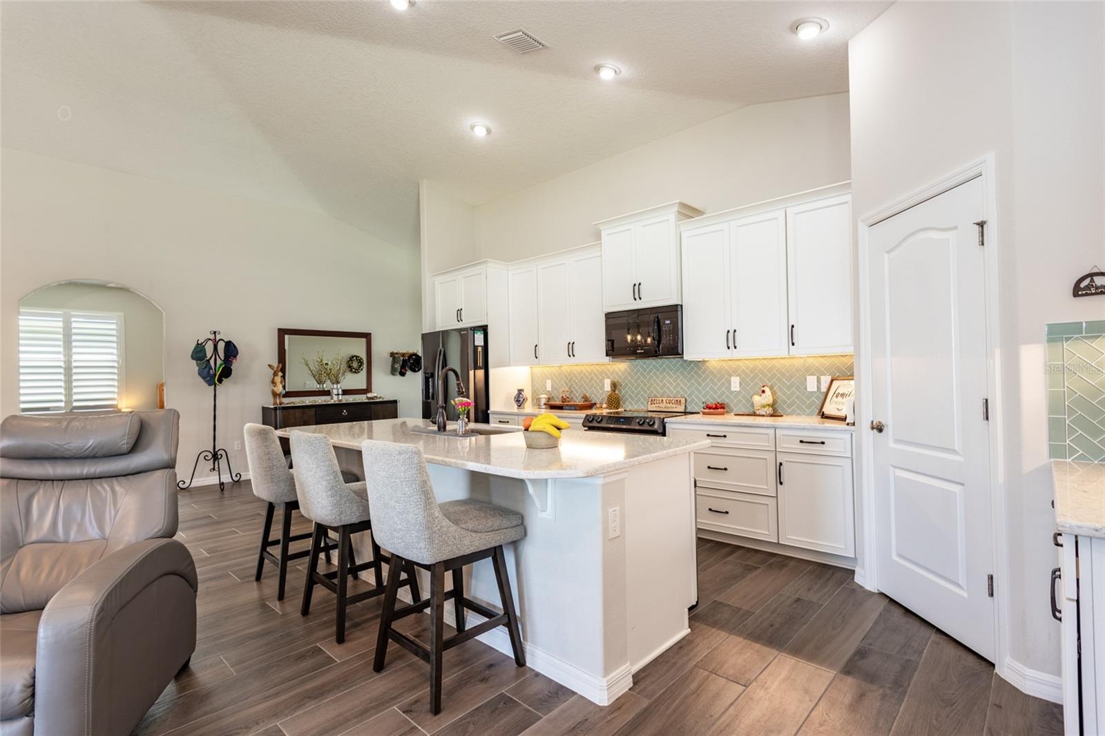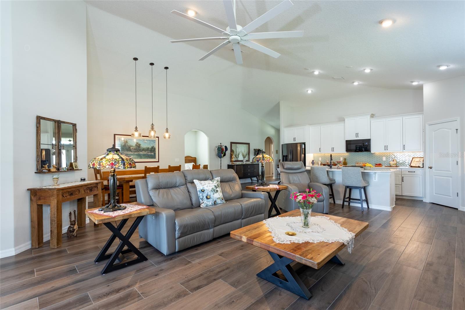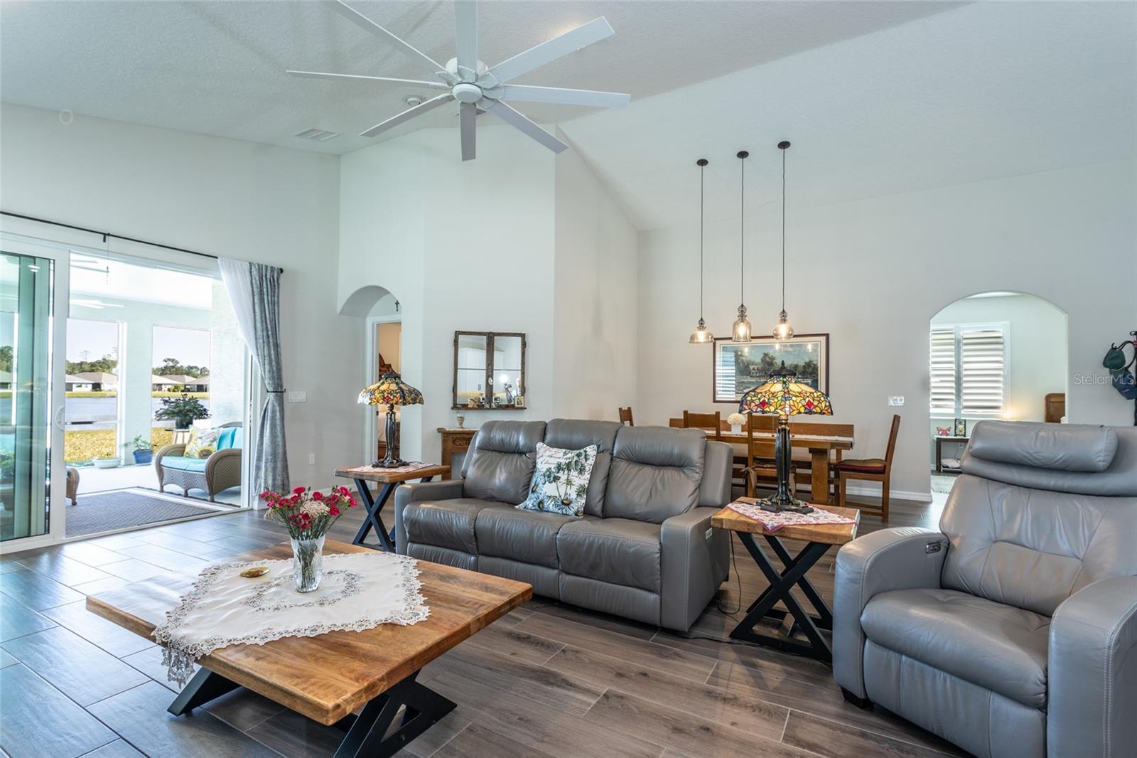 Esta bela casa à beira do lago de blocos de concreto está localizada no desejável 55 anos fechado pela comunidade de lagos de matanzas. Possui ladrilhos de aparência de madeira em toda a casa. Uma cozinha gourmet com bancadas de quartzo, backsplash atraente, armários atualizados e belos aparelhos. Há também uma espaçosa ilha de quartzo, perfeita para assentos adicionais. A sala da família tem vista para o lago - área de jantar aberta. A suíte primária possui um teto recuado e armários personalizados no closet primário. Um banheiro parecido com um spa com um chuveiro de azulejos com um guarda de respingo, janela de popa para deixar a luz natural entrar e as vaidades de altura dupla. Todos os quartos são espaçosos em tamanho. O segundo banheiro possui armários personalizados, uma banheira e ladrilhos. Todos os quartos têm ventiladores de teto e persianas. Alguns extras fantásticos de economia de energia incluem um sistema de água quente de recirculação e um sistema de irrigação em um medidor separado. O Lanai exibido é de quase 600 pés quadrados-com três ventiladores de teto e encanado para uma cozinha de verão-e é perfeito para a vida ao ar livre. Windows de impacto do furacão e portas deslizantes triplas lhe dão tranqüilidade. Recursos adicionais incluem, mas não estão limitados a calhas e prateleiras de garagem para armazenamento extra. Mudar-se pronto e embalado com atualizações, esta jóia à beira do lago não vai durar muito! Existem calçadas, uma piscina comunitária, um centro de reunião e pickleball.