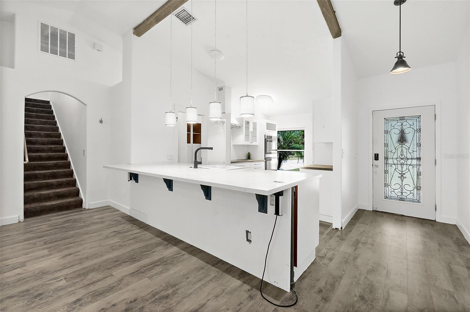 O vendedor considerará quaisquer ofertas razoáveis para vender esta bela casa! Esta linda casa está localizada na muito desejável subdivisão Cypress Knoll, a uma curta distância do Cypress Knoll Golf Course, um campo de golfe profissional certificado projetado por Gary Player. Esta casa possui amplos 5 quartos, 3 banheiros com uma garagem grande e uma tela de 256 pés quadrados na varanda. A sala de estar possui prateleiras de plantas personalizadas e portas francesas que se abrem para a varanda. Esta casa é um SeaGate Homes Misty III com algumas modificações e um segundo andar acima da garagem. O banheiro privativo no andar de cima tem 616 pés quadrados de espaço luxuoso no quarto e no banheiro, proporcionando o máximo de privacidade. O andar de baixo também tem banheiro privativo com closet, banheira de jardim e chuveiro de azulejos separado. Esta bela cozinha está equipada para o chef caseiro. Fogão de indução, fornos duplos, máquinas de lavar louça duplas e exaustor de aço inoxidável, a geladeira de aço inoxidável tem dois anos, todos os outros eletrodomésticos foram substituídos em 2021 quando a cozinha foi reformada, bancadas de superfície sólida, pia estilo casa de fazenda e torneiras atualizadas. Você consegue se ver na cozinha deste chef preparando o jantar ou recebendo convidados? Da garagem você entra na despensa que possui armários personalizados e lavanderia que inclui lavadora e secadora empilháveis. Novo telhado instalado em abril de 2025, janelas anti-furacão instaladas em 2020, painéis solares, sistema de termostato doméstico Nest Smart, sistema de segurança, câmera circular, sistema de irrigação (condição de funcionamento desconhecida) com poço, totalmente cercado com cerca de vinil, piso novo e pintura interna. Esta casa tem tantas atualizações que você só precisa vê-la para apreciá-la. Há um galpão 12x20 no quintal para armazenamento. A varanda com tela 24 x 16 tem muito espaço para desfrutar do ar livre. O que você está esperando? Agende uma exibição hoje e faça desta sua casa para sempre.