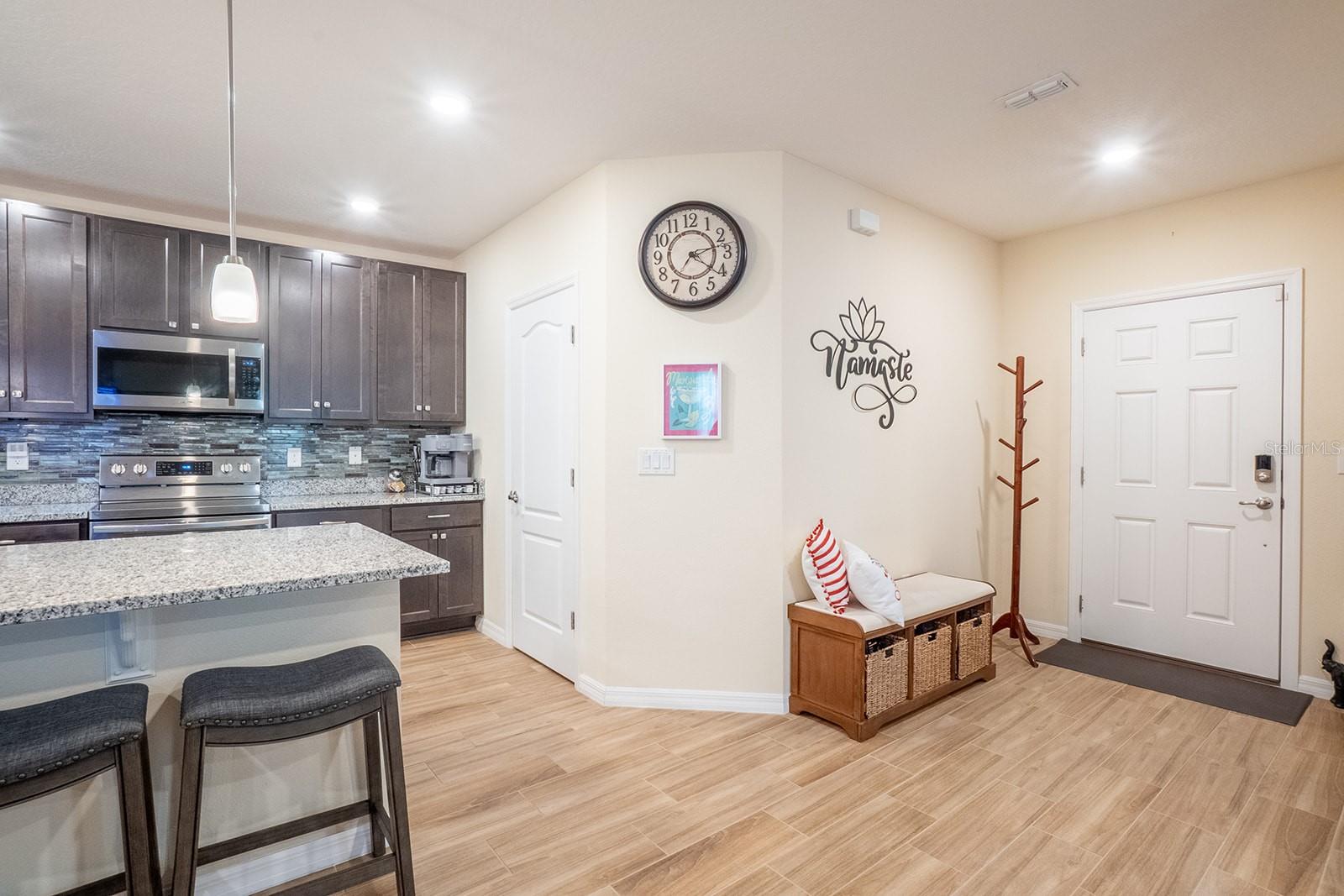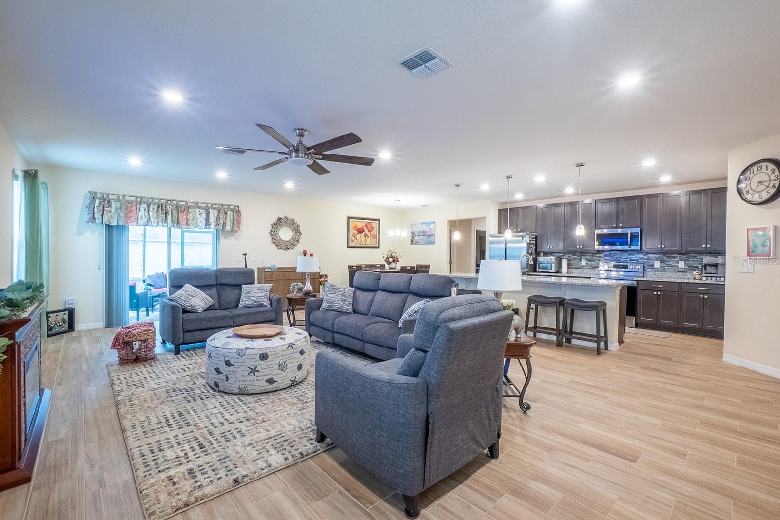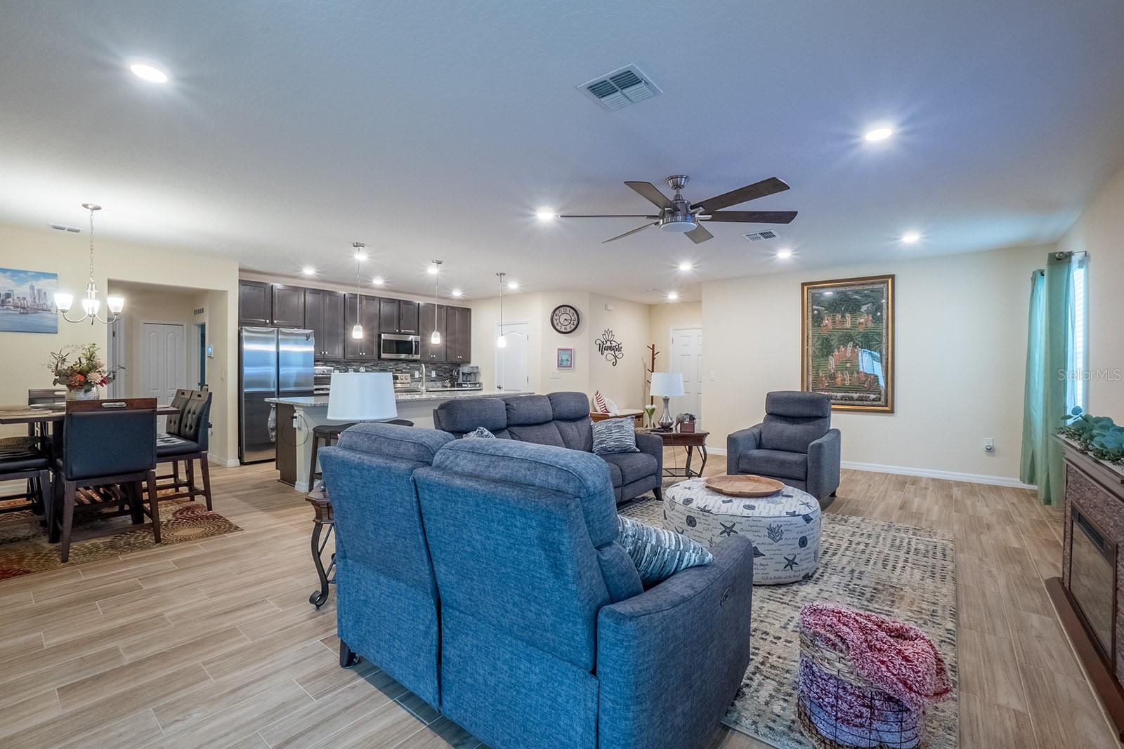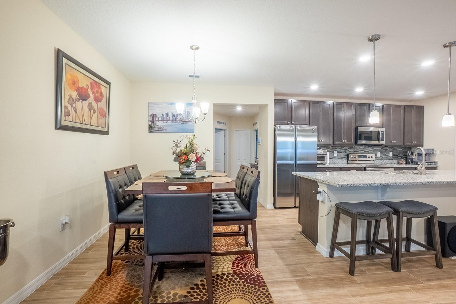 Construído em 2020, esta impressionante casa de 3 quartos/2 banheiros oferece a mistura perfeita de design moderno, atualizações luxuosas e funcionalidade cotidiana. Situado em um lote de canto de grandes dimensões com um lanai exibido (o piso é revestido de epóxi) e muito espaço para adicionar sua piscina dos sonhos. Entre em um layout de conceito aberto com piso de luxo, iluminação atualizada e uma cozinha gourmet completa com bancadas em granito, utensílios de aço inoxidável, armários personalizados e uma barra de café da manhã todo o tamanho da cozinha, conceito aberto completo. A suíte primária oferece um retiro sereno, vaidade de pia dupla, chuveiro espaçoso (azulejo). Recursos adicionais são uma saída de carregamento de EV na garagem de grandes dimensões, as calhas de chuva adicionadas, uma cobertura e cerca combinadas para privacidade, tomada de gerador para conectar o gerador, painel elétrico atualizado com um protetor de surto de casa inteira, incluindo sistema de irrigação com um poço. Esta casa é melhor que a nova.
