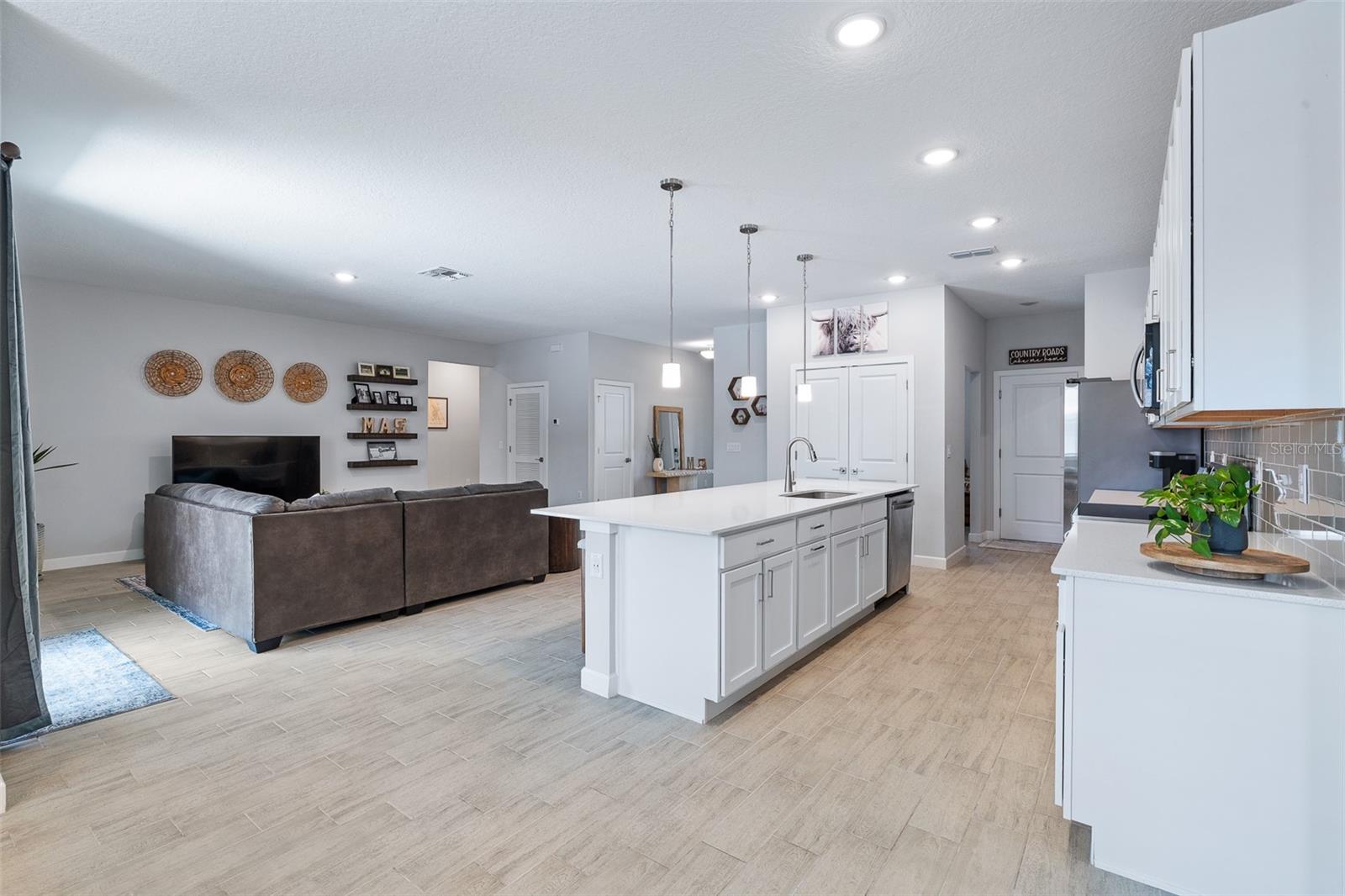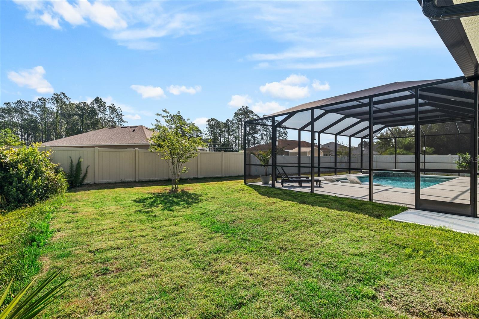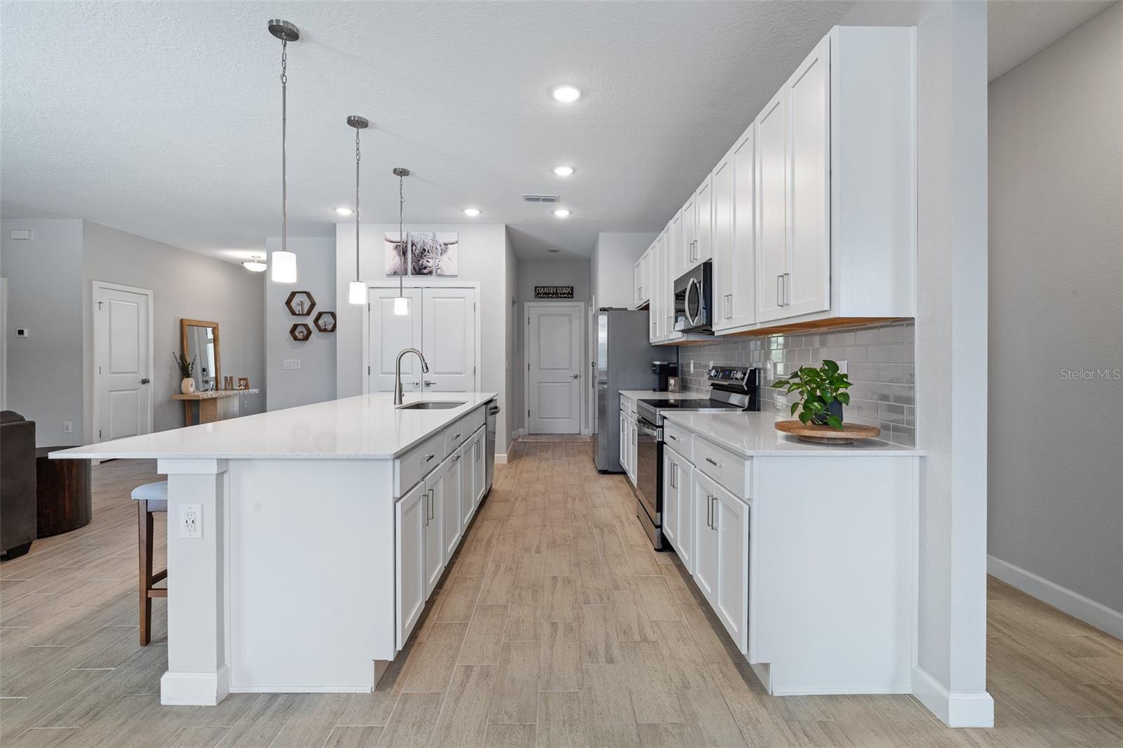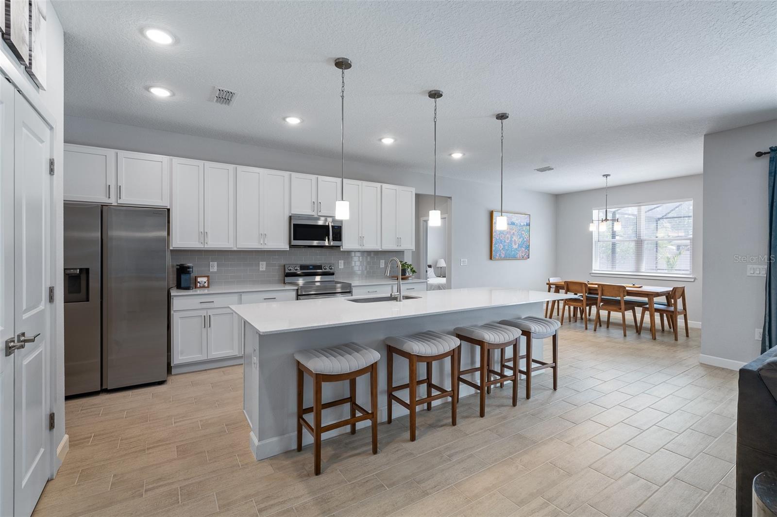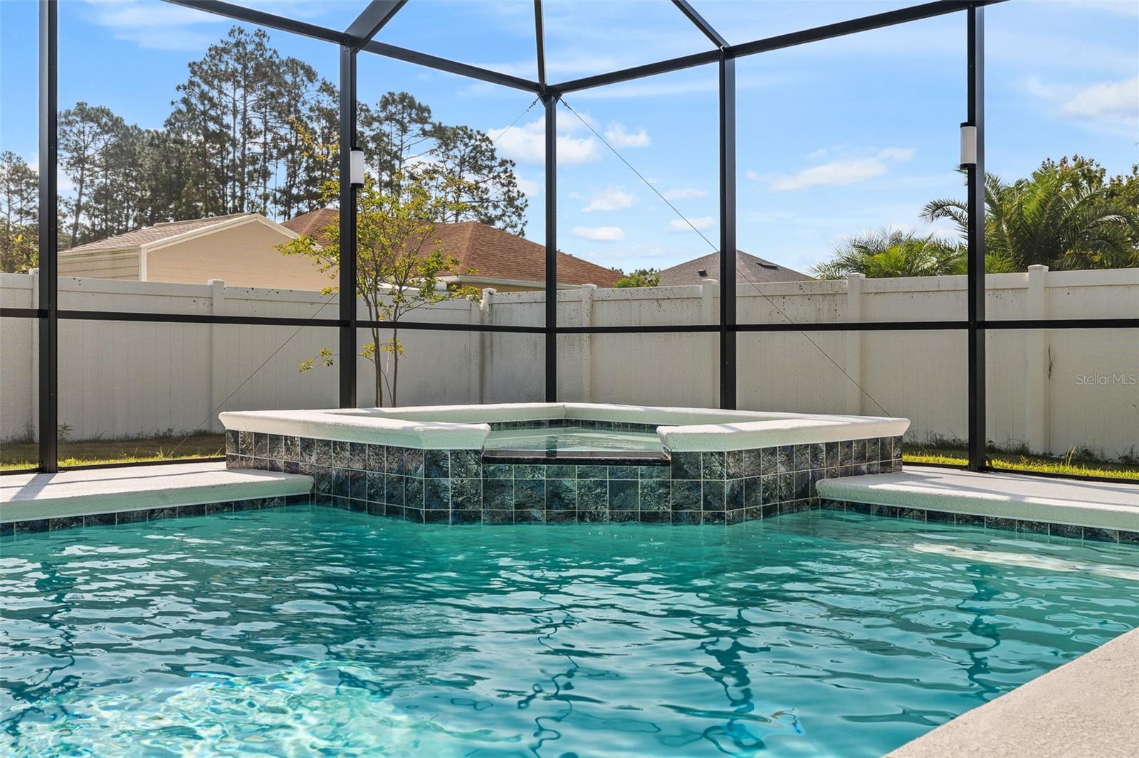 A sua casa dos sonhos aguarda e agora é oferecida a um preço fantástico !!! Você saberá que sua pesquisa é o momento em que você entra nessa casa moderna de tirar o fôlego construída em 2023, completa com uma nova piscina e spa novinhos! Meticulosamente mantido, esta casa de bloqueio de concreto Brite oferece uma espaçosa planta aberta, com mais de 2.300 pés quadrados, que inclui quatro quartos, três banheiros completos e um escritório versátil ou espaço flexível. O design do conceito aberto mostra uma espaçosa área de estar que inclui uma abertura deslizante de grandes dimensões para o Lanai coberto. Um amplo gabinete rastreado envolve a piscina e o spa de água salgada de primeira linha, completa com uma prateleira solar, tornando esta casa perfeita para entretenimento! Notable features include quartz countertops throughout, stainless steel appliances, 42-inch real wood soft-close cabinets, luxury tile plank flooring throughout the entire home, an irrigation system, an oversized garage, and 9'4" ceilings with a tray ceiling in the primary suite. The primary suite also boasts a spacious walk-in closet that is so large it could be mistaken for an additional bedroom. One of the secondary bedrooms even features its own Banho de segurança! Praia.